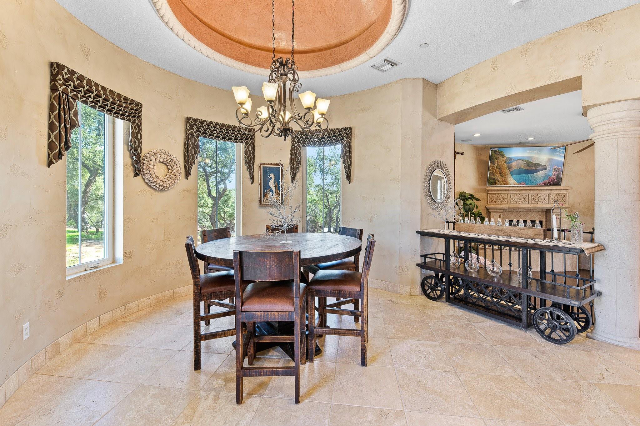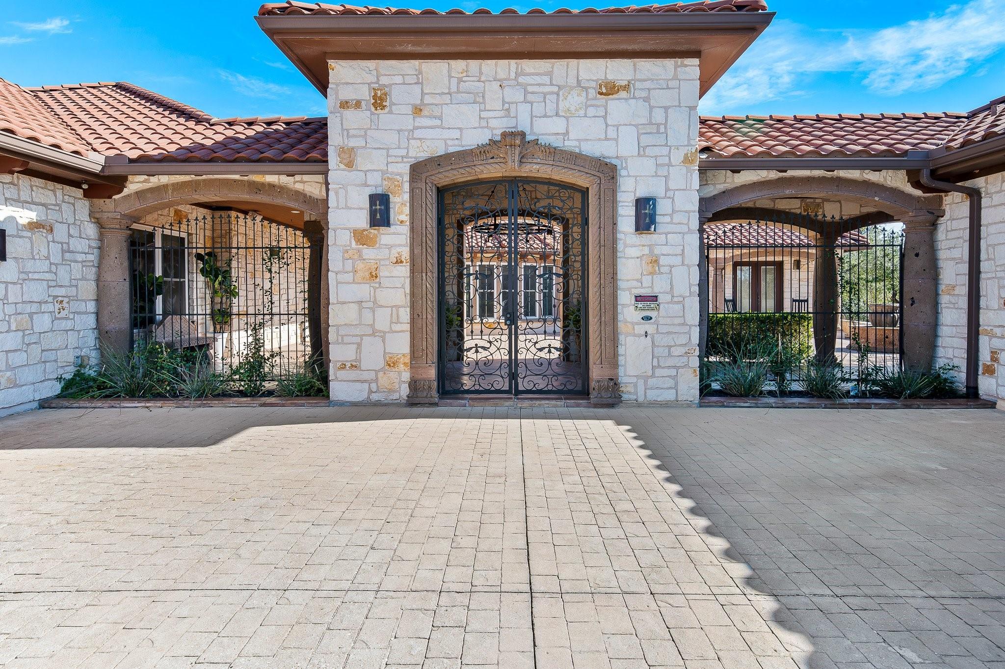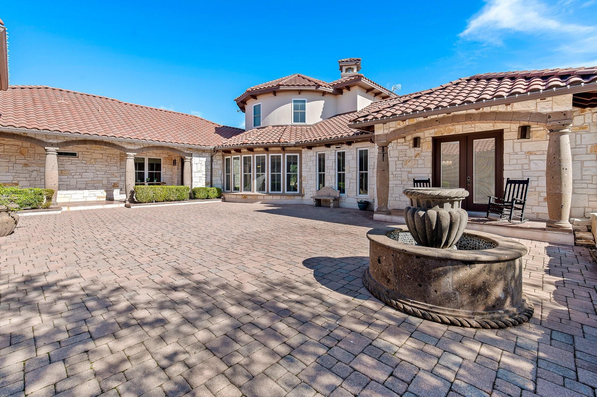 Stunning home on over 7 acres of gently rolling elevations with amazing hill-country views. Part of undeveloped land is zoned commercial for Local Office 2A. See Agent/Owner for details. From the courtyard to the massive kitchen and sunken family room, you'll want to stay. The master is beautifully nestled on it own wing of the house and is accompanied by a fabulous master bath complete with domed ceilings, walk in shower and closets as well as an oversized jetted/heated tub...you will LOVE IT! If you entertain, this is the place. Theatre room upstairs can double as a game room and the kids will love the pool and BB court. Families will love either of the 2 outdoor firepits and the covered patio has its own propane stone fireplace perfect for after you've finished cooking and want a fire. The other wing of the house has 4 bedrooms and 2 full baths, one being a Jack-n-Jill style. The laundry room is also on this side of the home and has lots of natural light and space for a full size refrigerator as well as has a full size sink. You'll have plenty of attic space for storage that is accessible in the main house 2 car garage. YES your Texas truck will fit in this garage! The courtyard is a wonderful place to entertain and has a fantastic water fountain that also has a propane fire feature that allows the fire to dance on the water. The breeze ways and most of the inside of the house has a home speaker system that is controlled in the living room (see agent for details)...it makes it easy to have music for parties! Make sure to check out the guest house with a mini bar/kitchen area and its own full bathroom and one car garage. Last make your way down to the octagon treehouse. It is truly unique.