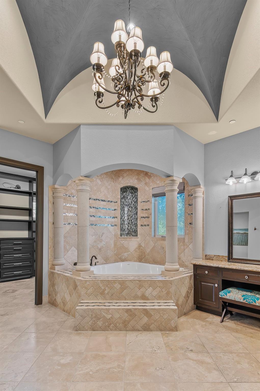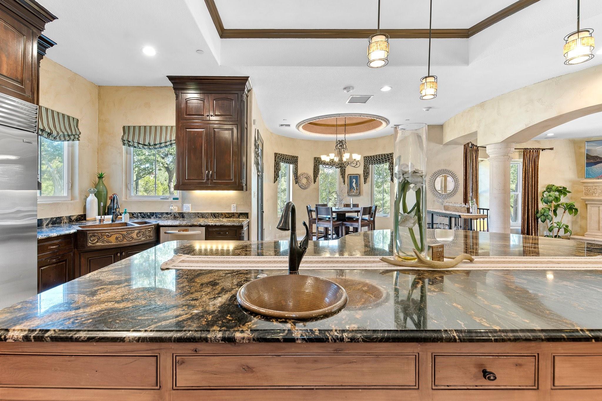 | Interior Features | Bar, Bookcases, Breakfast Bar, Built-in Features, Ceiling Fan(s), Beamed Ceilings, Cathedral Ceiling(s), Coffered Ceiling(s), High Ceilings, Tray Ceiling(s), Central Vacuum, Chandelier, Granite Counters, Crown Molding, Double Vanity, Dry Bar, Electric Dryer Hookup, Entrance Foyer, French Doors, High Speed Internet, In-Law Floorplan, Interior Steps, Kitchen Island, Multiple Dining Areas, Multiple Living Areas, Natural Woodwork, Open Floorplan, Pantry, Primary Bedroom on Main, Recessed Lighting, Sound System, Storage, Two Primary Closets, Walk-In Closet(s), Wired for Data, Wired for Sound | |