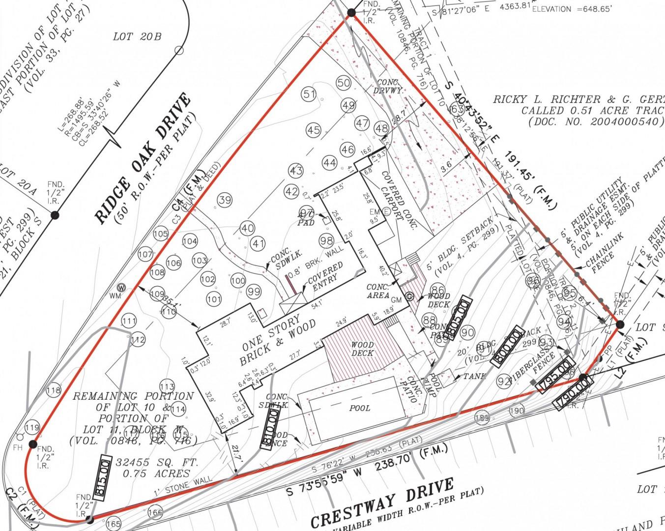 Welcome to 4901 Ridge Oak Dr, a single-family home located in the heart of Austin, TX. This home was built in 1951 with 3 bathrooms and approximately 3,248 sq.ft.Large lot size of 33,842 sq.ft. / 0.78 acres. Approx 250' of street frontage on Ridge Oak. Builders delight - large enough to possibly subdivide.Downtown views.Pool.ALL DRAWINGS ARE CONCEPTUAL - NOT ACTUAL. Located in the Highland Park Neighborhood, this home is close to schools, parks, shopping, and dining options, offering the perfect combination of convenience and tranquility.