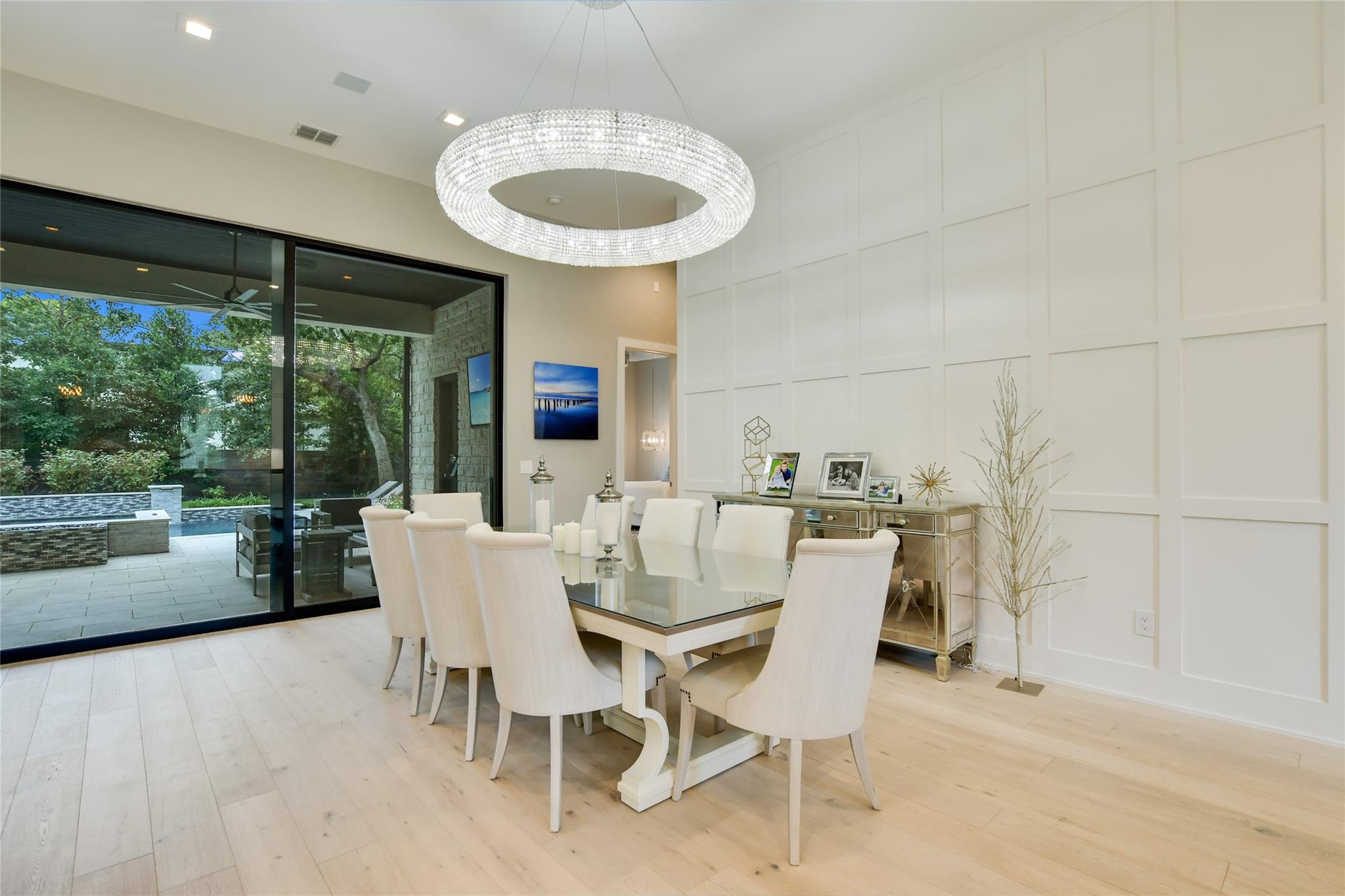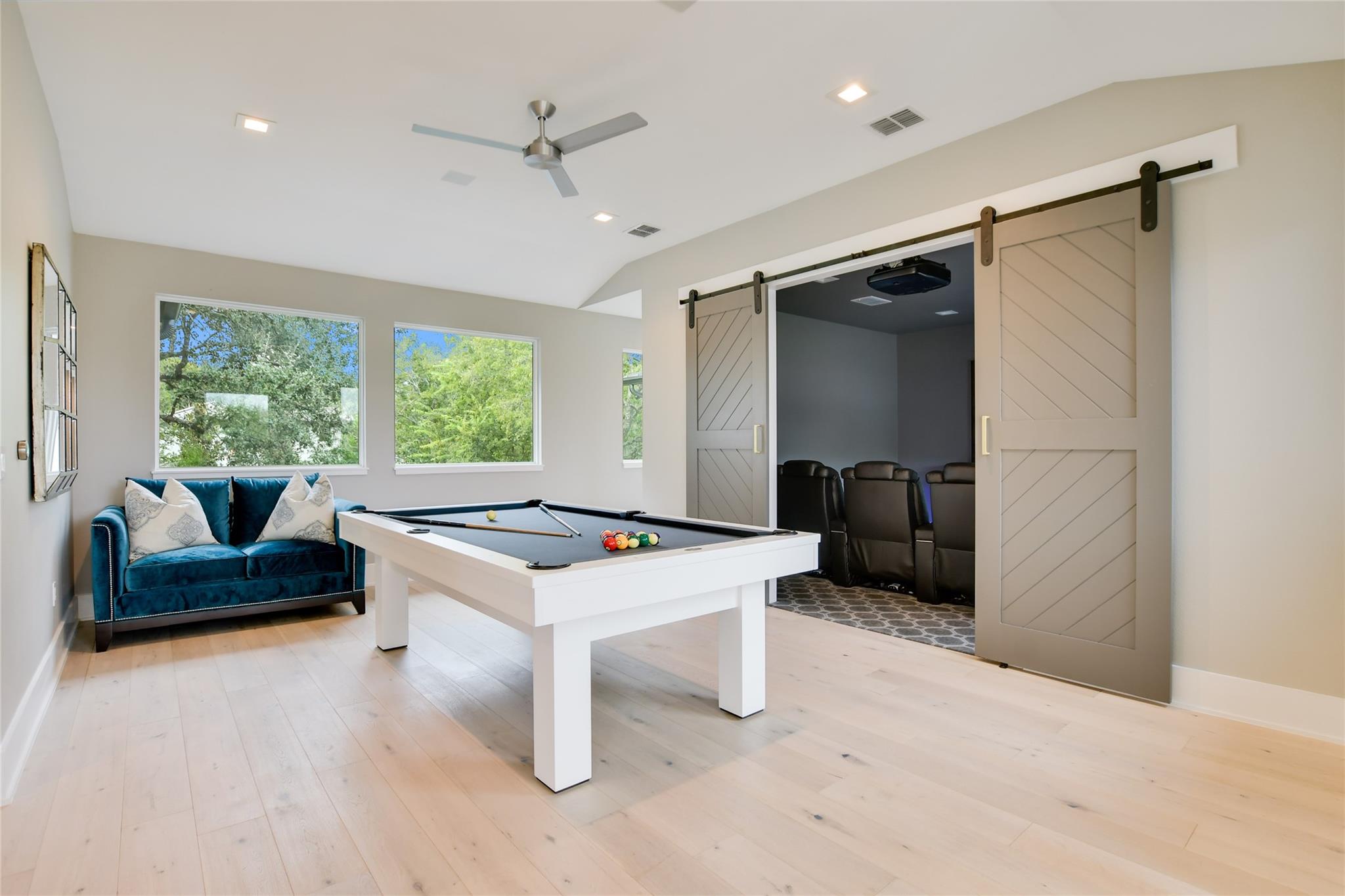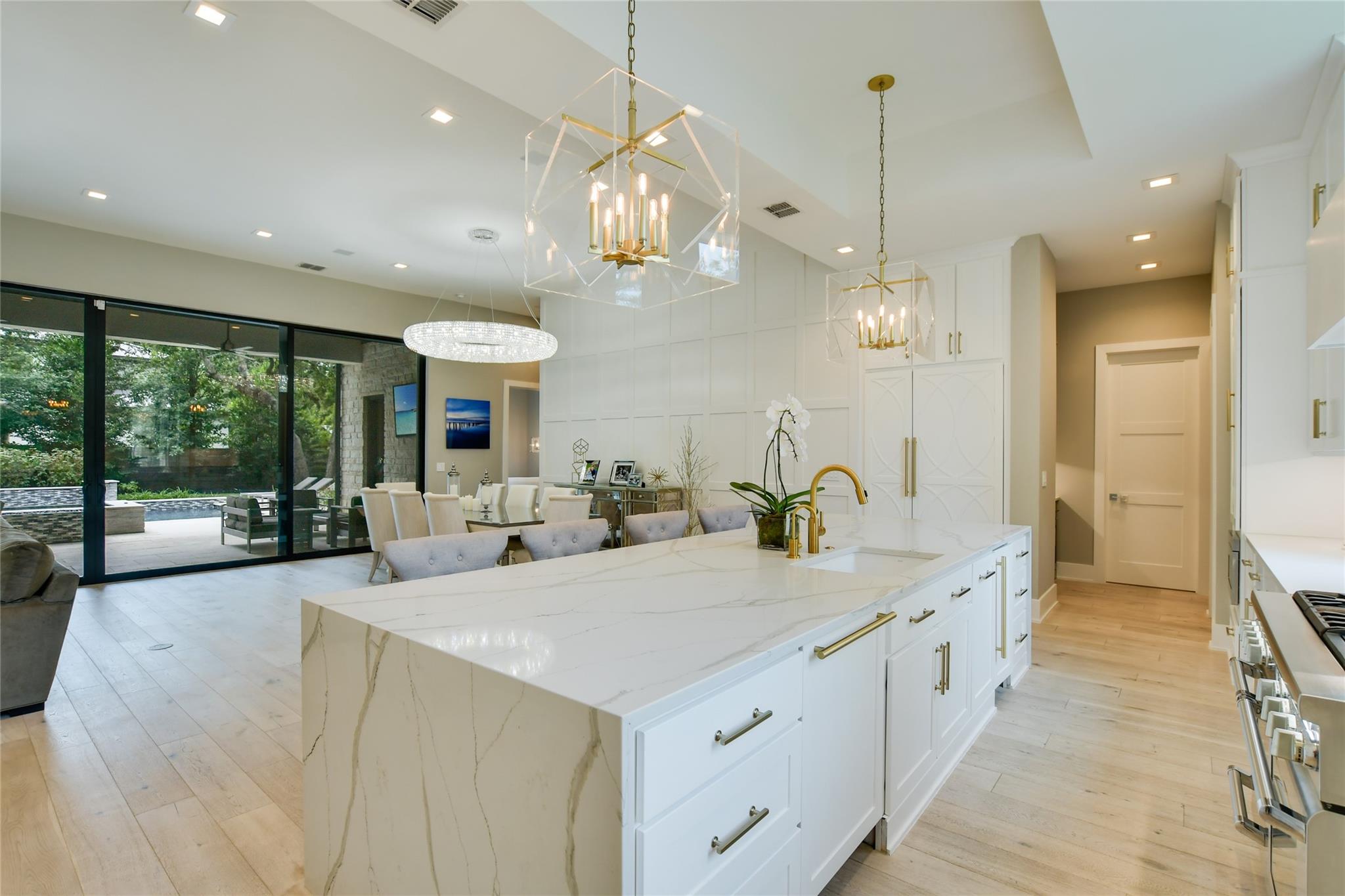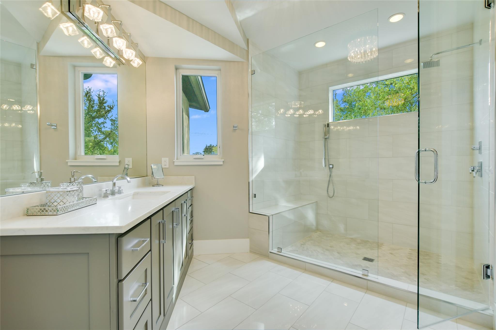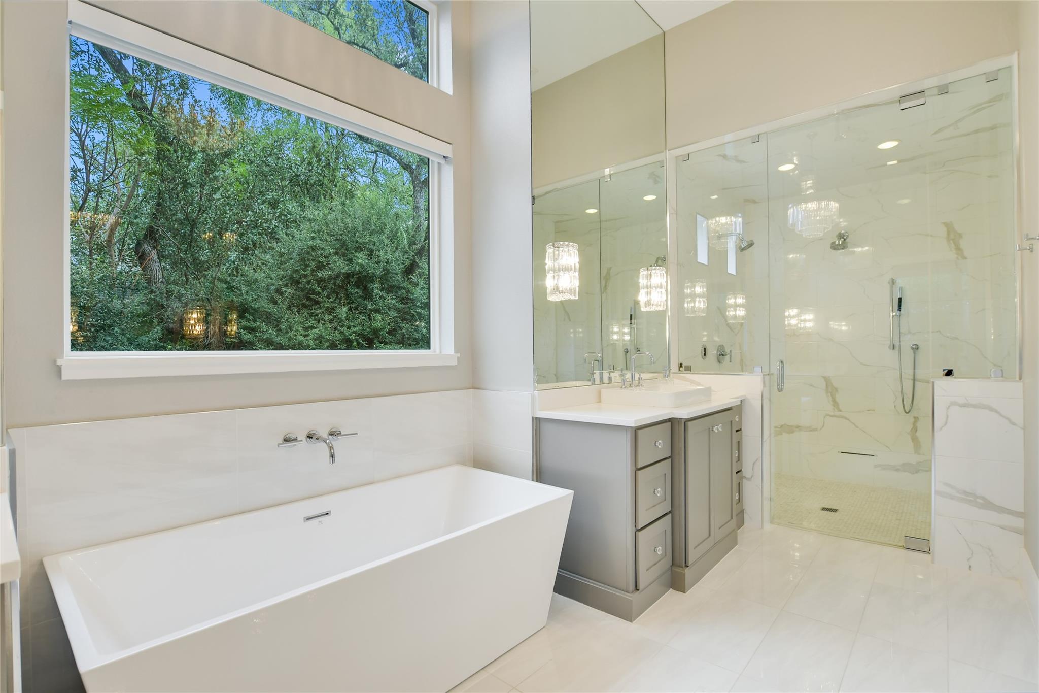 Elegant transitional on a secluded but supremely convenient Westlake street filled with mature trees, large lots, and beautiful homes. Faced with limestone and stucco, the façade is accented with steel doors and windows and topped with a standing-seam metal roof for a modern take on the Hill Country aesthetic. Walking distance from Bee Caves Road, and downtown is just four miles away, with plenty of shopping, dining, and entertainment in between. The back of the home opens to the view of a resort-worthy pool, spa, and manicured landscaping. Grill up dinner in the gourmet, fully equipped summer kitchen and end the evening gathered around the fire pit. Inside, the home features designer-selected finishes like European white oak flooring, dramatic crystal lighting, marble-clad bathrooms, a stacked-stone modern fireplace, plus a chef’s kitchen outfitted with an entire suite of Thermador appliances. Enjoy a sumptuous primary suite and a mirrored gym on the main floor, an upstairs game room, and a state-of-the-art home theatre complemented by control four home automation technology plus many extras.
