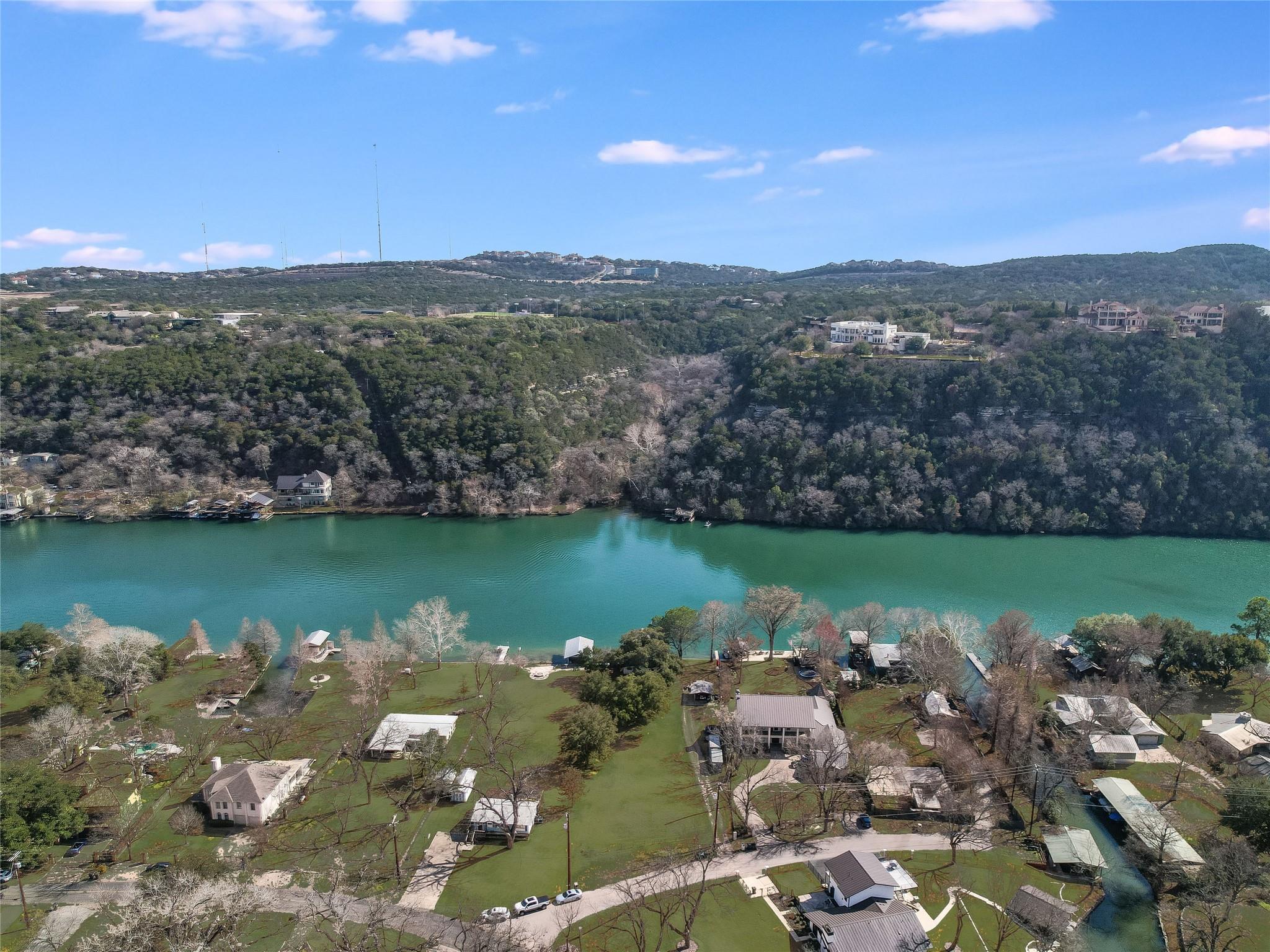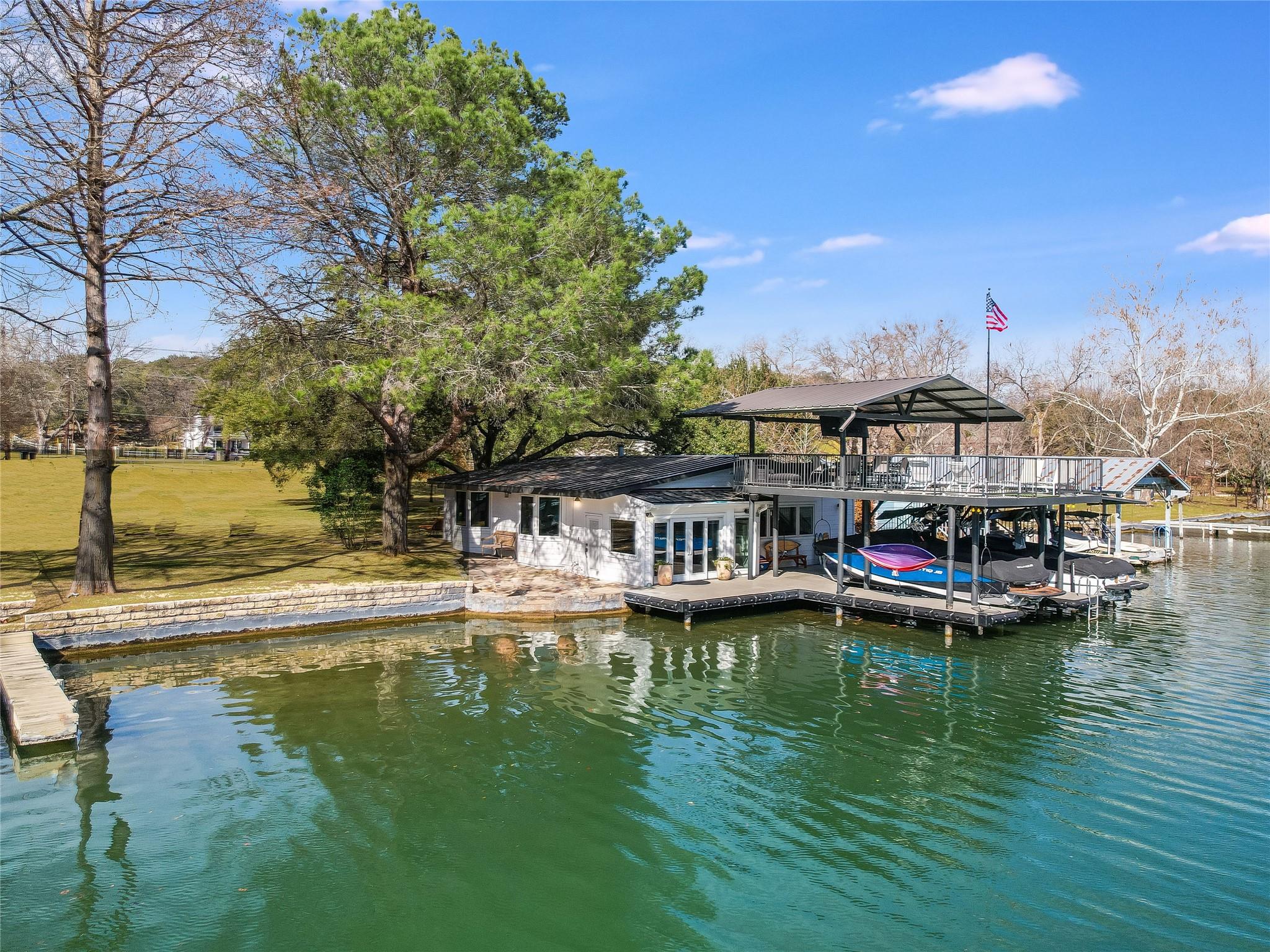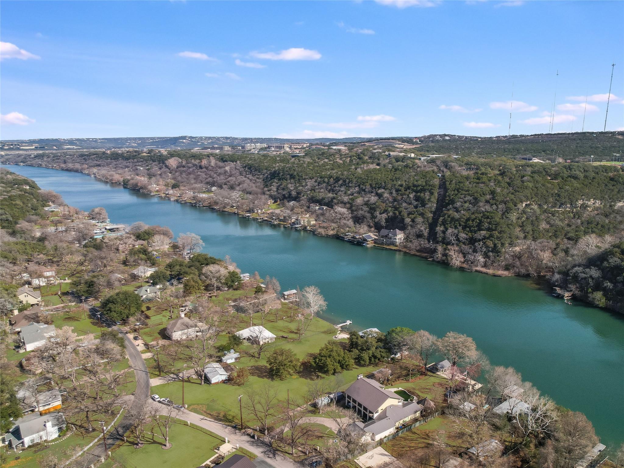 A huge build site for a new home and pool will sit among towering trees that are ideally situated on the lot for an easy build with direct views of the water. 100 feet of flat-to-the-water Lake Austin frontage across from a natural area makes this location prime. An over-the-top steel constructed 2-slip boat dock with a party deck and a cottage that sits right on the bulk-head make this property irreplaceable! You can never reproduce these amenities again! Situated in one of the most lush and green areas on the Lake. Don't miss the opportunity to build your dream Lake Austin estate or enjoy a weekend cottage on the water.