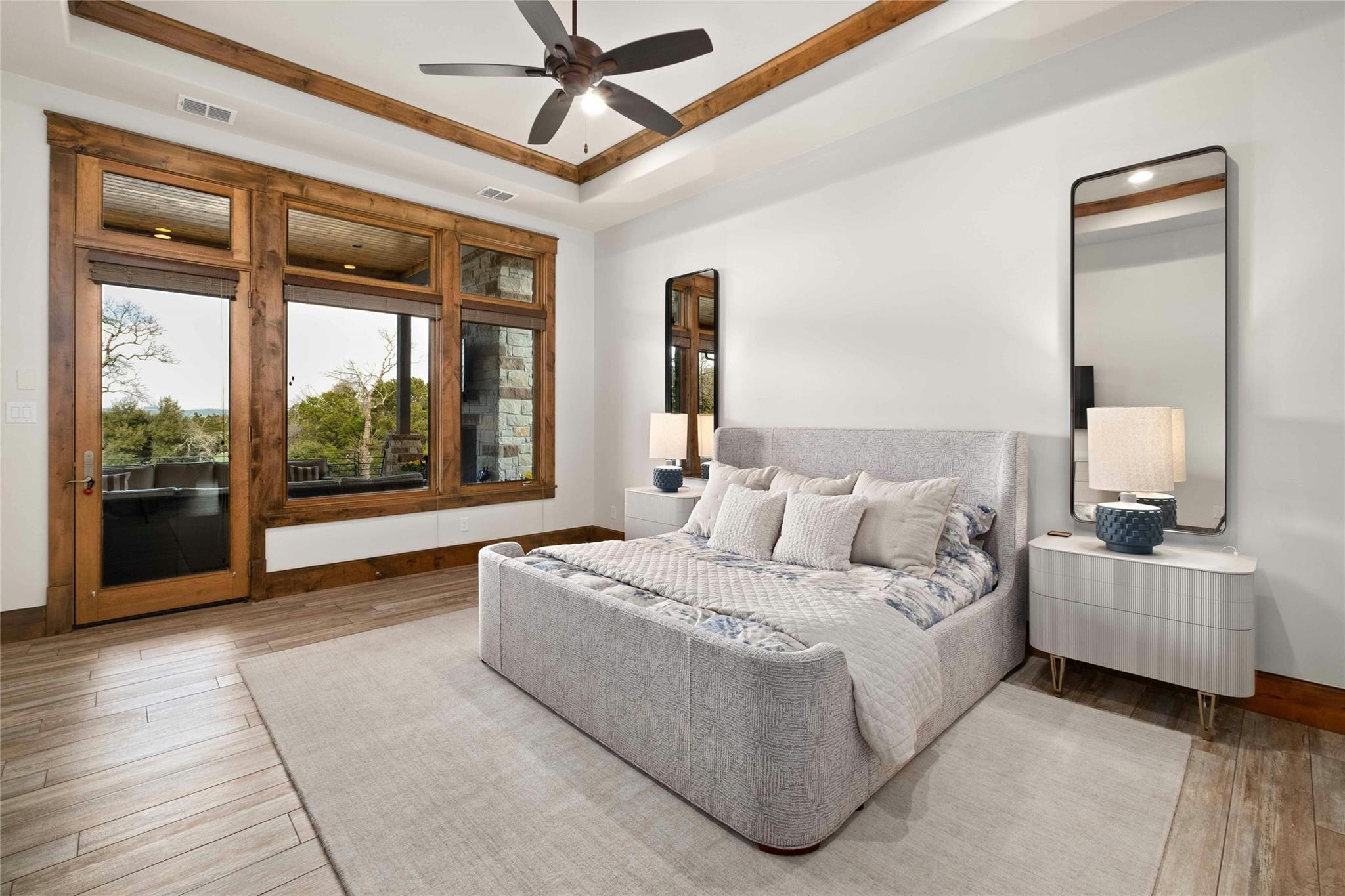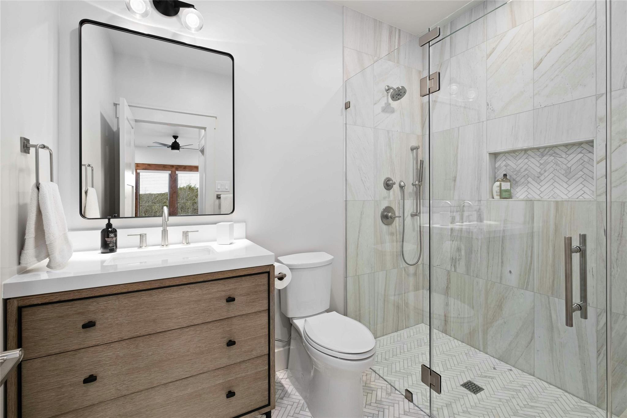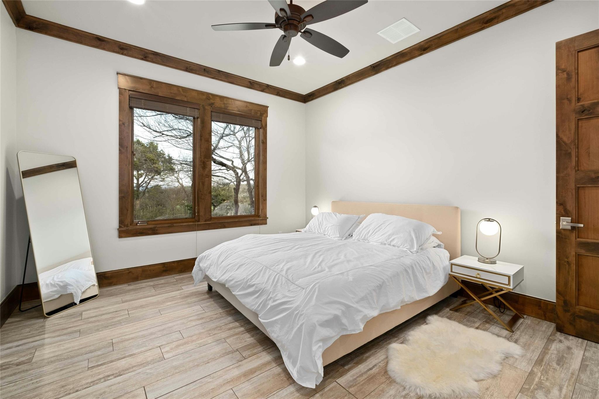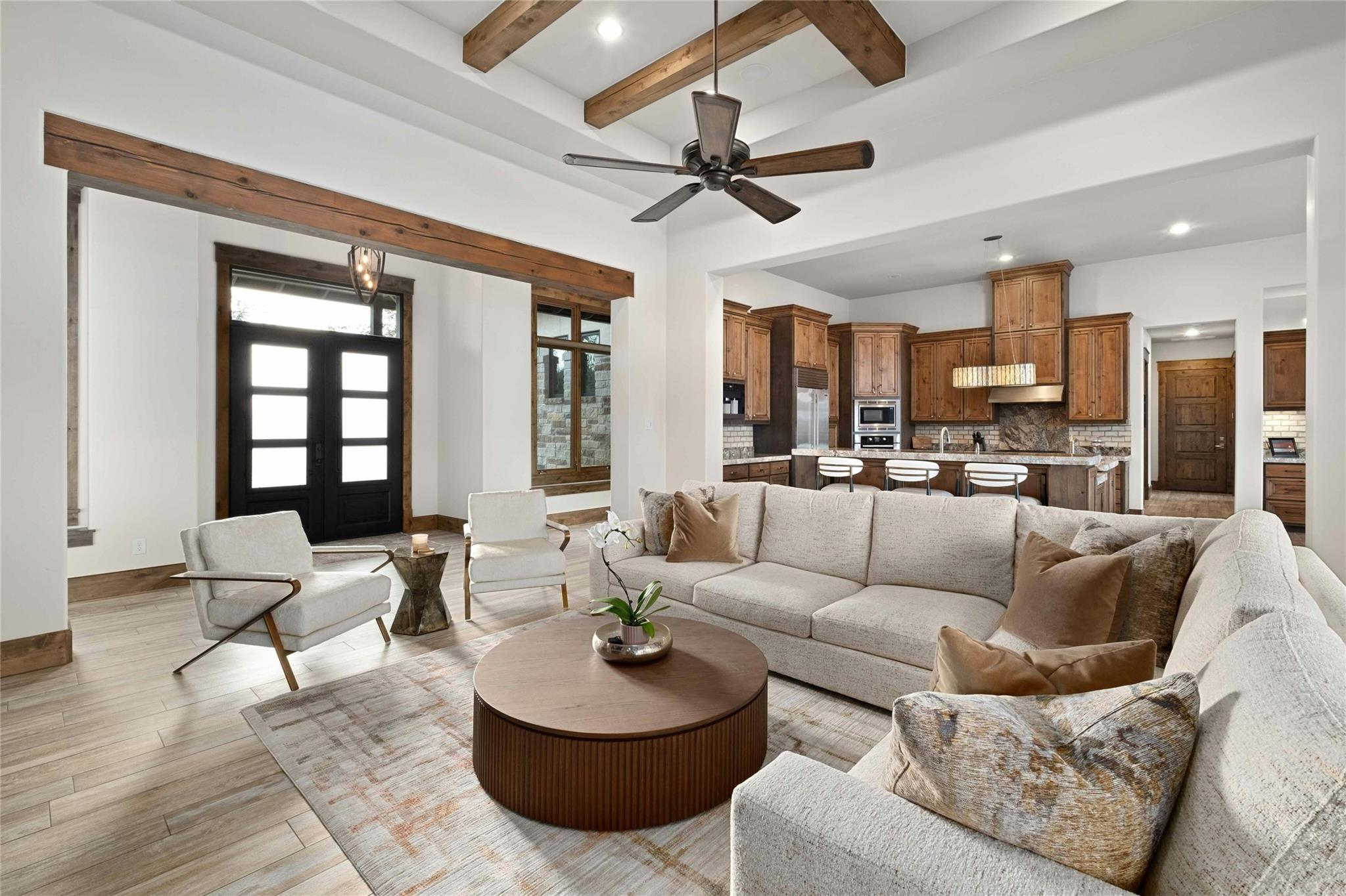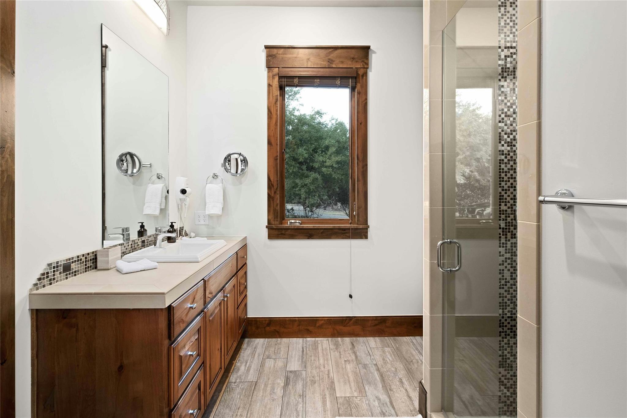 Lightly lived in quality custom constructed one story home in the gated community of Amarra. Designed by Kai Geschke and built by Robert Stephens Homes it has a wonderful layout and attention to detail throughout. The current owners finished out upstairs with a lovely ensuite bedroom perfect for guests and added a 20x40 heated pool, brand new outdoor kitchen with Tec grill and refrigerator and a gorgeous fire pit at the bottom of the garden. The large covered patio leading to the fenced backyard is a peaceful oasis for outdoor living and entertaining. The home sits on almost an acre and backs to the 9th green of The Canyons golf course. The Canyons grill restaurant, driving range and pro shop are a short walk or golf cart ride away. The wow factor continues inside with natural wood and stone throughout, a gourmet kitchen boasts granite counters, a Subzero refrigerator, 6 burner Wolf range, two Bosch dishwashers and a plumbed Miele coffee machine. The high quality construction includes a certified class 4 roof, insulation throughout (including garage), Marvin casement wood clad windows, stain grade custom doors, trim, crown molding and cabinets, Toto toilets, WiFi irrigation and central vacuum. For wine lovers, there is a 500 bottle temperature controlled wine cellar! All four bedrooms have their own full bathrooms. The home conveys a property owner's social membership to Barton Creek Country Club. Privileges include swimming, dining, club events, use of spa and an amazing fitness center with exercise classes. This is one of the few neighborhoods that you can own and drive your registered golf cart on the course (monthly fee applies).