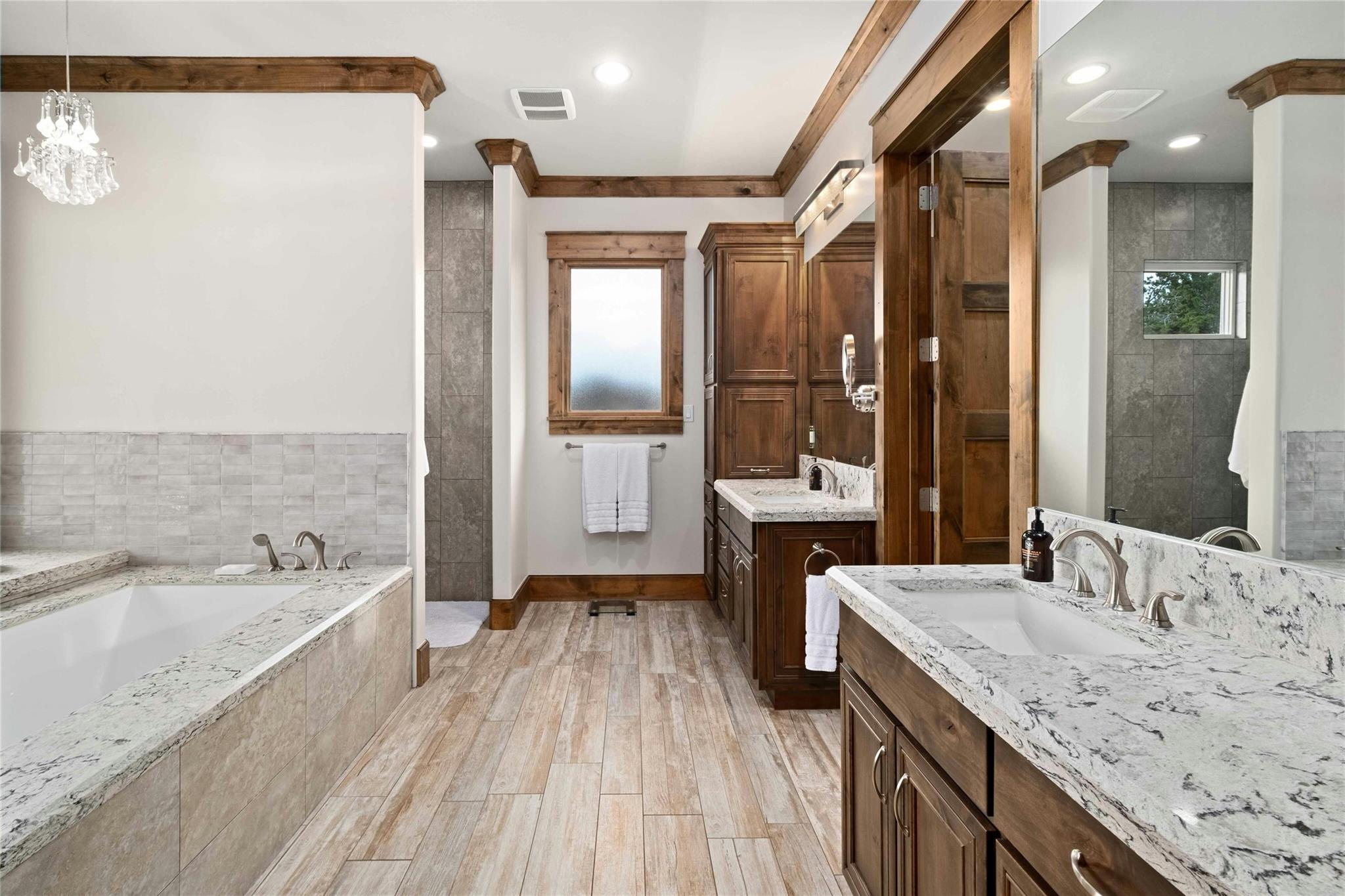 | Interior Features | Bar, Breakfast Bar, Built-in Features, Ceiling Fan(s), Central Vacuum, Granite Counters, Double Vanity, Gas Dryer Hookup, High Speed Internet, Kitchen Island, Pantry, Primary Bedroom on Main, Recessed Lighting, Soaking Tub, Storage, Walk-In Closet(s) | |