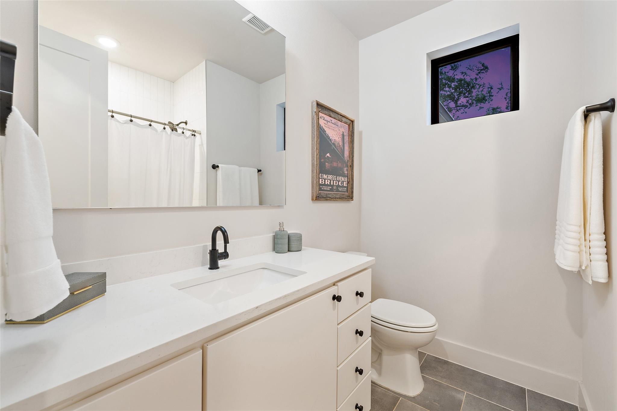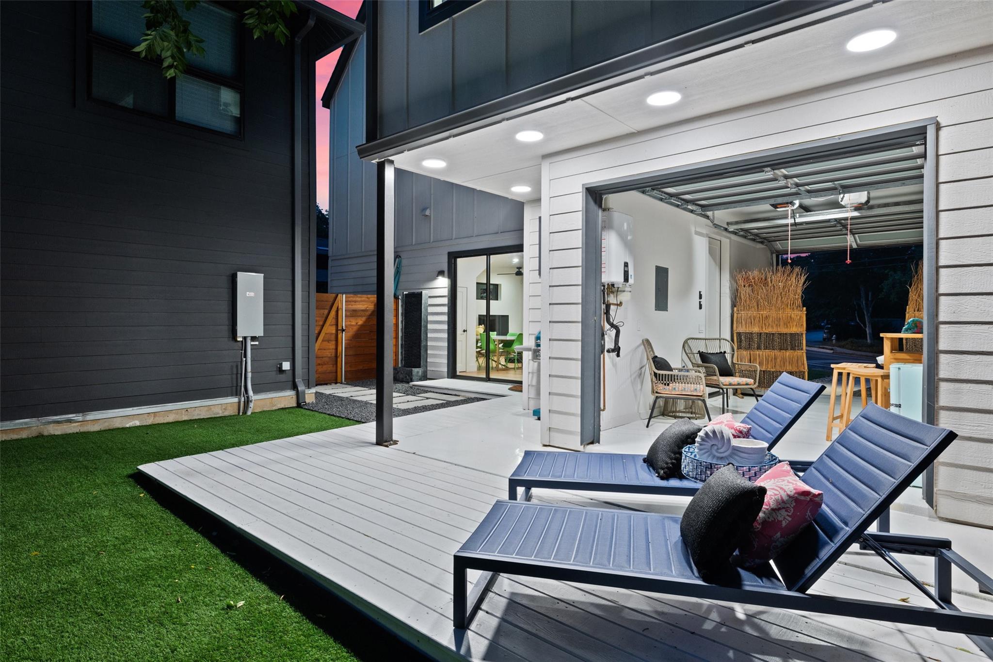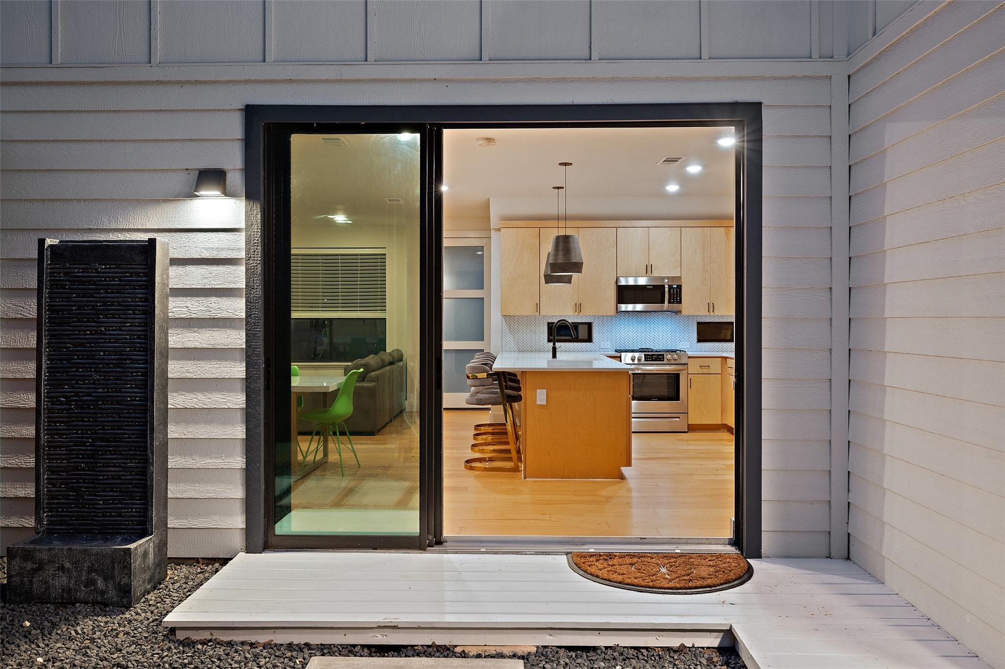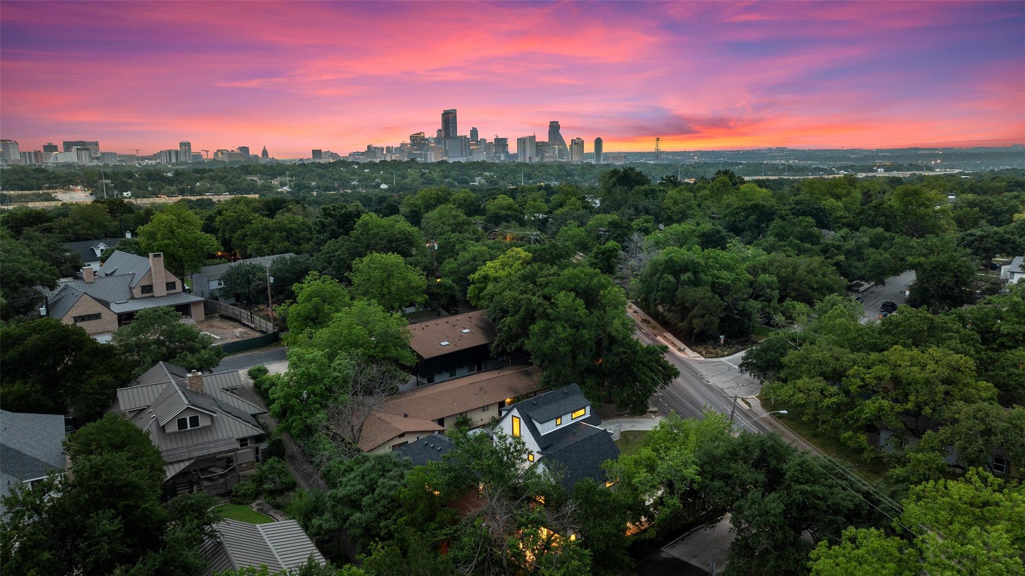 Two fully detached modern homes located in the heart of Austin. Exceptional build by Waterloo City Builders and designed by Local Life Designs. Unit 1: White exterior, 4 bedrooms, 3.5 baths, 1 living, 1 dining, 1 car garage with dual end doors for entertaining in this 2,097 sq.ft. home. Open 1st floor plan with living, dining, kitchen featuring a wall of sliding glass doors that open to the covered patio with AstroTurf fenced in back yard. The garage floor was treated with museum quality white epoxy that spills out to the backyard patio bringing this area into an entertaining space. This would make for a great cabana room or bar if a pool was added to the back yard. Lots of high end finishes, high ceilings, lots of natural light plus wide plank European white oak floors. On the 2nd floor is the primary suite with a huge walk in closet plus 2 more beds and a full bath plus the laundry room. On the 3rd floor is the 4th bedroom with ensuite bath – perfect for a study, hobby room or guest suite. Unit 2: Black exterior, 1,062+/-sq.ft., 2 bedrooms, 2.5 baths, 1 living/dining/kitchen, upper patio, fenced yard, tandem parking in driveway for 3 vehicles. Walk to dining, shopping, and entertainment. Close to Lake Austin, Mozart’s Coffee, Hula Hut, and the Lions Golf course.