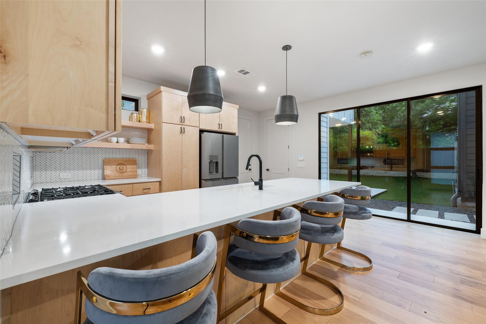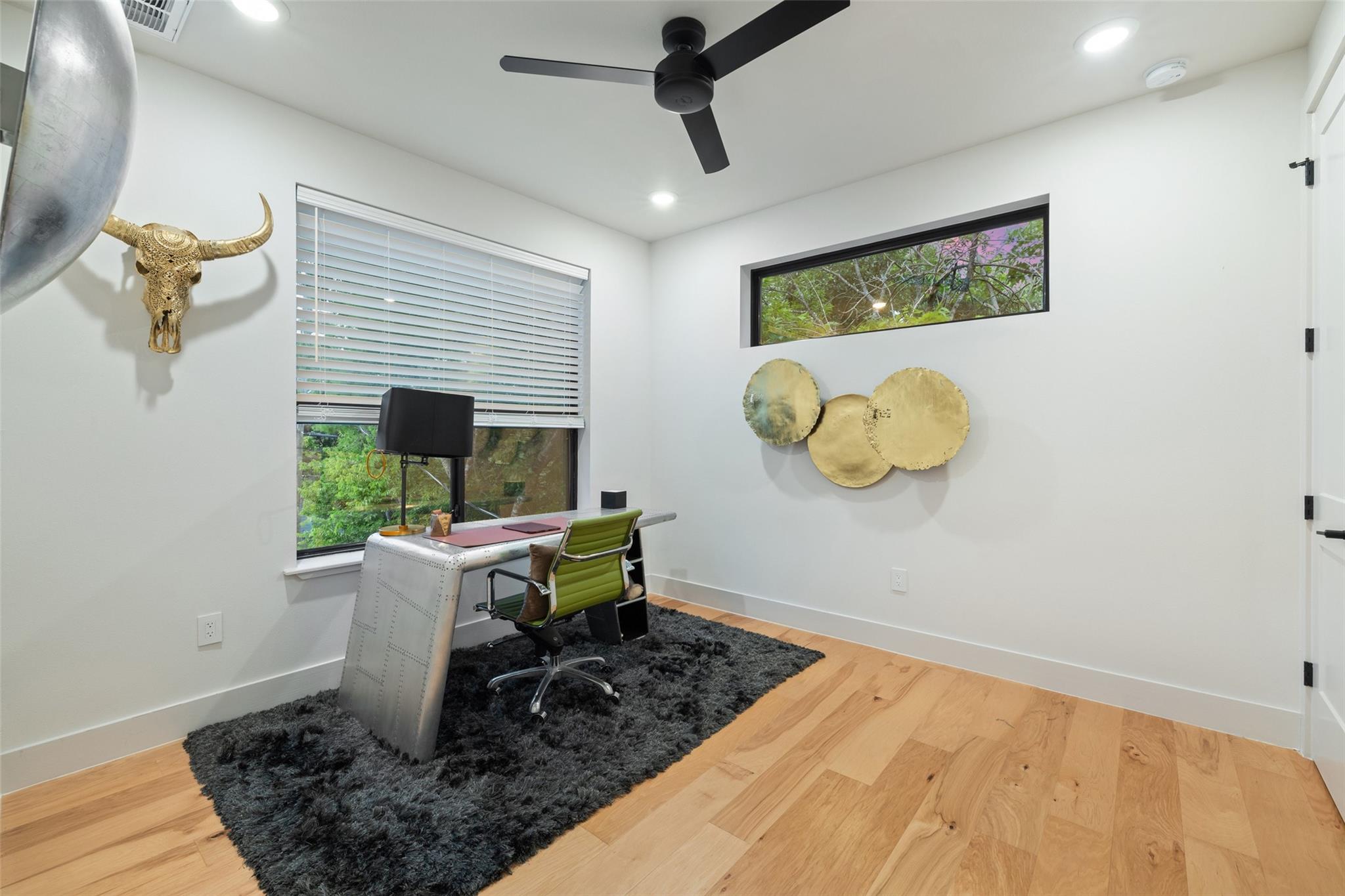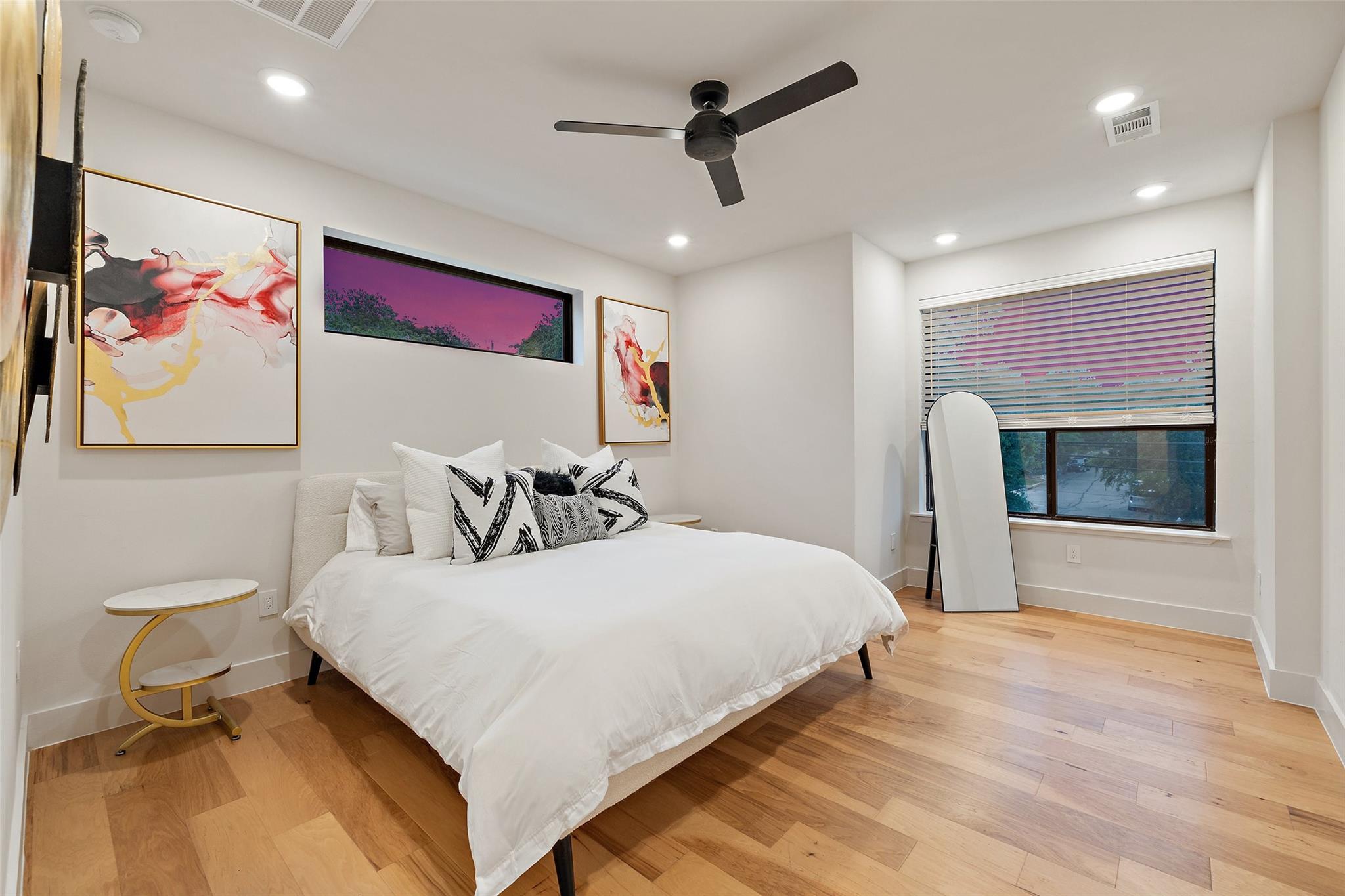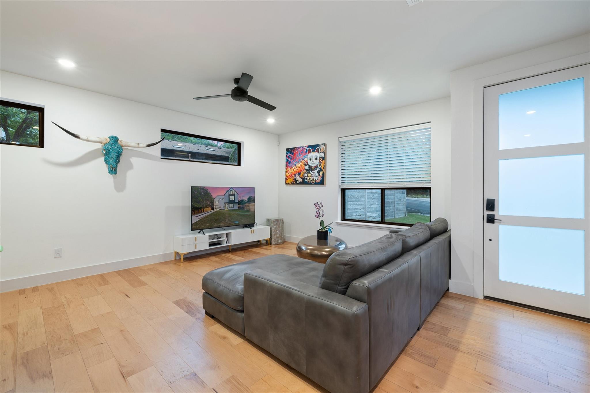 Two fully detached modern homes located in the heart of Austin. Exceptional build by Waterloo City Builders and designed by Local Life Designs. Unit 1: White exterior, 4 bedrooms, 3.5 baths, 1 living, 1 dining, 1 car garage with dual end doors for entertaining in this 2,097 sq.ft. home. Open 1st floor plan with living, dining, kitchen featuring a wall of sliding glass doors that open to the covered patio with AstroTurf fenced in back yard. The garage floor was treated with museum quality white epoxy that spills out to the backyard patio bringing this area into an entertaining space. This would make for a great cabana room or bar if a pool was added to the back yard. Lots of high end finishes, high ceilings, lots of natural light plus wide plank European white oak floors. On the 2nd floor is the primary suite with a huge walk in closet plus 2 more beds and a full bath plus the laundry room. On the 3rd floor is the 4th bedroom with ensuite bath – perfect for a study, hobby room or guest suite. Unit 2: Black exterior, 1,062+/-sq.ft., 2 bedrooms, 2.5 baths, 1 living/dining/kitchen, upper patio, fenced yard, tandem parking in driveway for 3 vehicles. Walk to dining, shopping, and entertainment. Close to Lake Austin, Mozart’s Coffee, Hula Hut, and the Lions Golf course.