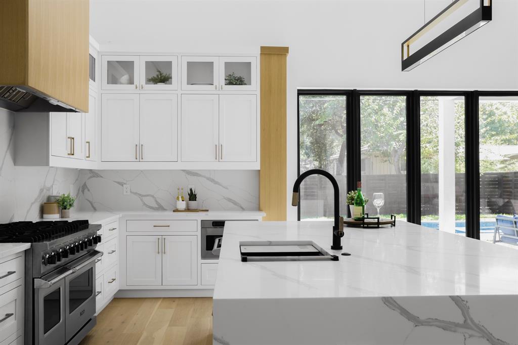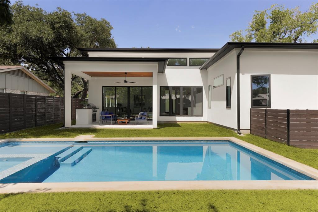 Stunning modern contemporary single-level home now completed new construction, boasts 15-foot flat ceilings and a beautiful heated pool and spa. The 12-foot sliding doors effortlessly bring the outdoors in, creating a seamless connection between the interior and exterior spaces. The spacious layout includes a second living room, perfect for entertaining guests or as a cozy retreat. With four bedrooms and three gorgeous bathrooms, there is ample space for relaxation and privacy. The custom lighting and other special features throughout the home add to its charm and style. VIKING appliances package , outdoor Kitchen and builder 1-2-10 warranty all included. Located in the prestigious neighborhood of Allandale, this home enjoys a prime location in close proximity to downtown Austin. It is also zoned for the highly regarded Gullett Elementary School, making it a desirable choice for families.