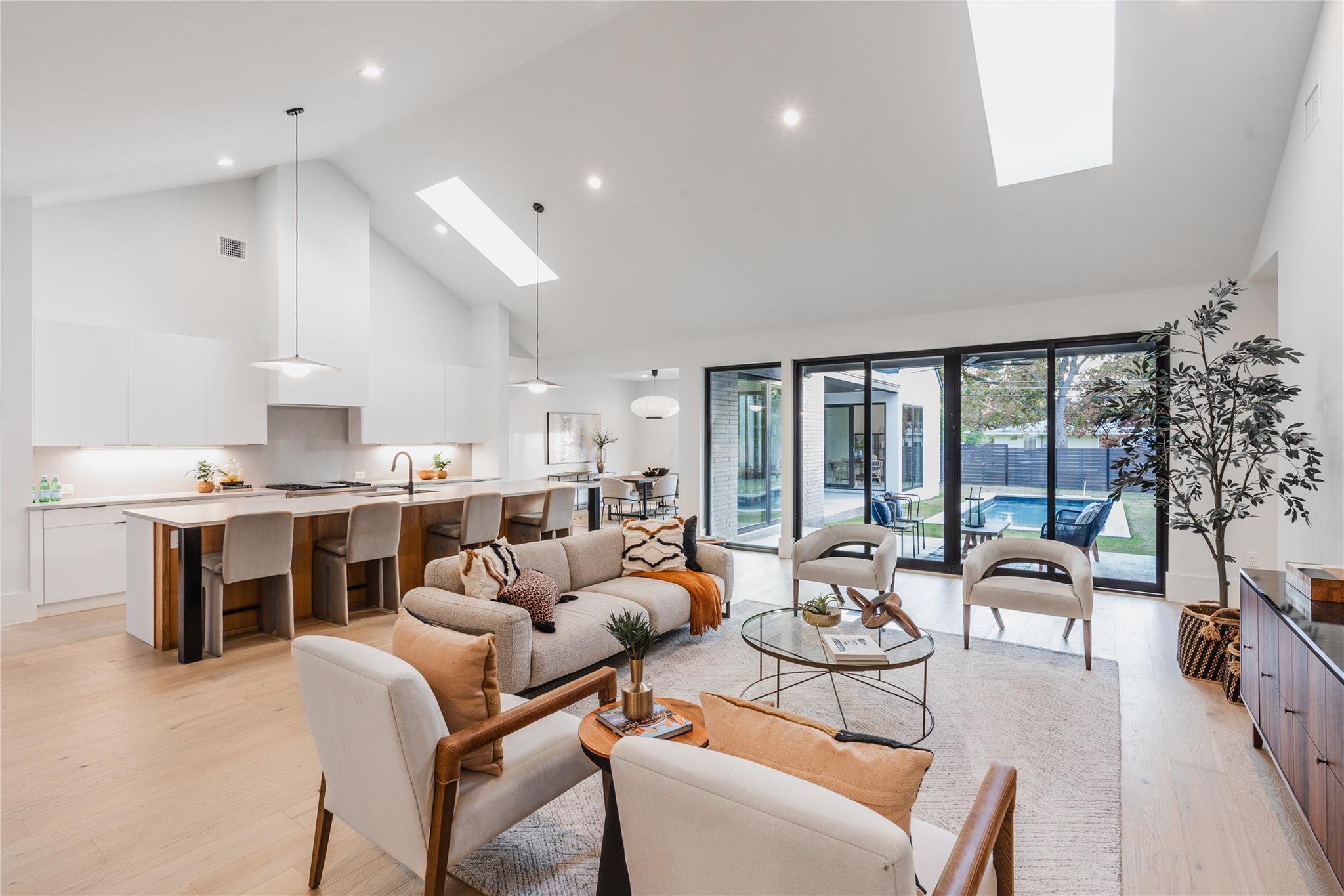 Elevate Property Holdings in collaboration with Gossett & Co presents 1701 Barbara. Crafted with passion and an eye for architectural brilliance by the eminent Studio Celeste and SLIC, this residence is nothing short of a masterpiece. Its distinct design ensures that it stands out, setting a new benchmark for opulence and elegance. The sprawling floor plan encompasses 4 spacious bedrooms, each offering tranquility and style. The 4.5 plush bathrooms, a versatile office space, a secluded detached guest suite, and an expansive swimming pool with awe-inspiring panoramic views accentuate the property's magnificence. Central to this exquisite home is the breathtaking open-concept living area, marked by soaring vaulted ceilings and bespoke sliders. These details work in harmony to usher in streams of natural light, creating an ambiance that reveals the enchanting views of the alfresco dining area and the shimmering pool. The state-of-the-art gourmet kitchen is nothing short of spectacular. Outfitted with Monogram's elite appliances, including a 36" Built-In French-Door Refrigerator and a 36" Gas Range, this culinary space also boasts a stylish butler pantry, generous counter space, and a welcoming island – perfect for hosting grand feasts and intimate dinners alike. The primary bedroom is an epitome of luxury, complete with a lavish soaking tub, a separate shower, and direct access to the ethereal backyard. The detached guest suite is the perfect refuge for visitors, but its versatility also makes it a sublime home office or gym. Step into paradise as you venture into the backyard. It promises countless hours of entertainment and relaxation with its impressive swimming pool and plentiful space for outdoor activities. Seize this unique opportunity to own a residence where opulence meets elegance, and every corner whispers luxury. At 1701 Barbara, experience a lifestyle like no other.
