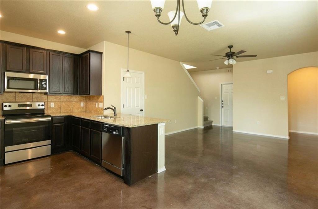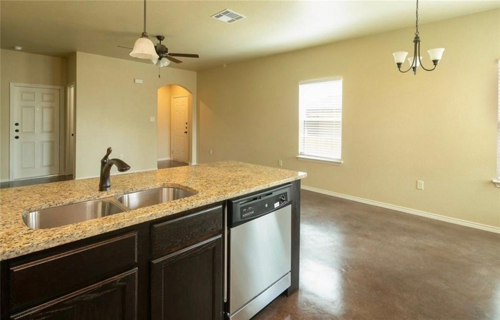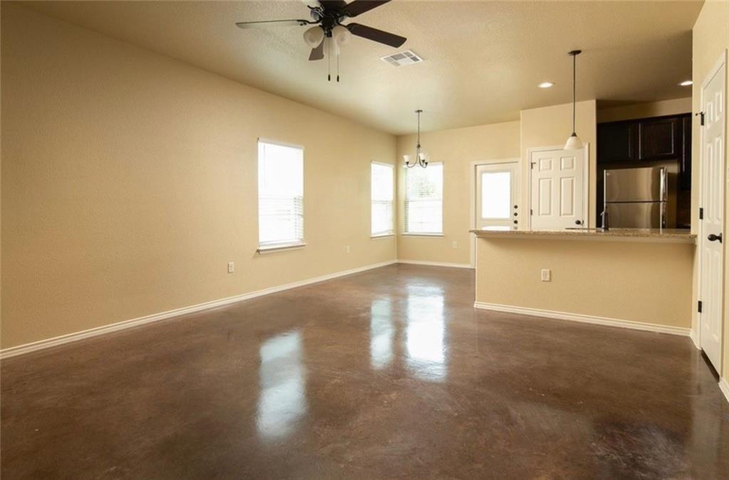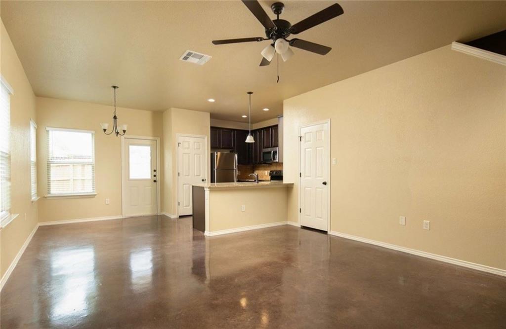Spacious home with stained concrete floors. Nice private fenced backyard, attached 2 car garage. Open floor plan with stainlesssteel appliances and granite countertops!