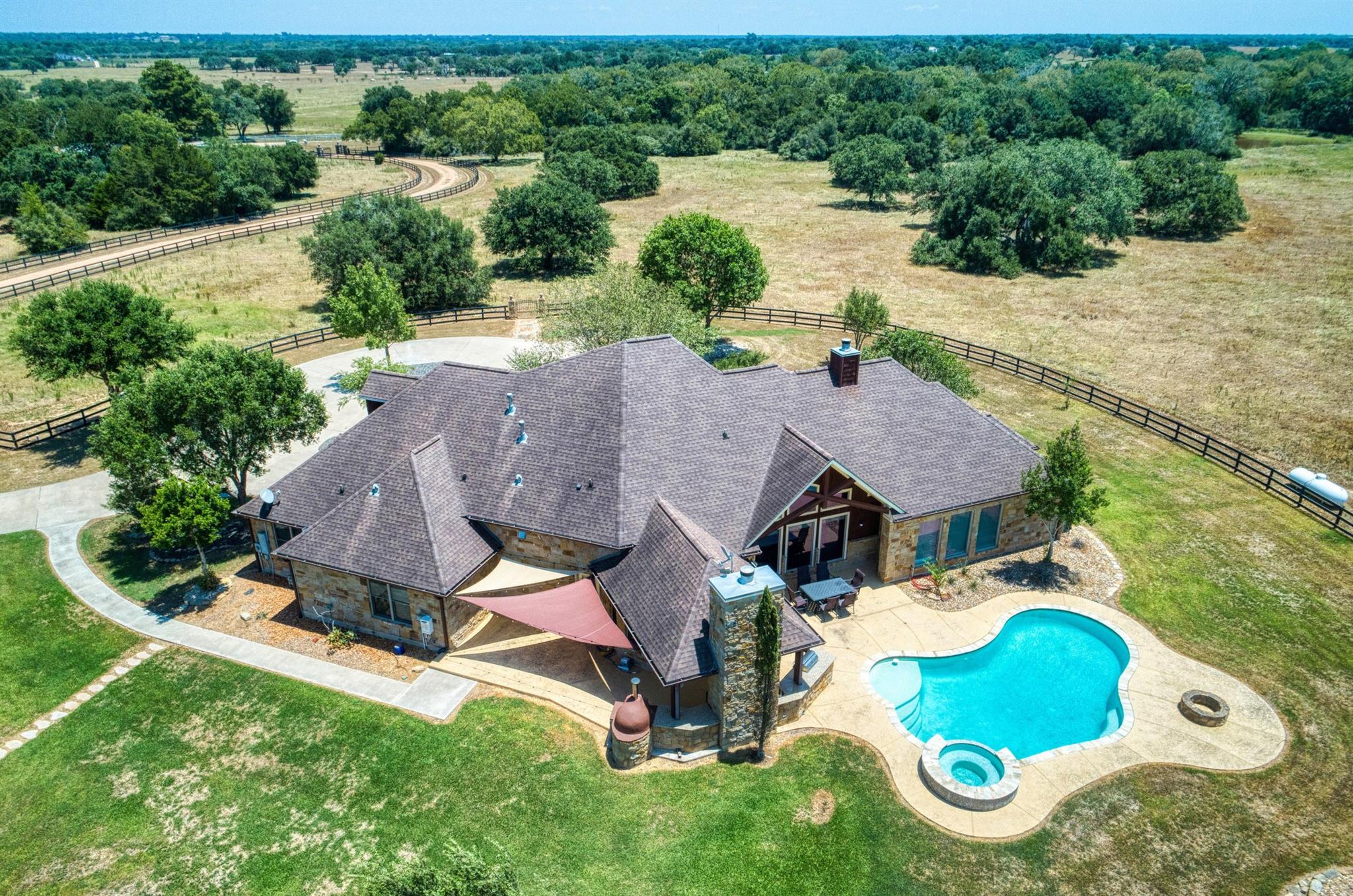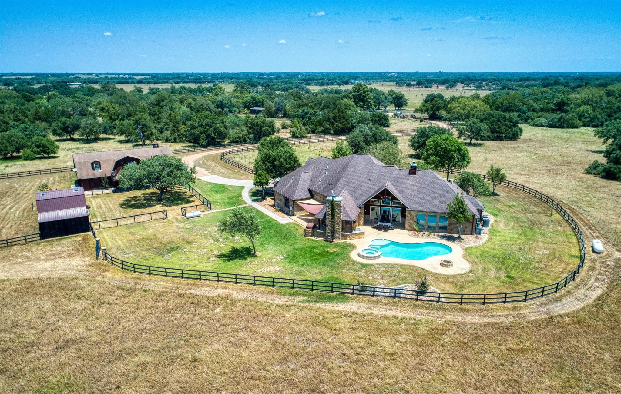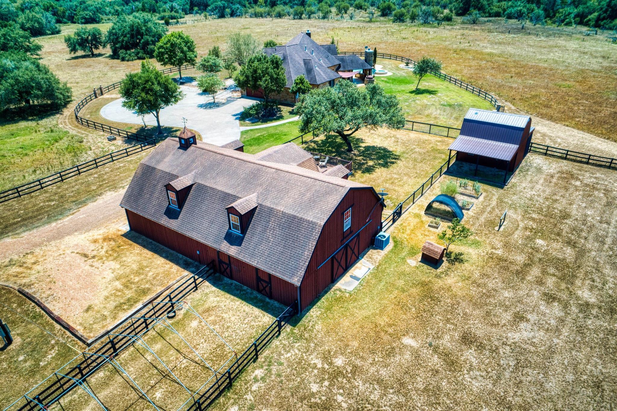 Nestled on 47.6 acres of picturesque landscape, this meticulously maintained equestrian ranchette boasts a 3,972 sq ft custom-built main residence & a charming Guest House. Additionally, a 2-stall horse barn offers potential conversion to a 3-stall configuration, while an impressive chicken coop presents the option to be transformed into a versatile Workshop or delightful Bunkhouse for children. Step outside to witness the graceful dance of horses & deer in the lush pastures, while in the pool, outdoor kitchen, & a fireside retreat. For those who revel in hosting gatherings, the back patio is the epitome of an entertainer's paradise. Tucked away from the rd, this lovely HM is ensconced in a canopy of trees & foliage, offering views from every angle. The patio features an outdoor kitchen complete w/ a pizza oven, as well as a cozy wood-burning fireplace. Picture yourself taking a dip in the in-ground pool beneath the stars, or a glass of wine, steaming latte, while witnessing the gentle graze of cows against the backdrop of a captivating Hill Country sunrise. The property is equipped w/ a stable, hay barn, windmill, & 2 serene ponds. The smaller pond invites local wildlife, while the larger pond features a charming hanging swing – the perfect spot to enjoy iced tea & a good book. The Guesthouse, tastefully furnished w/ cherry oak cabinets, granite countertops, & pine floors, offers a balcony w/ an exquisite vista of the property. This residence is retreat for both family & friends, or a delightful weekend escape for discerning clients. Moreover, this property presents compelling tax advantages for those considering its operation as a Ranch/Business. An investor's dream! W/possibilities ranging from RV Park to Tiny Home Community, Exotic Livestock Breeding & Sales, or simply raising livestock for personal enjoyment, this property provides a multitude of avenues for a quintessential Texas Ranch experience. Secure your showing today!