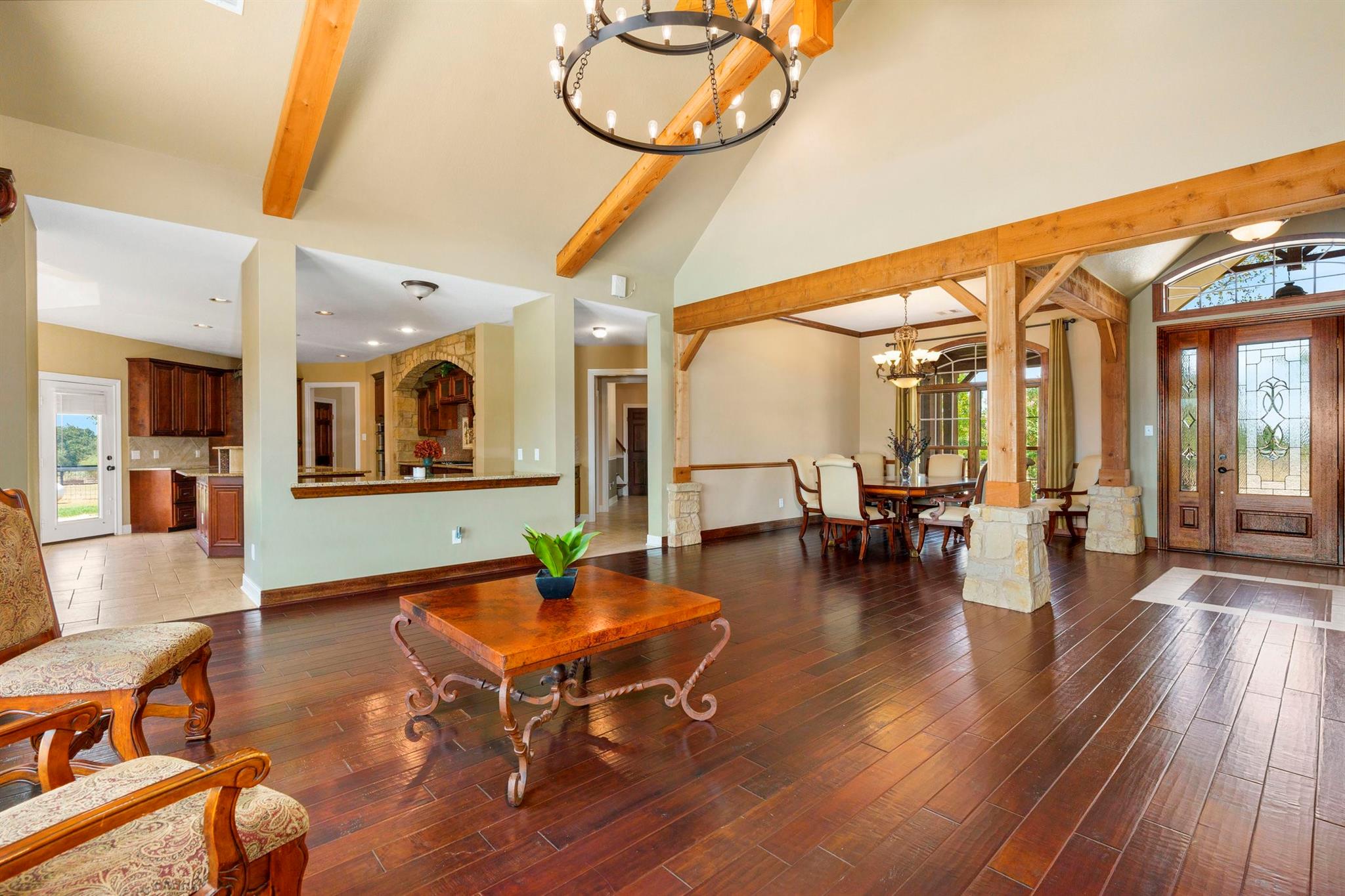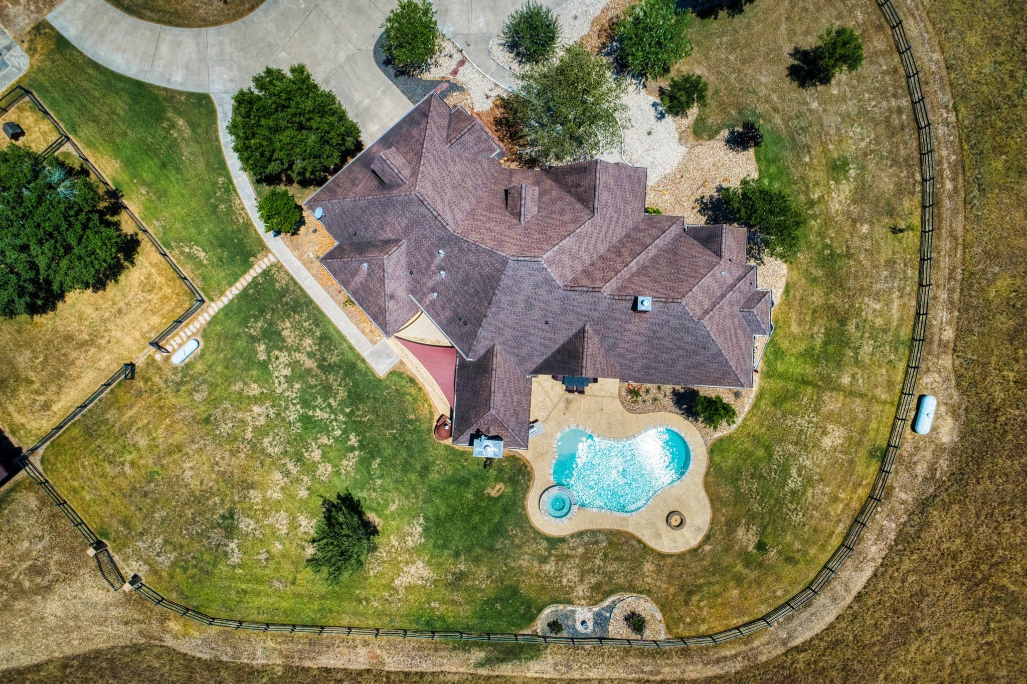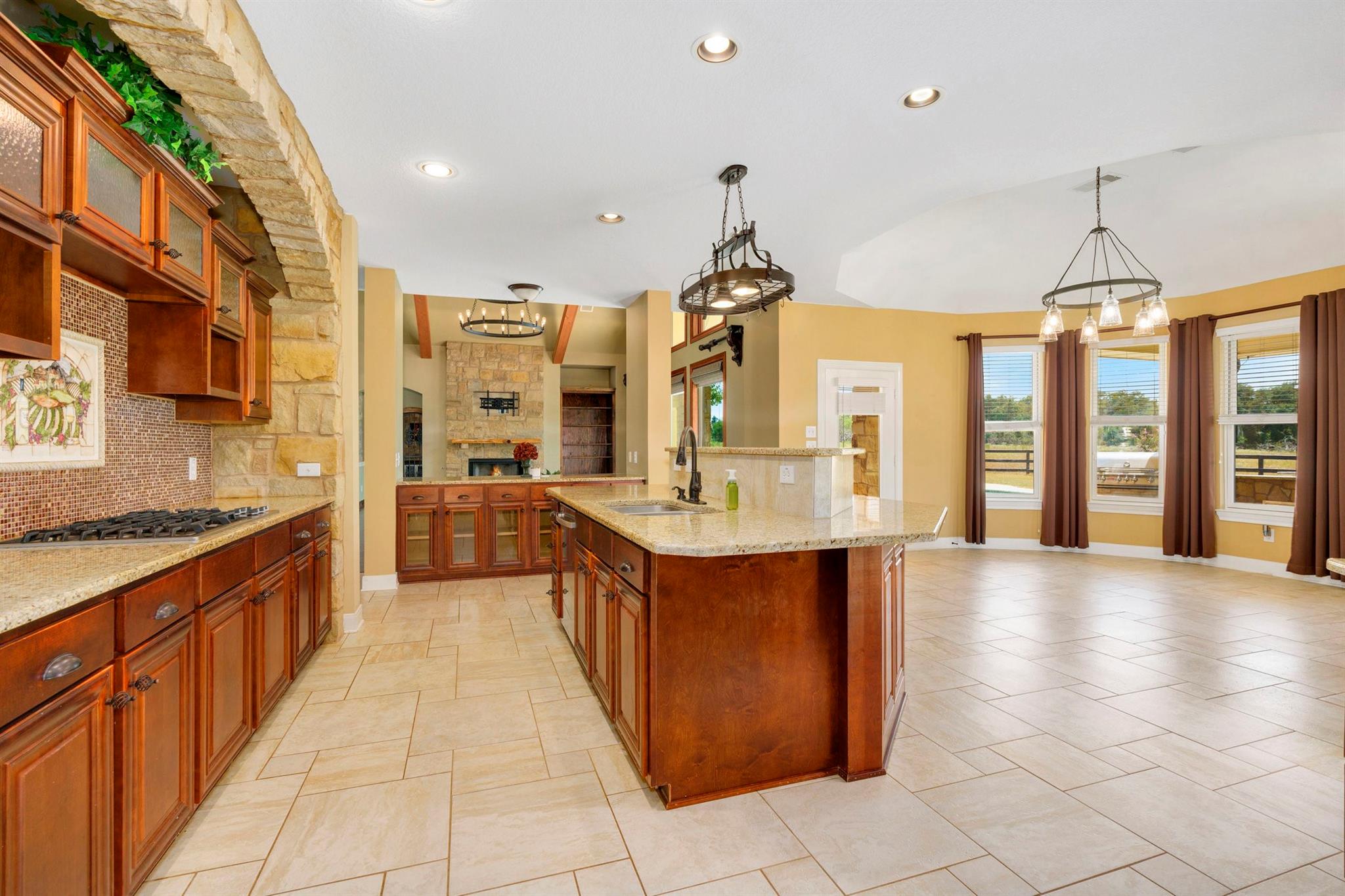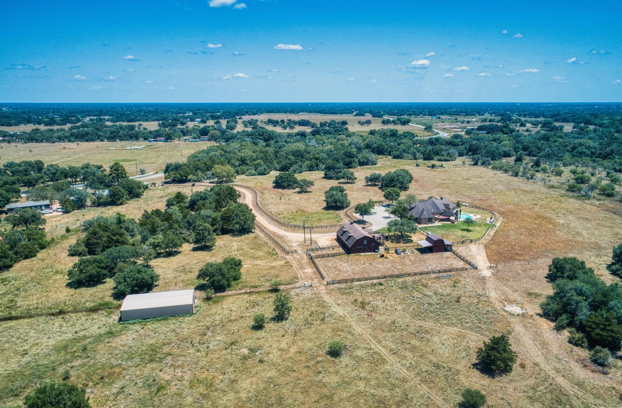 Nestled on 47.6 acres of picturesque landscape, this meticulously maintained equestrian ranchette boasts a 3,972 sq ft custom-built main residence & a charming Guest House. Additionally, a 2-stall horse barn offers potential conversion to a 3-stall configuration, while an impressive chicken coop presents the option to be transformed into a versatile Workshop or delightful Bunkhouse for children. Step outside to witness the graceful dance of horses & deer in the lush pastures, while in the pool, outdoor kitchen, & a fireside retreat. For those who revel in hosting gatherings, the back patio is the epitome of an entertainer's paradise. Tucked away from the rd, this lovely HM is ensconced in a canopy of trees & foliage, offering views from every angle. The patio features an outdoor kitchen complete w/ a pizza oven, as well as a cozy wood-burning fireplace. Picture yourself taking a dip in the in-ground pool beneath the stars, or a glass of wine, steaming latte, while witnessing the gentle graze of cows against the backdrop of a captivating Hill Country sunrise. The property is equipped w/ a stable, hay barn, windmill, & 2 serene ponds. The smaller pond invites local wildlife, while the larger pond features a charming hanging swing – the perfect spot to enjoy iced tea & a good book. The Guesthouse, tastefully furnished w/ cherry oak cabinets, granite countertops, & pine floors, offers a balcony w/ an exquisite vista of the property. This residence is retreat for both family & friends, or a delightful weekend escape for discerning clients. Moreover, this property presents compelling tax advantages for those considering its operation as a Ranch/Business. An investor's dream! W/possibilities ranging from RV Park to Tiny Home Community, Exotic Livestock Breeding & Sales, or simply raising livestock for personal enjoyment, this property provides a multitude of avenues for a quintessential Texas Ranch experience. Secure your showing today!