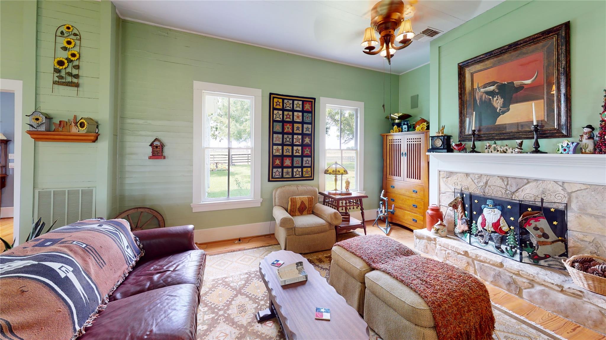 87.285-acres in Brenham, Texas. Horse Lovers Dream! 3400 feet of road frontage! Driveway lined with trees leads to a beautifully restored home, originally built in the 1920s and enhanced with additions in the 1950s and early 2000s. Recent updates include a new roof, plumbing, fresh interior paint, and more. Boasting approximately 3,152 square feet, this residence offers 3 bedrooms, 3 baths, his/her offices, and a sunroom. Spacious living area with a rock fireplace flowing into the formal dining space. The gourmet kitchen features a Viking range, double ovens, granite countertops, and accent lighting. Oversized bedrooms, refinished hardwood floors, 12' ceilings, and large windows provide captivating views. Witness stunning sunsets and fields of Bluebonnets from the large porch. Additional amenities: oversized 2-car garage, 3 barns (4 stalls), 2 ponds, scattered trees, hayfield in production. 10 miles N of Brenham, 25 miles S of College Station, 55 miles W of Loop 99/290 in Cypress.