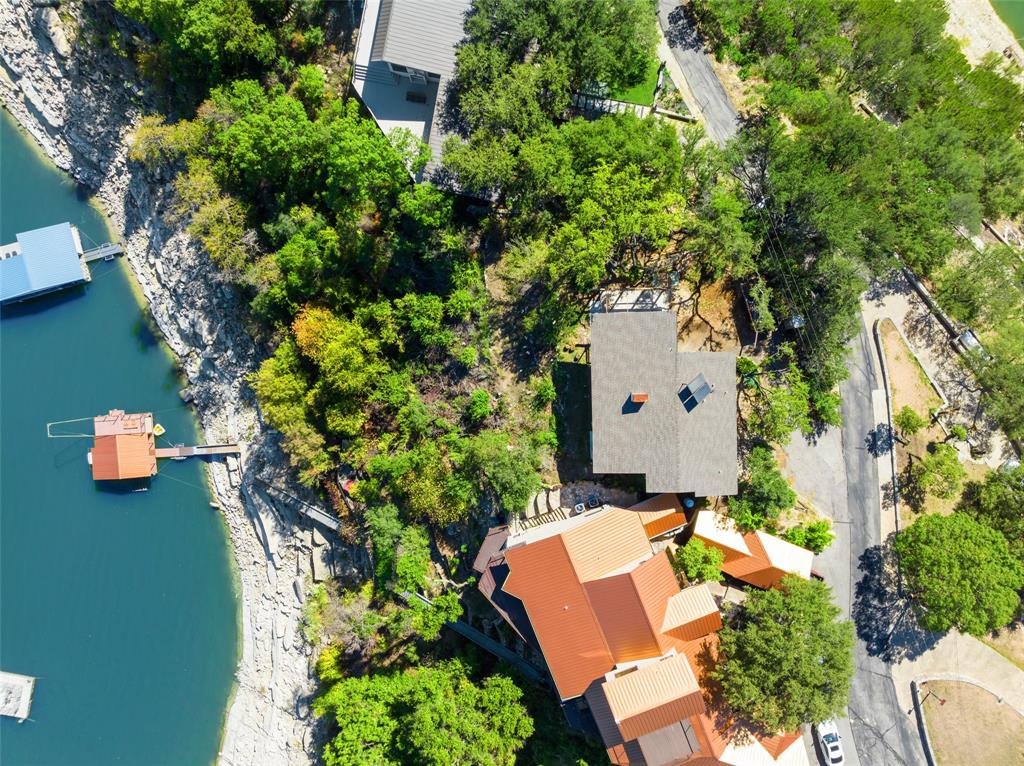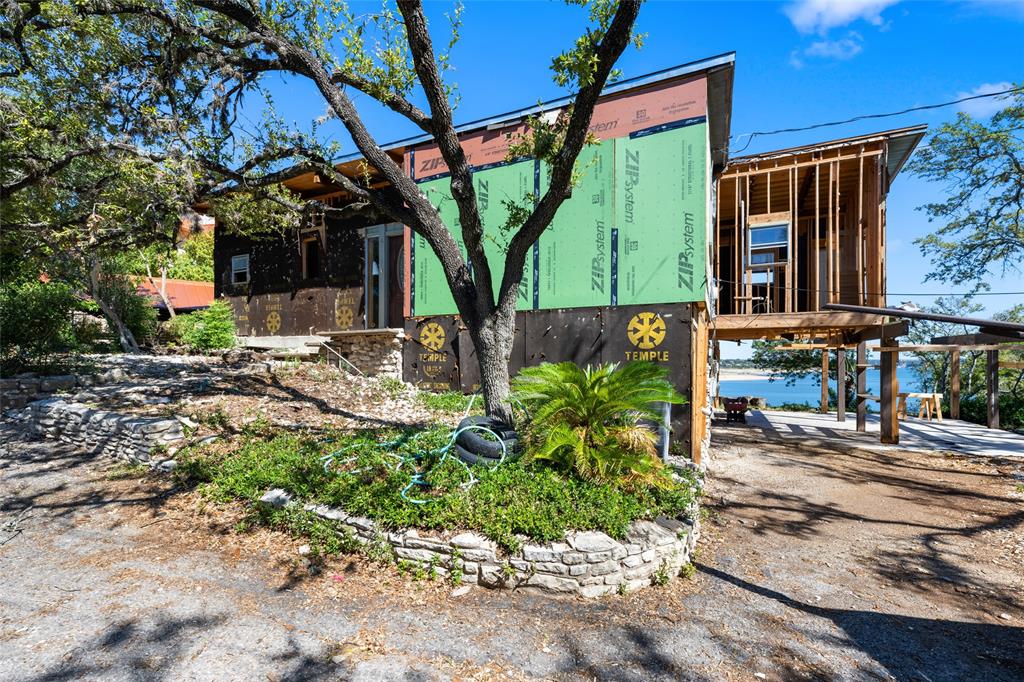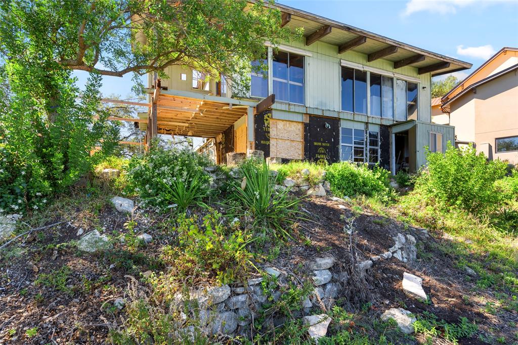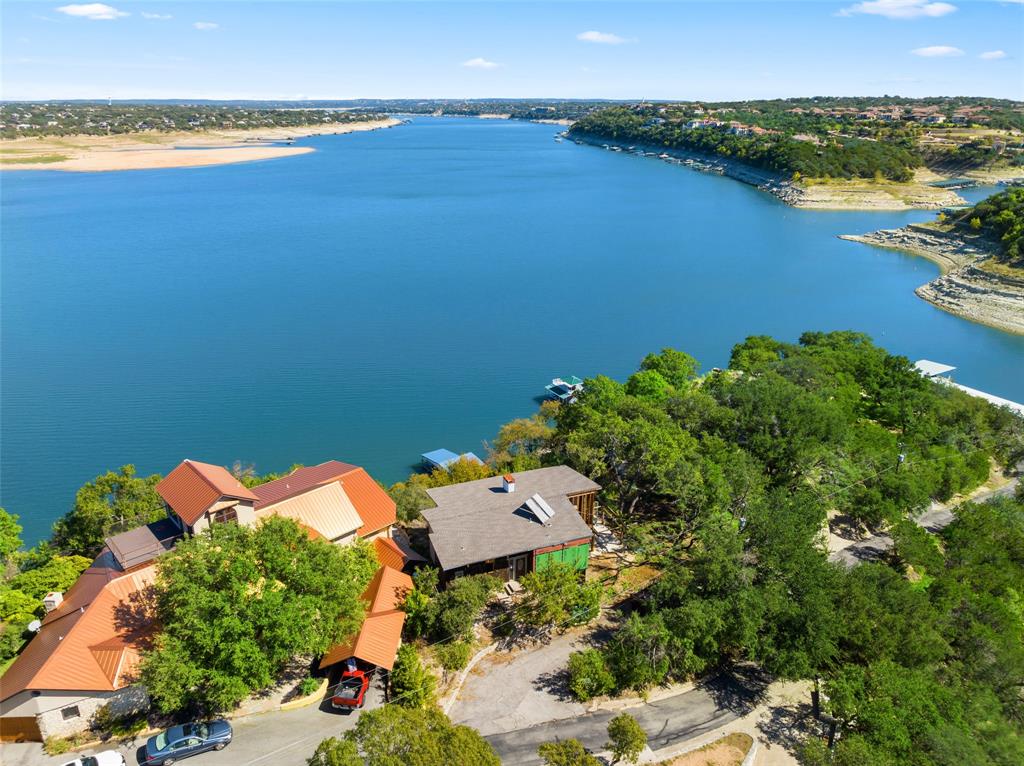 Wake up to one hundred and eighty degrees of uninterrupted Lake Travis main water views. This property built 1976 home provides a dramatic opportunity for mid-century rehab or complete tear down for a modern lake front estate. Seller has since taken the previous structure to the studs. Dock is permitted by LCRA on this parcel. This waterfront community provides gated access, boat dock and community parking. Situated in the coveted Lake Travis School District enjoy the benefits remote commute to Bee Cave 8 Miles and downtown Austin 23.4 Miles away. Land totaling 19,079+/- sqft with a water frontage of 80+ ft and dwelling totaling 2,300 sqft. Sellers previous plans offer a 3,200 sqft structure with opportunity to go larger with LCRA approval of septic system. Utilities are provided community public water, septic system and electric. Enjoy community tennis & basketball courts. Take advantage of both low tax rate and low HOA fees. This property is both stunning and serene providing an astounding opportunity for an amazing custom build. Dock specifications can be found on LCRA website. Home design is rendering only inspired by existing floorplan, buyers due diligence to complete design plans to specification. Listing Contacts - Property is currently to studs and foundation condition - Lot with LCRA was purchased and allows residential dock with no permit needed - Septic size and drainage depending on plan allows 2,500-3,500 sqft property, larger dwelling will be subject to approval - Neighborhood boat slip HOA fee is $220/m - Neighborhood does have ACC for design - NO STR ALLOWED * Buyer responsibility to do due diligence on all plans