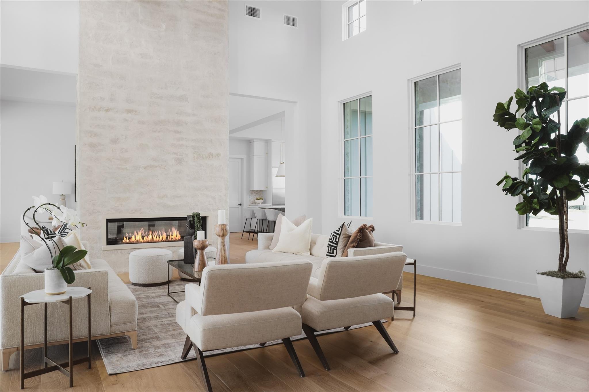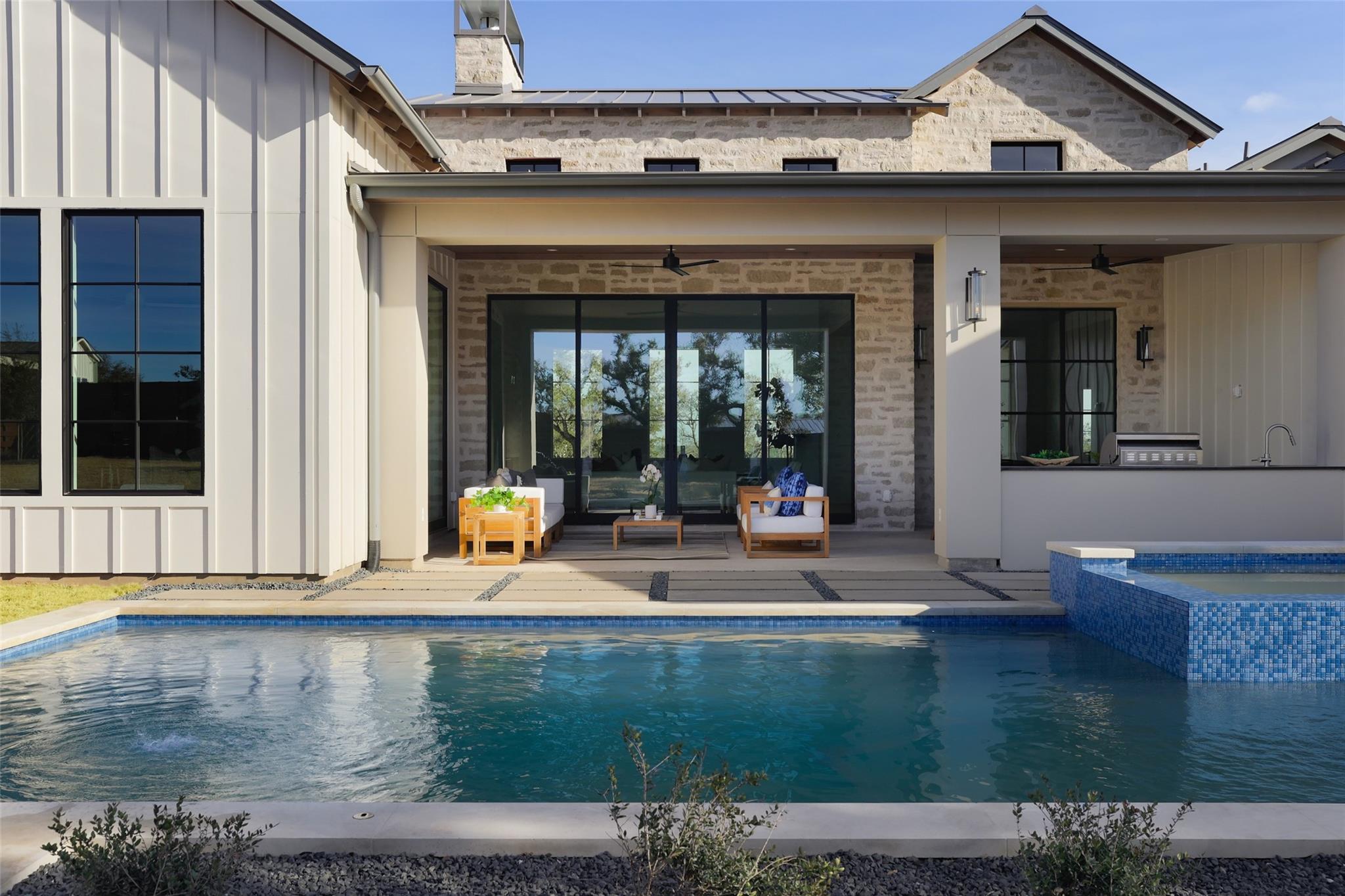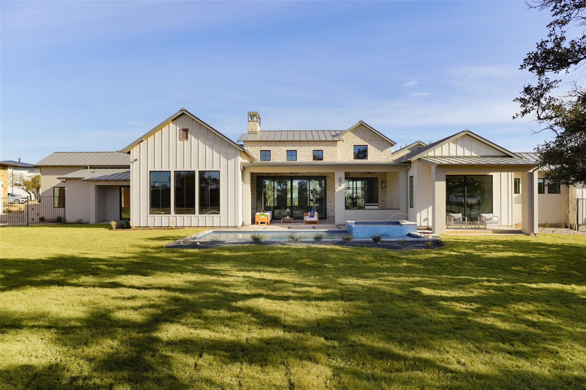 Indulge in the epitome of European country side living within the exclusive gates of Madrone Canyon at Chateau Madrone. This exquisite SINGLE STORY home, crafted by the esteemed Ames Design Build, is a masterpiece of open design, meticulous construction, and contemporary elegance. Upon entering, a grand 2-story entry welcomes you with 18' cathedral beamed ceilings, setting the tone for the luxurious interiors. The 6 bed, 6.5 bath interior is thoughtfully designed with finishes such as white oak wood floors, wood beams throughout, and buff lueder stone with an intricate over-grout finish. The formal living room features a 2-story natural stone double fireplace that seamlessly connects to the dining room. 10’ Western slider doors line the living spaces creating a seamless indoor/outdoor living experience. The kitchen is a culinary haven with Wolf & Sub-Zero appliances, an oversized island, double ovens, and double dishwashers and opens to the dining and secondary living space, creating a effortless flow. Further, the home enjoys a large utility room with plumbing for a fridge and ample storage. Attached to the utility room is an Amazon package drop area, ensuring peace of mind from inclement weather. All the secondary bedrooms enjoy en-suite bathrooms, and their own unique and luxurious features. The primary suite is incredibly spacious, and enjoys elevated features like beamed cathedral ceilings, large windows looking out to the pool, a private patio, and a large primary bath. The primary bath was exquisitely designed, with a separate vanity, soaking tub, gold accents, and a walk-in closet. Enjoy outdoor living with ample entertainment space adorned by mature oak trees, a beautiful pool & spa combination. The 3-car garage with electrical for a charging station and plumbing closet for a home water filtration system. This home is a perfect blend of luxurious living, natural features and functional design.