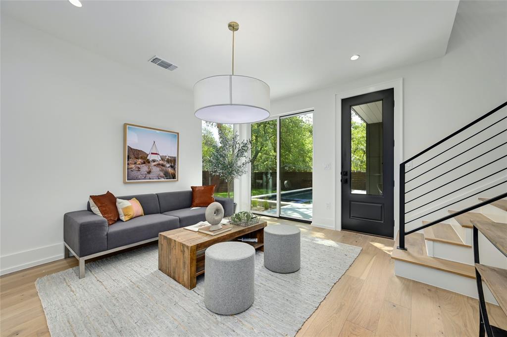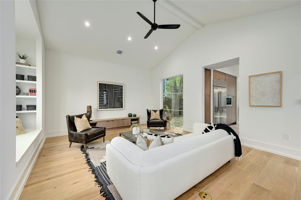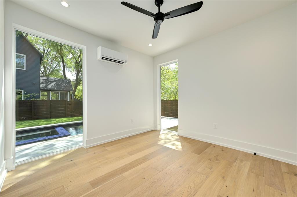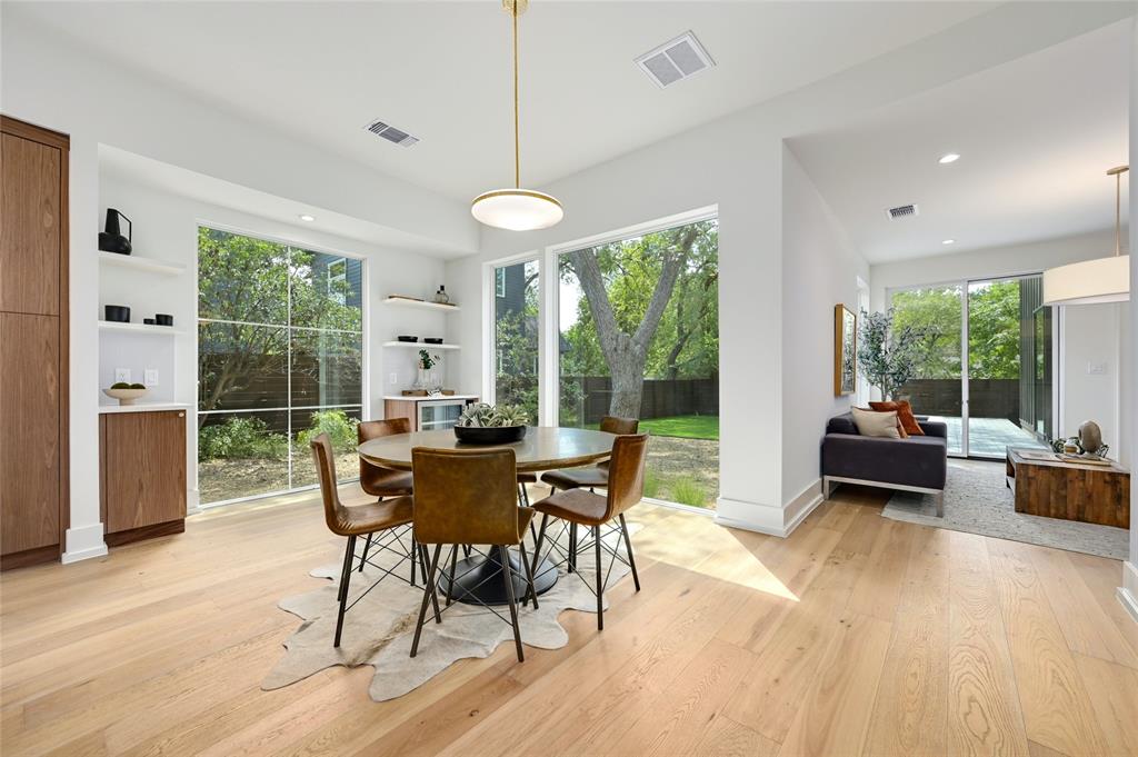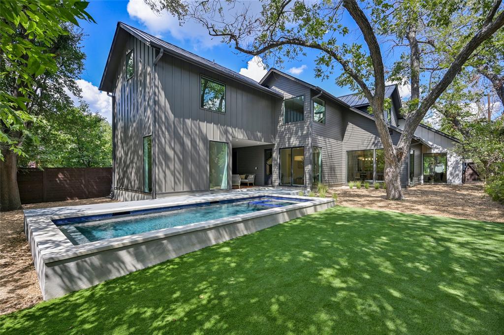 Discover a harmonious blend of modern sophistication and natural allure in this meticulously crafted home nestled within Austin's sought-after Brentwood neighborhood. Designed for both style and comfort, the residence welcomes an abundance of natural light, highlighting the open floorplan and providing picturesque views of the verdant backyard sanctuary through expansive windows. The gourmet kitchen is a culinary haven, featuring sleek quartz countertops, bespoke walnut cabinetry, and top-of-the-line Monogram appliances. The rich hardwood floors seamlessly guide you through two levels, leading to three spacious living areas or the indulgent master suite with a spa-like walk-in shower and closet. Step outside to the captivating pool and spa area, enhanced by custom timbertech decking and a generous outdoor kitchen boasting a 36" gas grill. Additionally, a separate casita at the rear of the property offers versatility as an extra bedroom suite or private office space. This exceptional home is further complemented by a custom Elfa closet and storage systems, a two-car garage, and professionally landscaped grounds with a sprinkler system. Just steps away from local favorites such as Little Deli and Brentwood Park, it affords convenient access to Brentwood Social House, Violet Crown, Stiles Switch BBQ, and other premier Austin destinations. A rare gem, this residence effortlessly combines contemporary luxuries with the inviting warmth of nature in one of the city's most desirable neighborhoods.