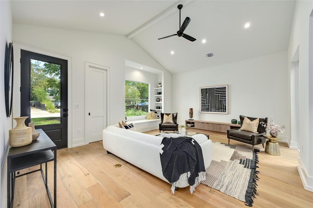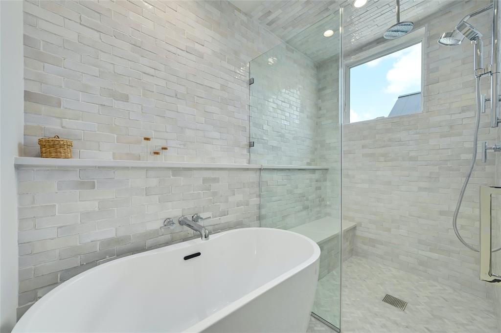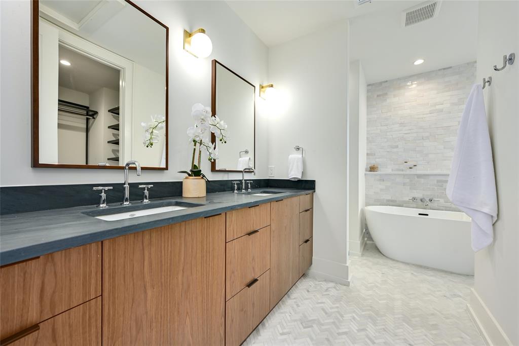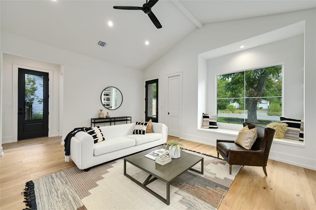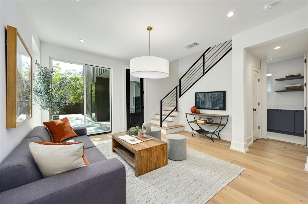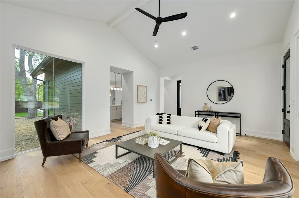 Discover a harmonious blend of modern sophistication and natural allure in this meticulously crafted home nestled within Austin's sought-after Brentwood neighborhood. Designed for both style and comfort, the residence welcomes an abundance of natural light, highlighting the open floorplan and providing picturesque views of the verdant backyard sanctuary through expansive windows. The gourmet kitchen is a culinary haven, featuring sleek quartz countertops, bespoke walnut cabinetry, and top-of-the-line Monogram appliances. The rich hardwood floors seamlessly guide you through two levels, leading to three spacious living areas or the indulgent master suite with a spa-like walk-in shower and closet. Step outside to the captivating pool and spa area, enhanced by custom timbertech decking and a generous outdoor kitchen boasting a 36" gas grill. Additionally, a separate casita at the rear of the property offers versatility as an extra bedroom suite or private office space. This exceptional home is further complemented by a custom Elfa closet and storage systems, a two-car garage, and professionally landscaped grounds with a sprinkler system. Just steps away from local favorites such as Little Deli and Brentwood Park, it affords convenient access to Brentwood Social House, Violet Crown, Stiles Switch BBQ, and other premier Austin destinations. A rare gem, this residence effortlessly combines contemporary luxuries with the inviting warmth of nature in one of the city's most desirable neighborhoods.