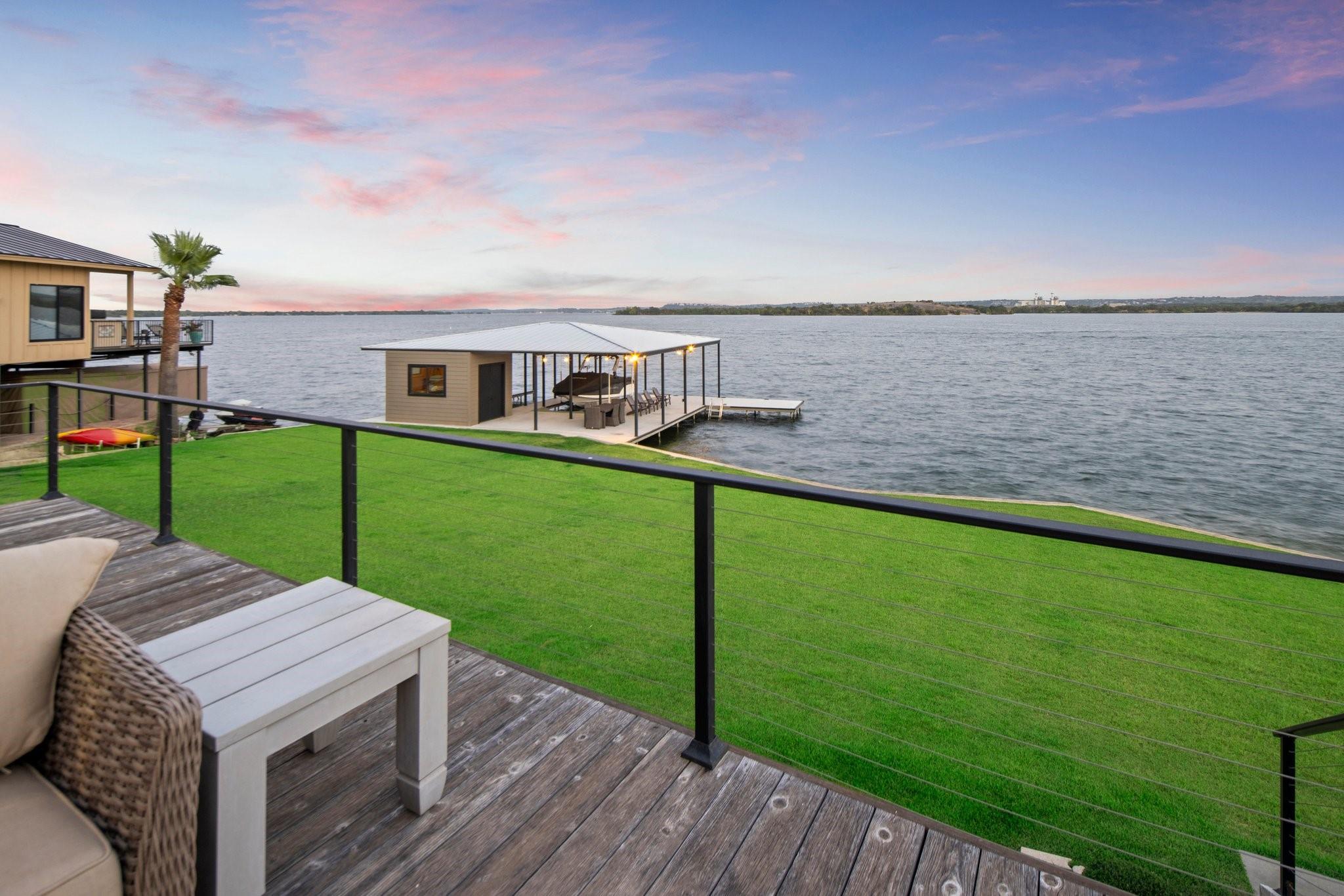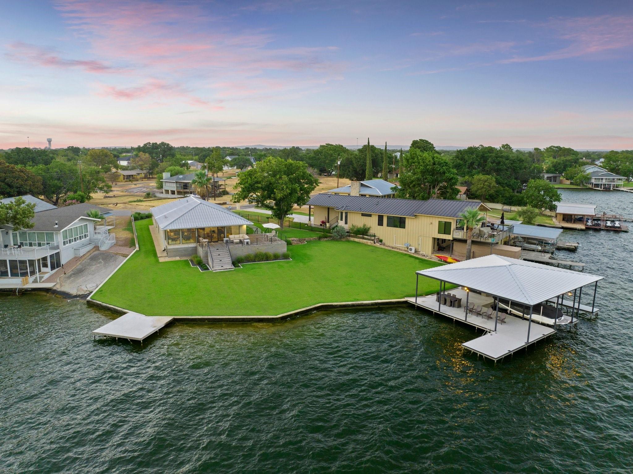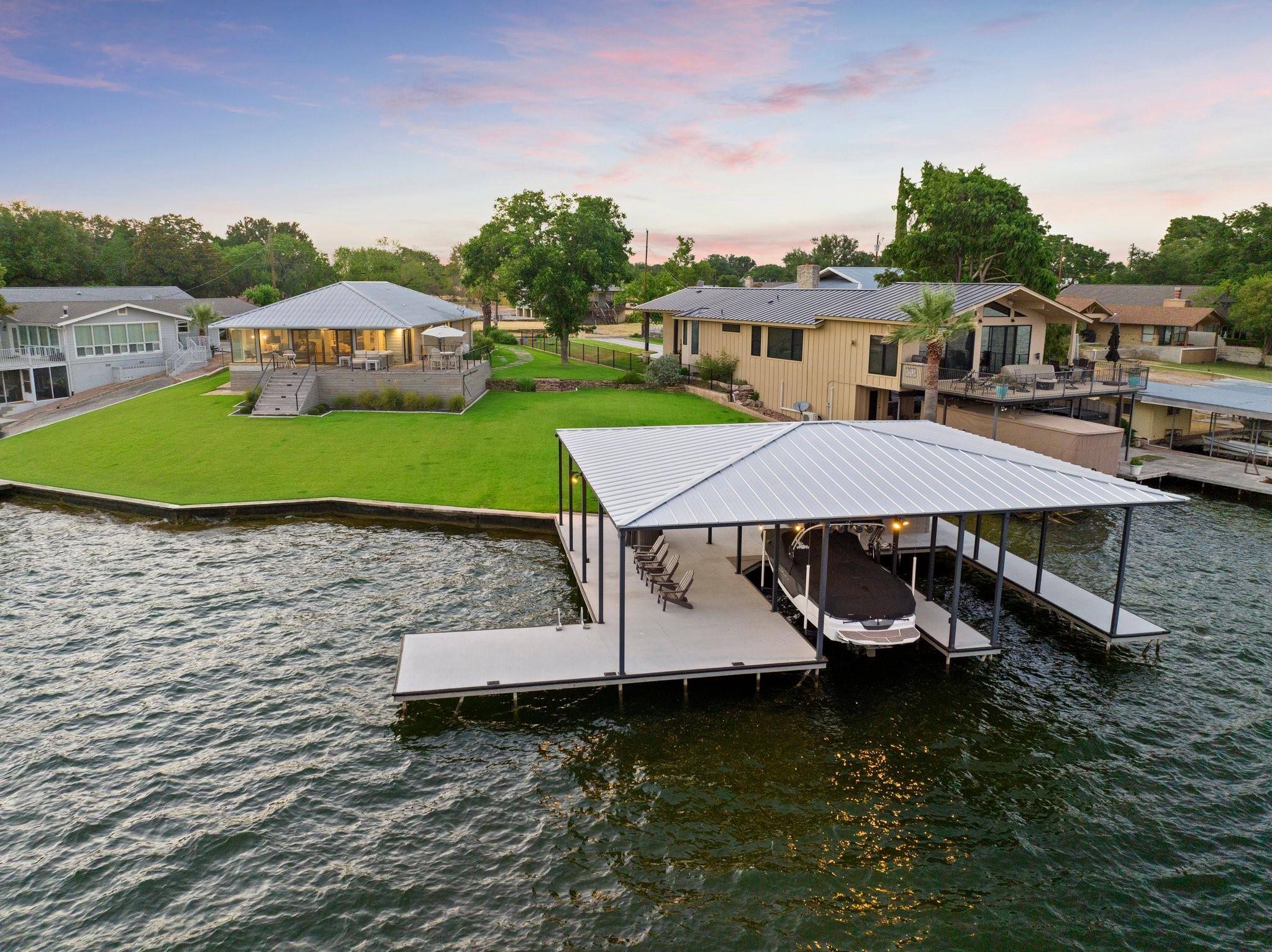 You will not believe the panoramic views from this house until you see for yourself! Nearly 200' of open water on the main body of Lake LBJ from this South-facing lot provide privacy and incredible views. The home has been completely remodeled with beautiful quality finishes. Window walls open this home to stunning views. A new double boat dock plus a separate swimming/fishing dock make your time at the lake so enjoyable. Room to add a pool and still have a great landscaped yard. This is a very unique property that should be seen to be fully appreciated.