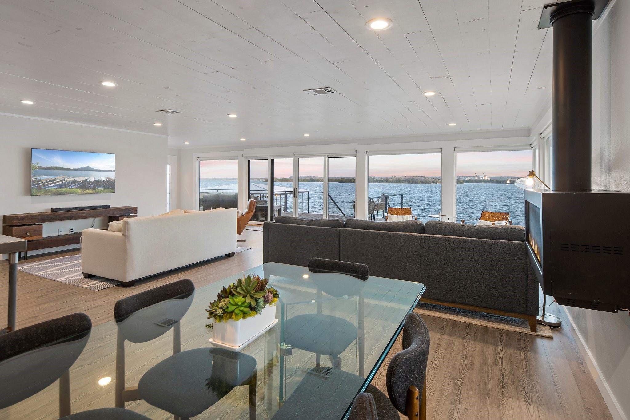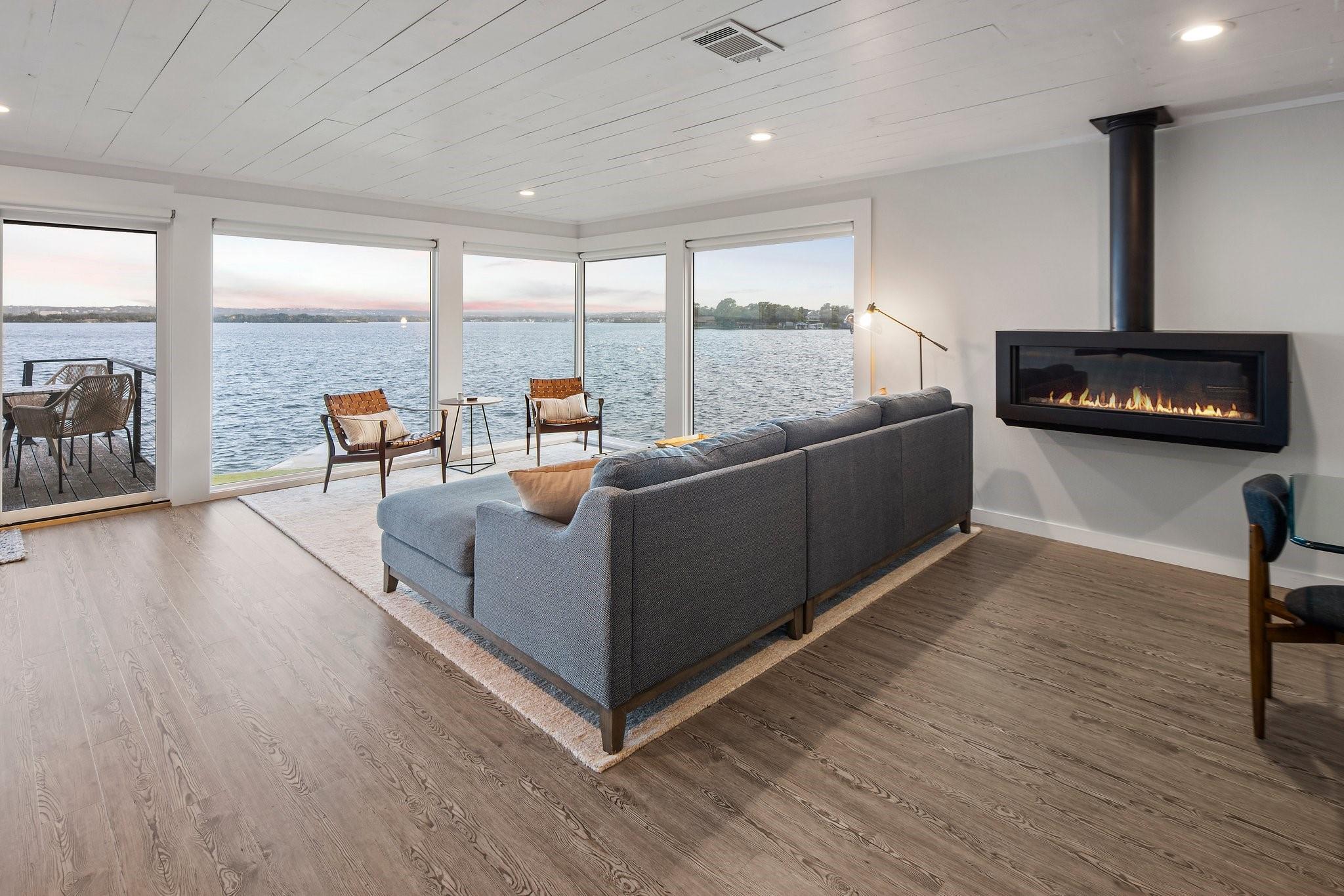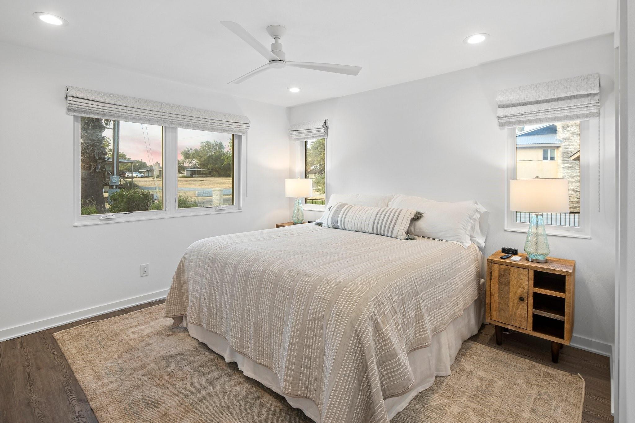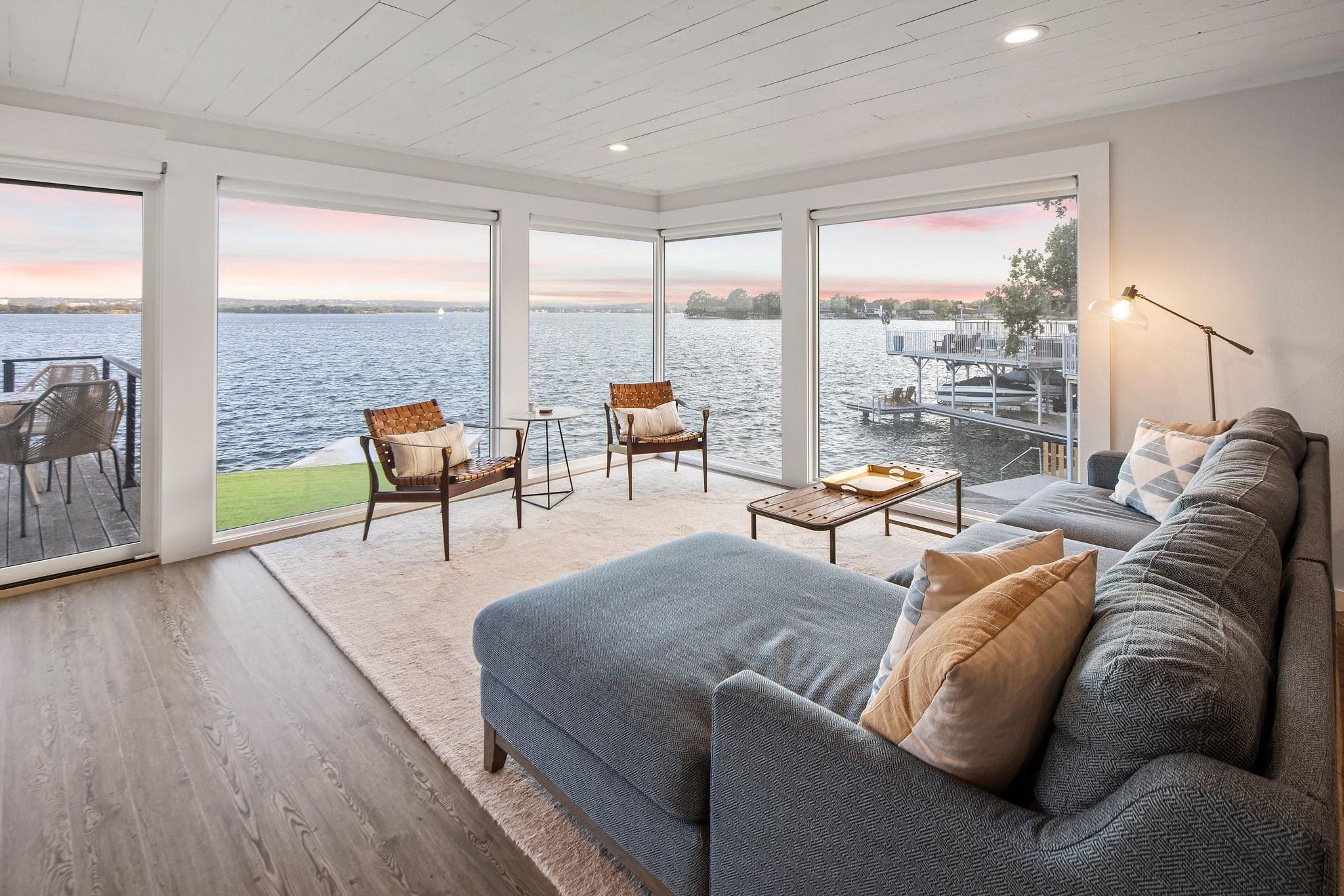 You will not believe the panoramic views from this house until you see for yourself! Nearly 200' of open water on the main body of Lake LBJ from this South-facing lot provide privacy and incredible views. The home has been completely remodeled with beautiful quality finishes. Window walls open this home to stunning views. A new double boat dock plus a separate swimming/fishing dock make your time at the lake so enjoyable. Room to add a pool and still have a great landscaped yard. This is a very unique property that should be seen to be fully appreciated.