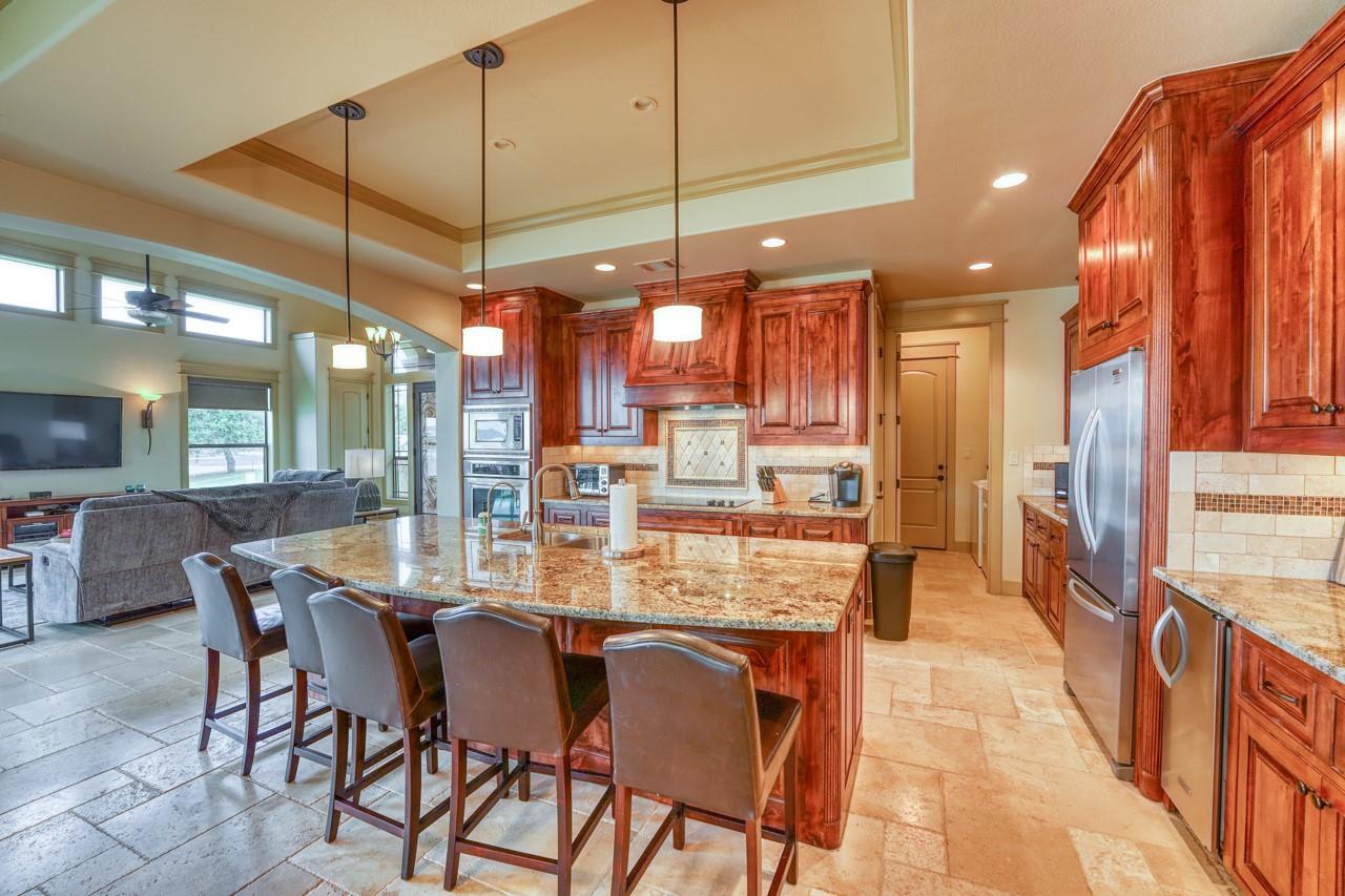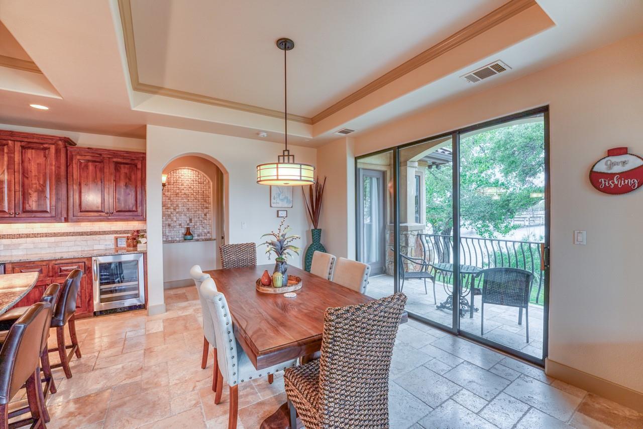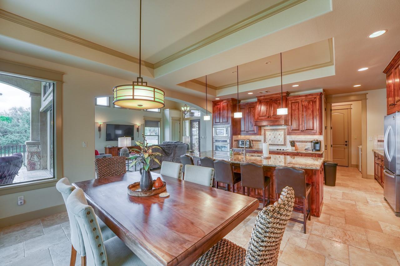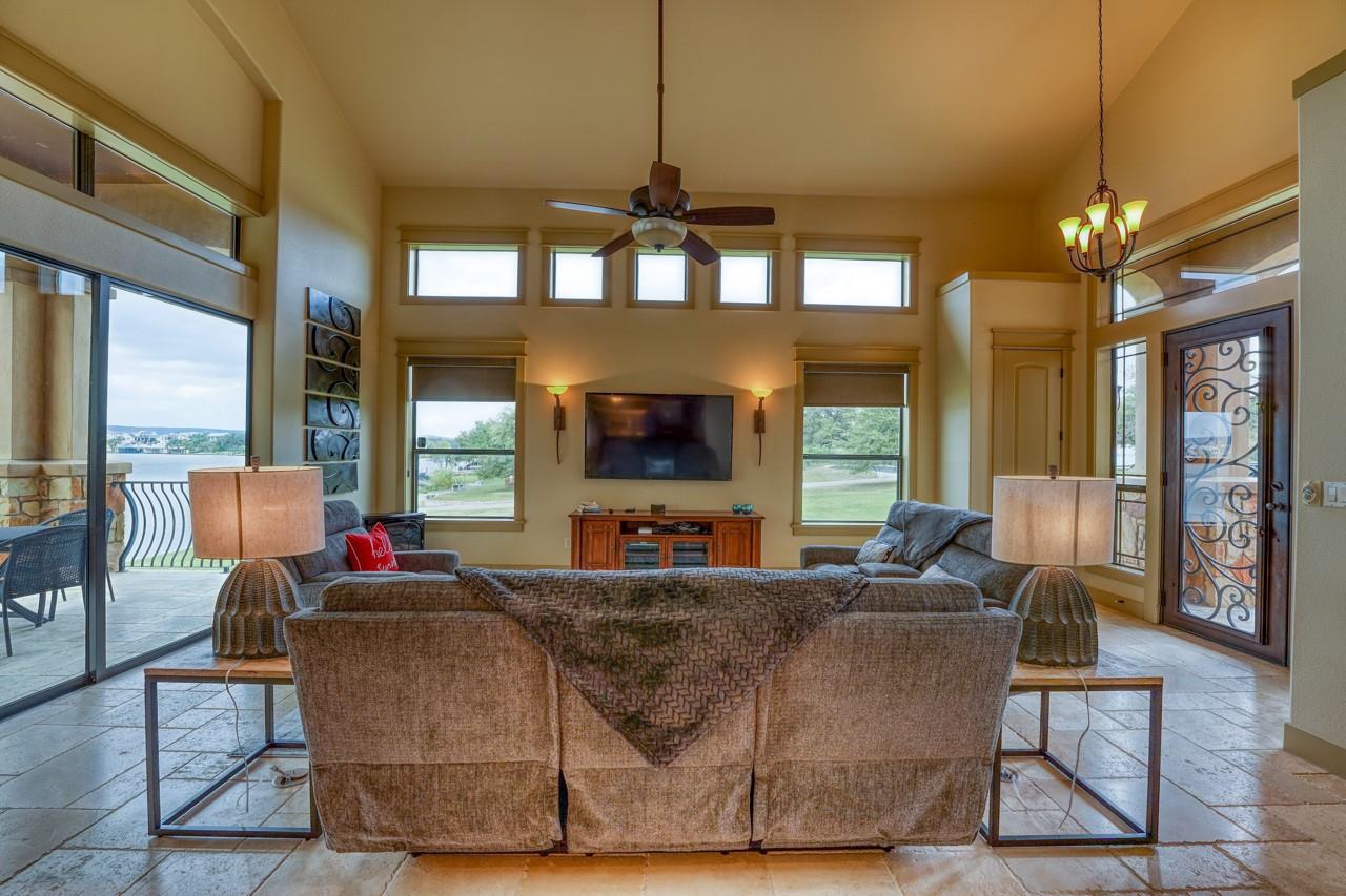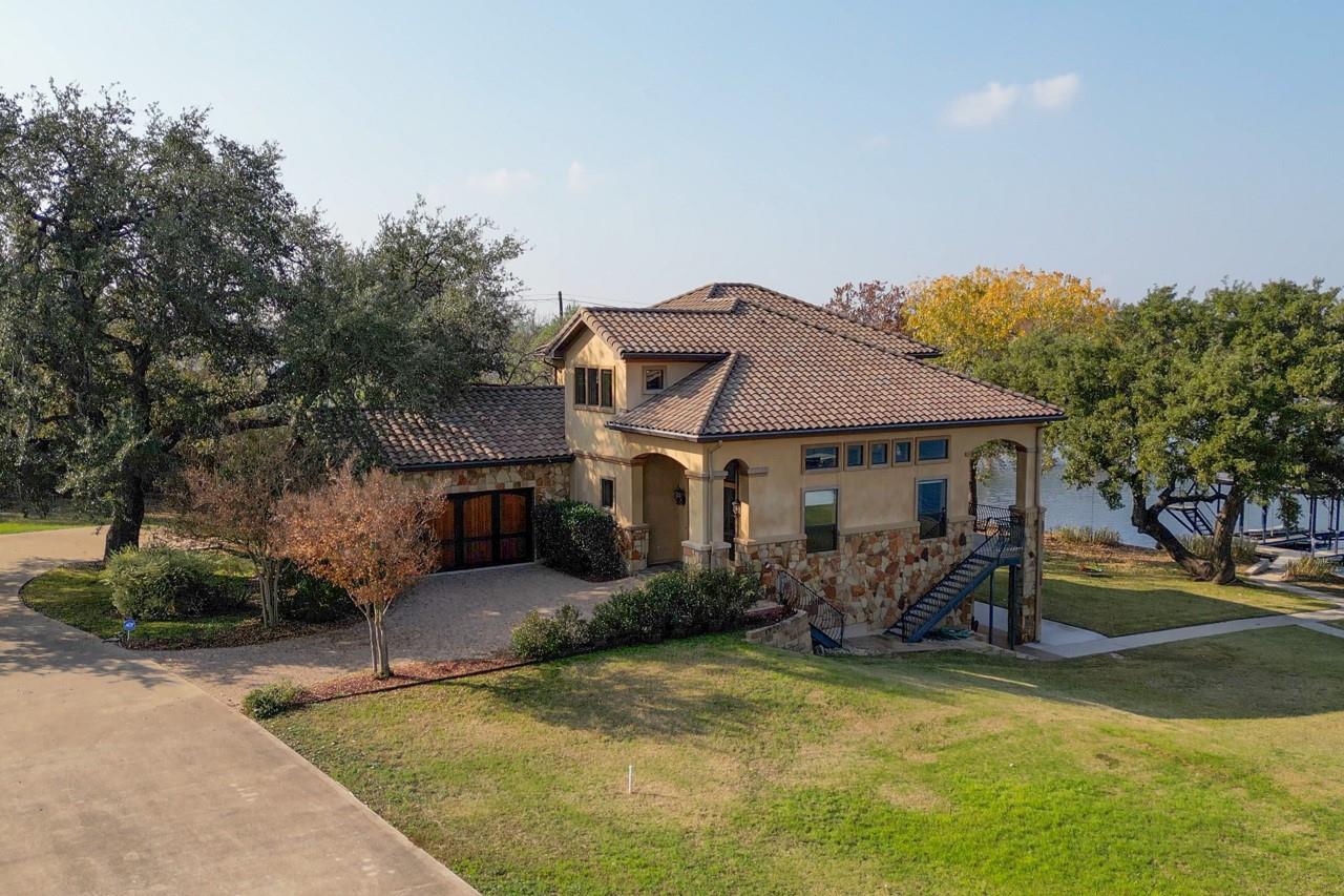 This Texas Hill Country Tuscan beauty offers a gorgeous blend of New World conveniences with Old World details, craftsmanship and charm. The residence is perfectly situated with stunning open waterfront in a private section of Colina Cove on the Colorado Arm of Lake LBJ. Even the most discerning buyer will appreciate the true stucco exterior, enhanced by beautiful stone work and barrel tile roofing, which add to the rich, earth tones that provide a breathtaking symmetry with the deep-blue Texas sky reflecting into Lake LBJ. The house is being sold fully furnished and is currently in a Short Term Rental program. All future rentals will be honored. 2 Lots next to the property are available for additional price.