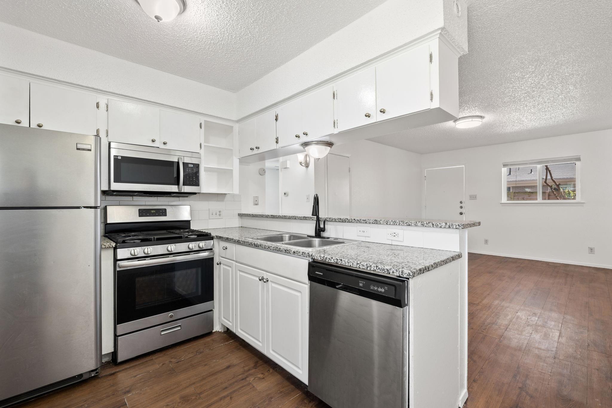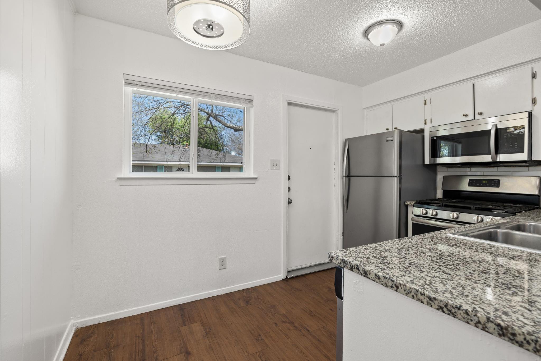 Thoughtfully updated 2x1 in the popular and beautiful University Hills Neighborhood in 78723. Granite countertops in kitchen, brand new tile in bathroom! Great location with proximity to HEB, I-35 and 290, parks, and employers. Property is a duplex, both sides are available for immediate move in, each priced at $1600/mo. Each side of duplex has a private feel, as well as a small private yard! Competitively priced, come tour today!