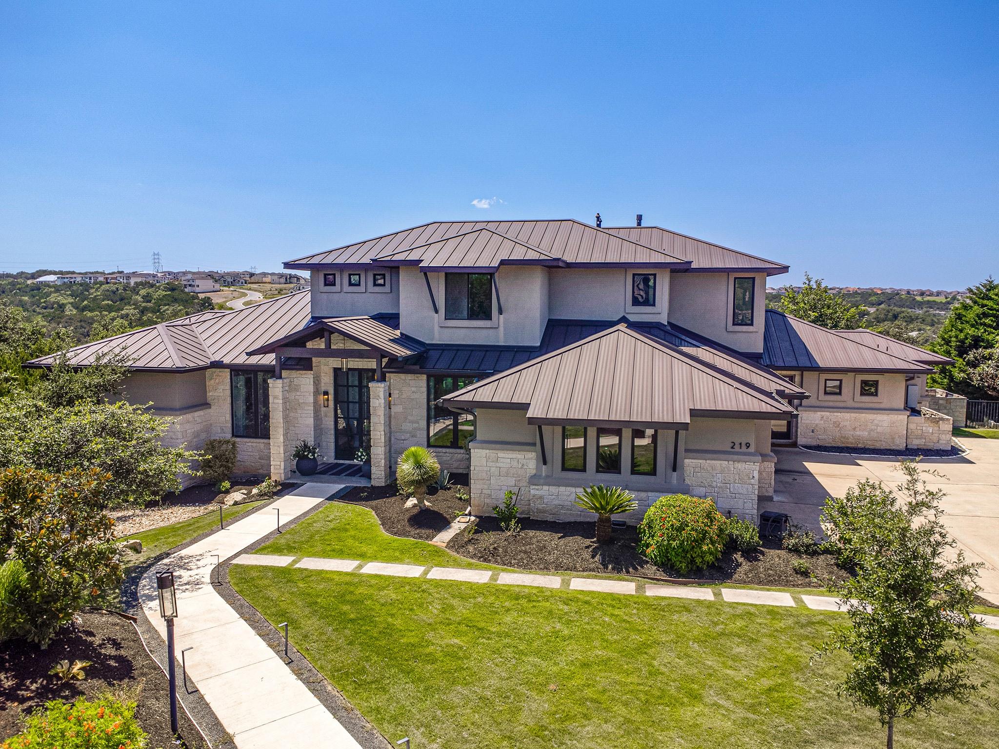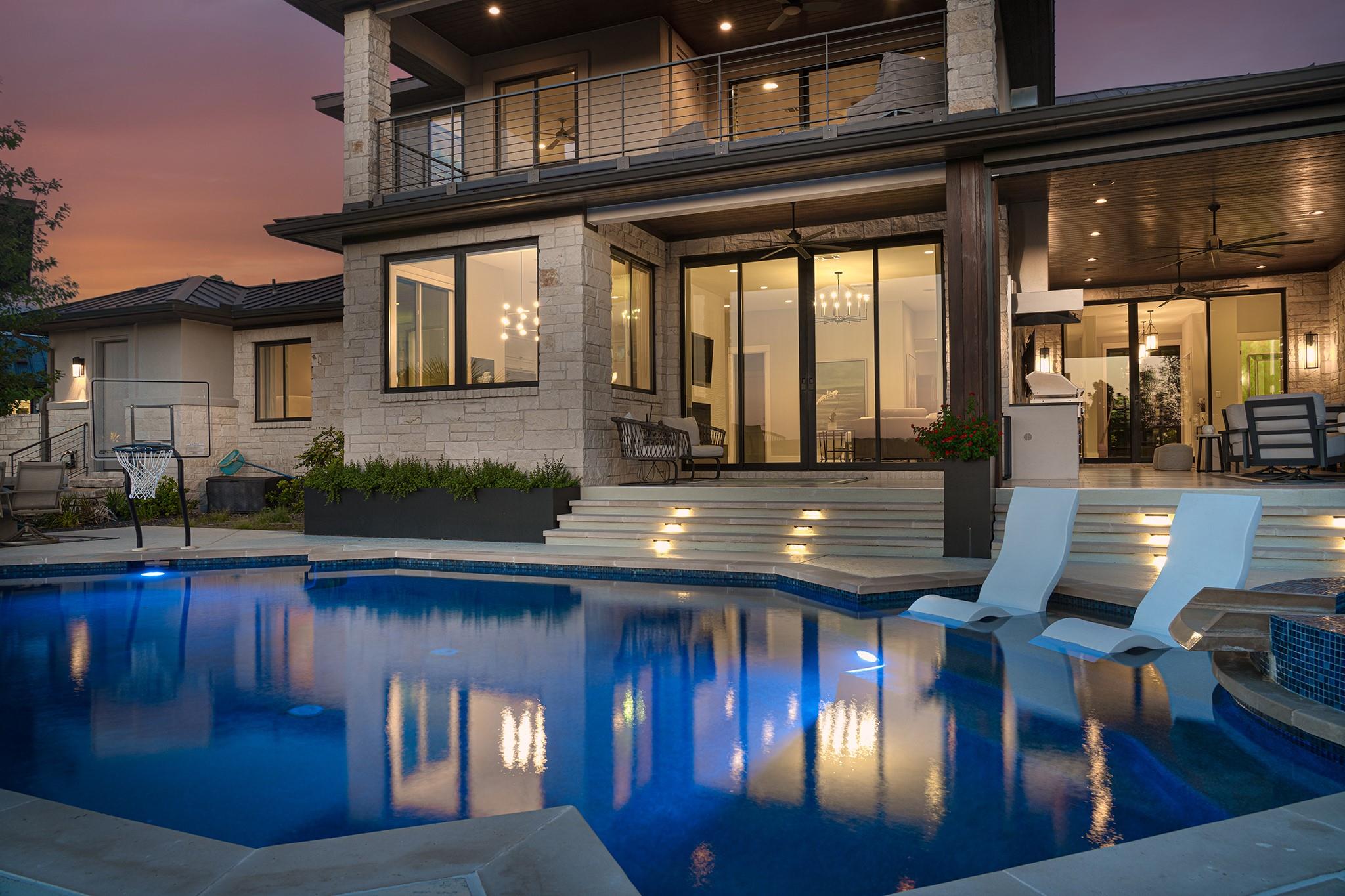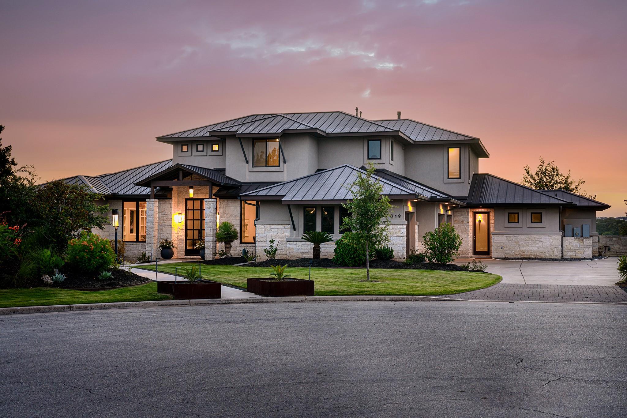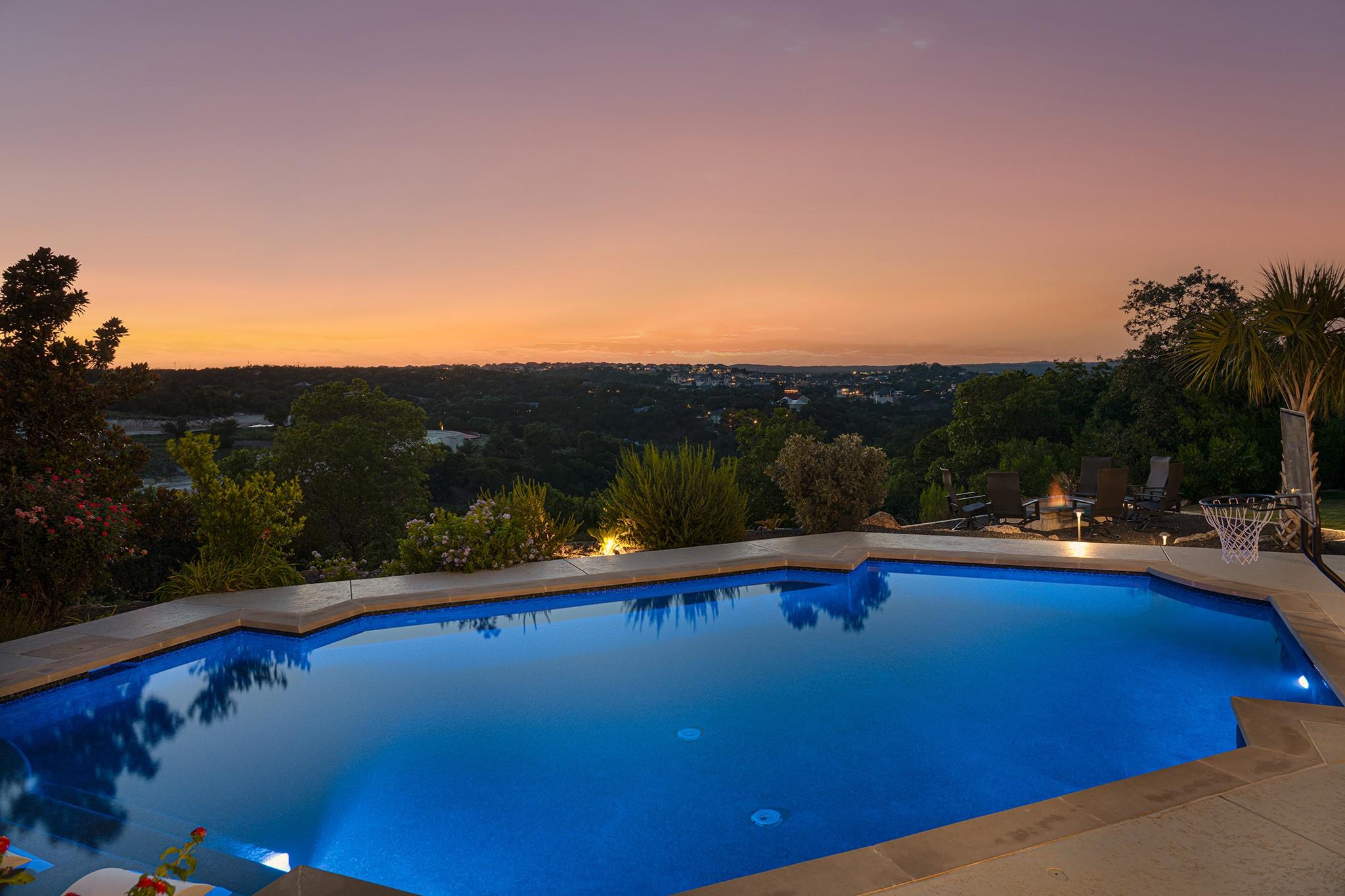 **Recently added $50K project retaining wall with mature plants to provide additional privacy from Las Brisas Estates across the greenbelt** Welcome to this custom built home that was made for entertaining and enjoying! Nestled in the highly sought after Canyonside section of Rough Hollow, this 1/2 acre lot is located at the back of a cul-de-sac. Enjoy stunning 180 degree hill country views from your private pool, hot tub and outdoor living space complete with full outdoor kitchen, multiple seating areas with fireplaces and automatic screens. And don't forget about sitting around the fire pit – perfect for watching unforgettable sunsets! Inside you'll find over 5,000 square feet of luxurious living space featuring 5 bedrooms and 4.5 bathrooms. The Chefs gourmet kitchen is sure to please any cook with top of the line appliances while the wet bar adjacent to the dining room and living room will make hosting guests a breeze. The primary bedroom comes complete with spa like bathroom that includes dual vanities, huge walk in shower, huge walk in closet AND a separate gym! Plus there's an additional guest room with ensuite bathroom on the main level conveniently located near the pool area for extra privacy when needed. Upstairs features game room that opens to a balcony offering breathtaking views as far as they eye can see! 1 bedroom with a private bathroom and 2 bedrooms that share a Jack and Jill bathroom with private vanities, and an organized storage room complete the upstairs space. With designer finishes throughout the home, you are sure to fall in love. This beautiful home has everything you need to enjoy life every day - don't miss out on making it yours today!