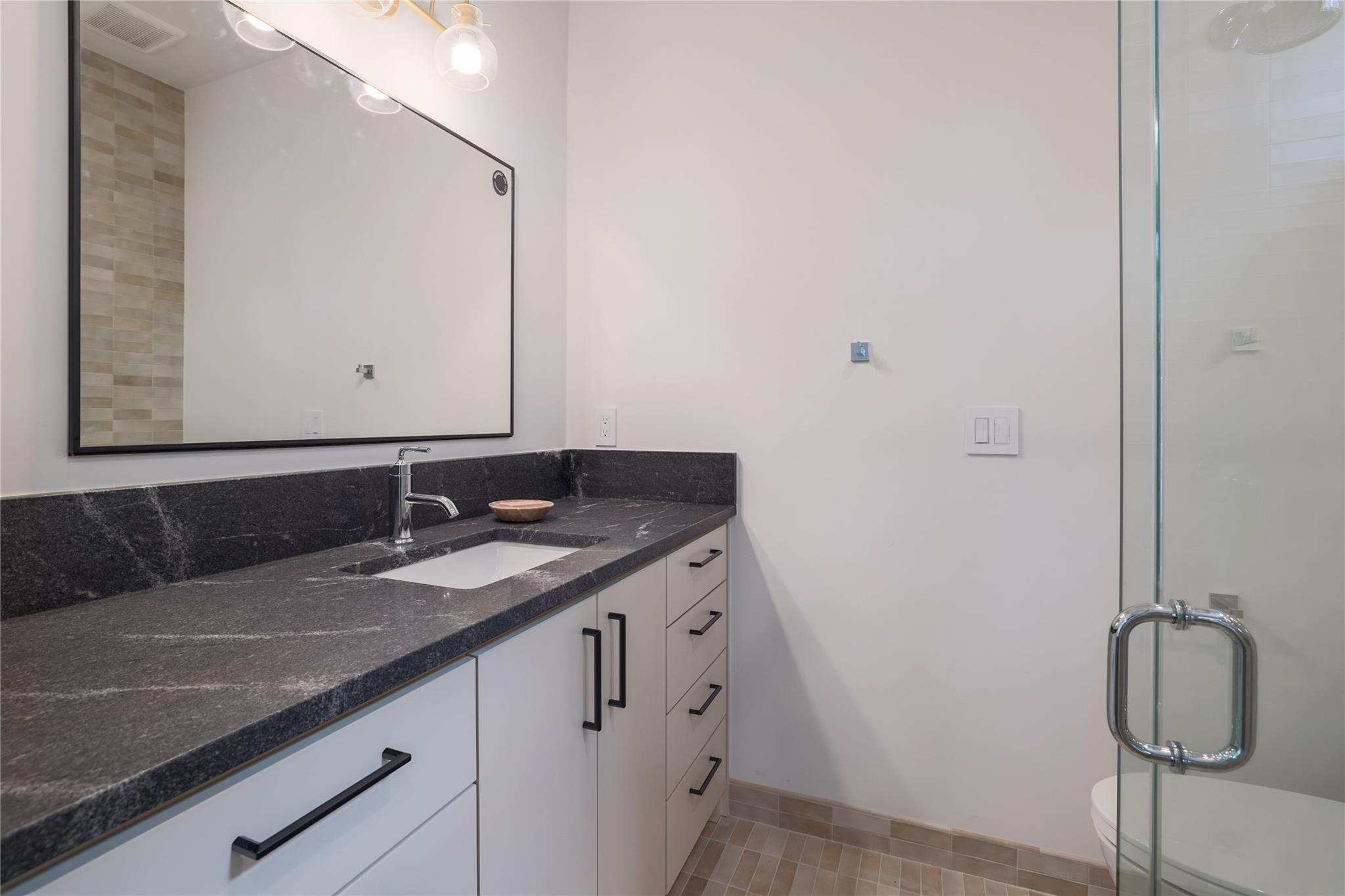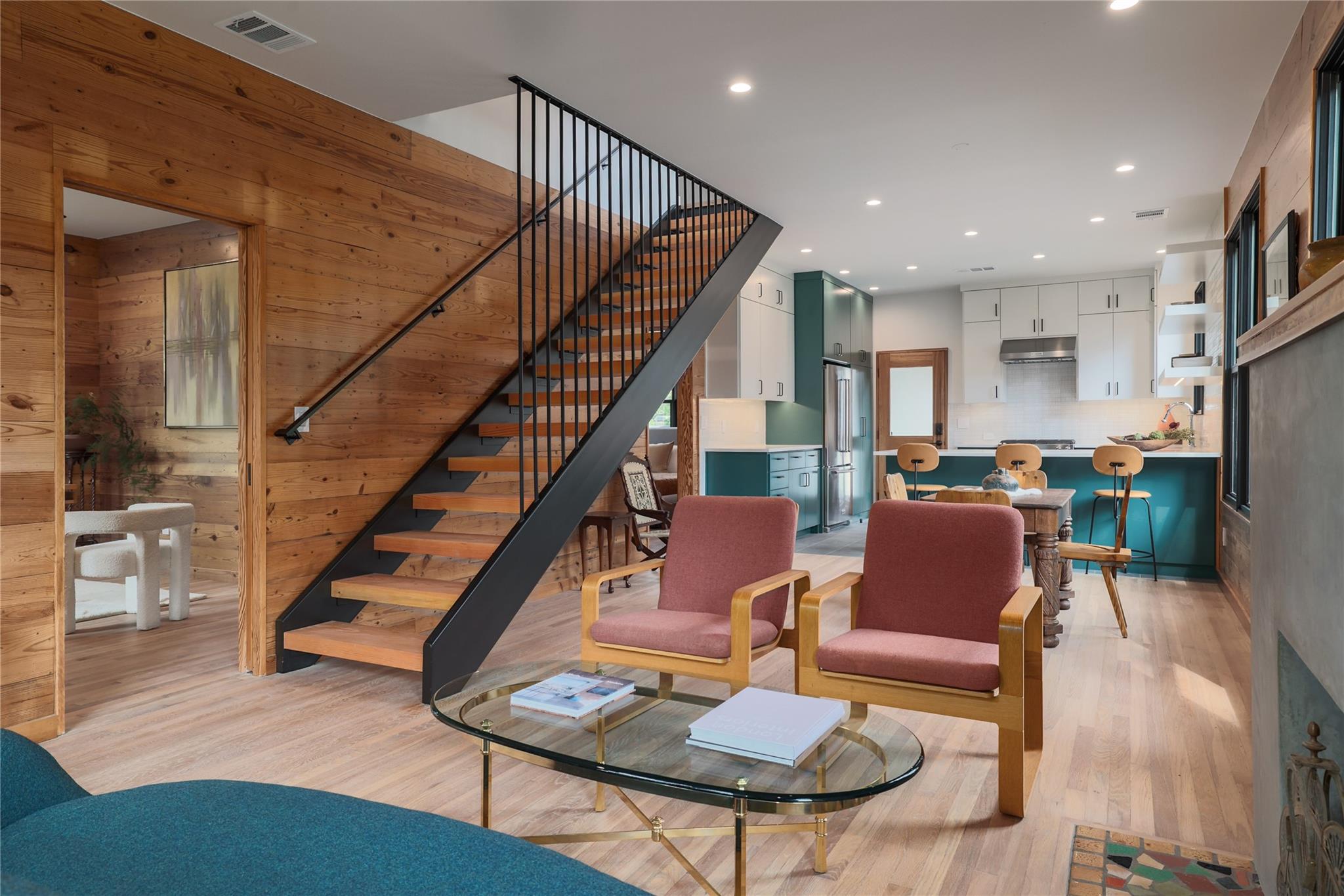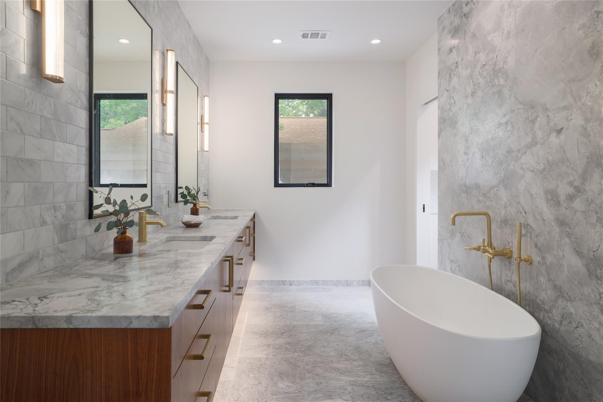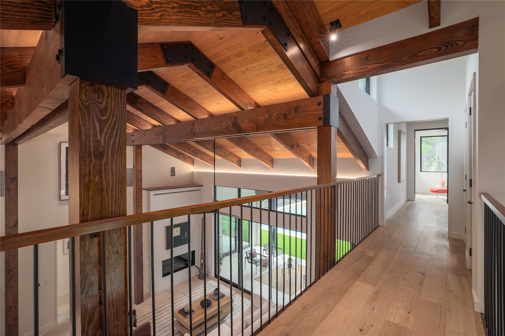 A stunning collaboration between Black & Vernooy Architecture and Craig Parker of Homes by Parker, this luxury Zilker Compound is comprised of the original early 1930s Cottage (2/2) meticulously restored & remodeled, a New-Build Main Home (3/3.5) with gorgeous Douglas Fir beams, a Pool House with a full bath and cathedral steel trusses, plus a heated pool & spa! The main home's kitchen is an entertainer’s dream, featuring an oversized walnut island, Miele appliances, satin brass plumbing fixtures, & quartzite countertops. Cathedral wooden ceilings adorn the living spaces, while a three-panel sliding door connects the interior to an expansive covered porch overlooking the pool & serene backyard. The primary suite is on the main floor, with a standalone tub in front of a leather-finished quartzite wall, an oversized walnut vanity and a marble floor. The upper floor includes two private bedrooms with ensuite baths, an additional living space, and a light-filled sun porch. Surrounded by heritage oaks, the restored cottage connects the property to its original roots. Updates include a new kitchen, refinished original pine shiplap, oak wood flooring, doors & fireplace, stackable washer/dryer closet & all-new HVAC, plumbing, electrical & insulation, plus an added secluded loft+full bathroom. A horizontal cedar fence with steel posts enclose the compound with an automatic sliding carport gate & 3 sliding pedestrian entrances. Additional compound amenities include high-efficiency HVAC zoned systems, Nest thermostats and Lutron smart lighting controls, Ring cameras, four circulating Navian tankless hot water heaters, new engineered reinforced suspension concrete foundations, and a 58 KW Kohler liquid-cooled quiet generator, large enough to power all three buildings. With fastidious attention to detail, this spectacular property offers a unique blend of modern luxury and historic charm with endless privacy, providing the ultimate Austin living experience.