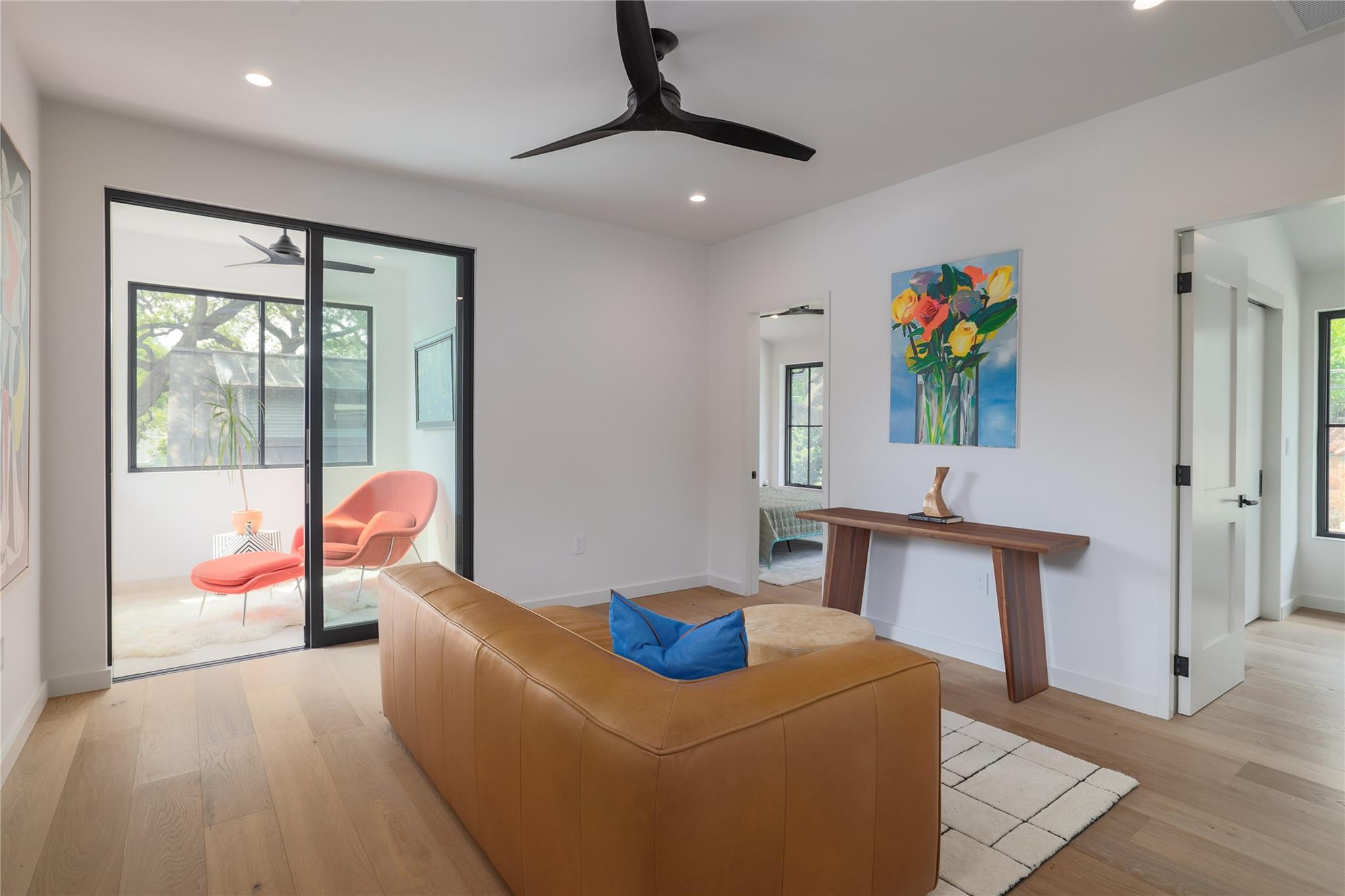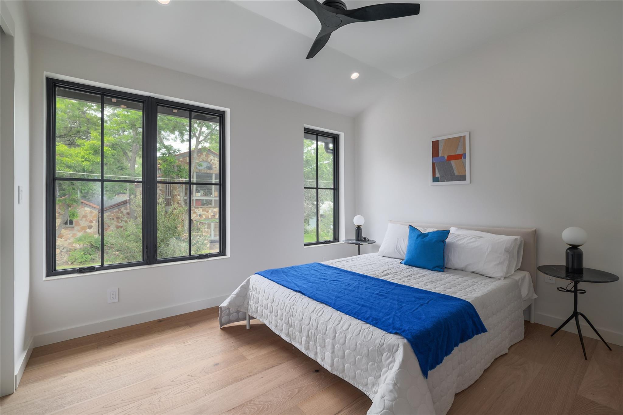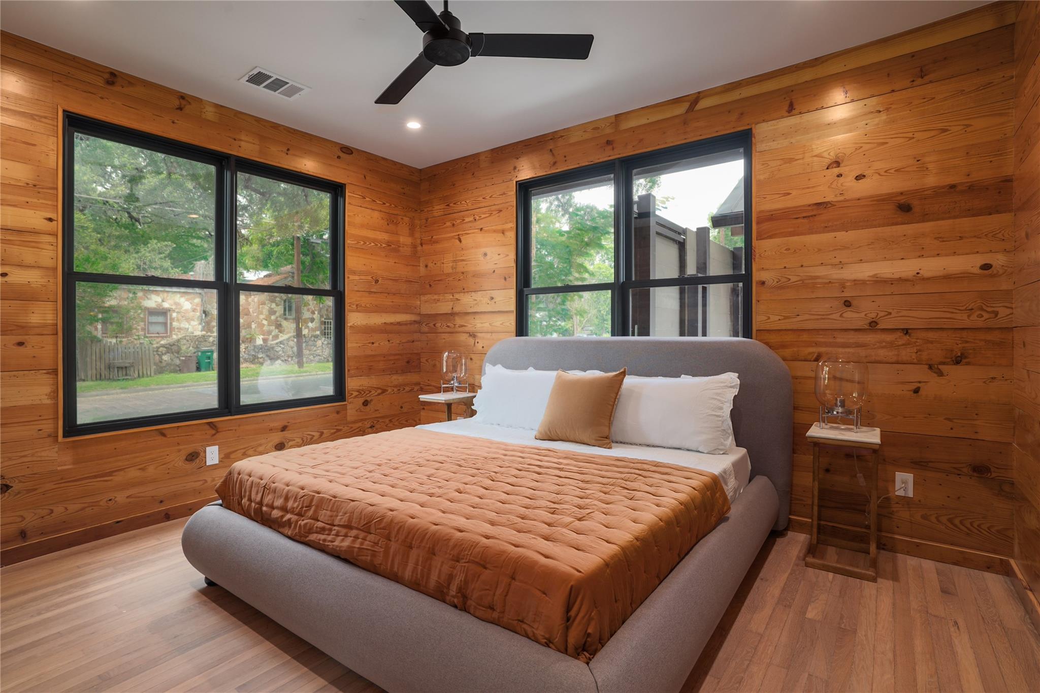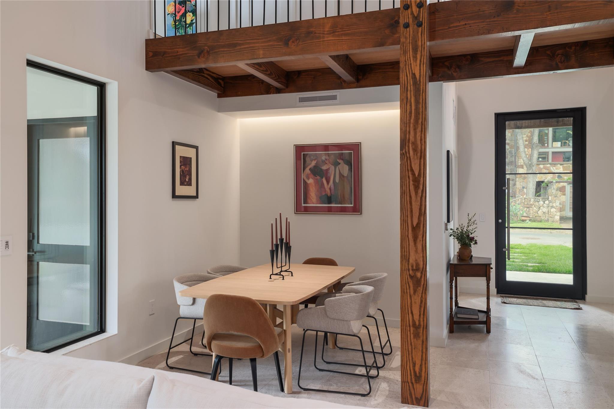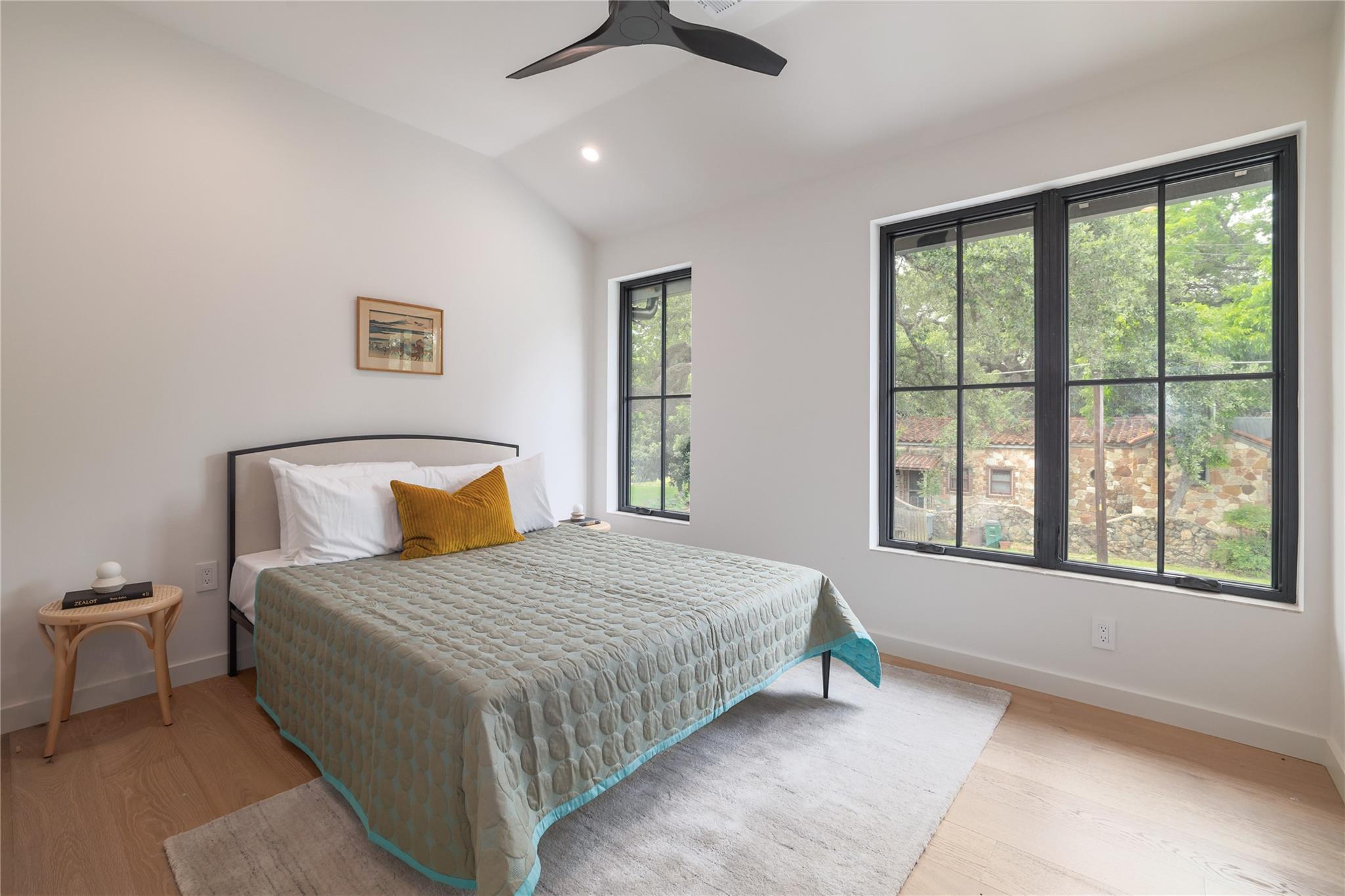 A stunning collaboration between Black & Vernooy Architecture and Craig Parker of Homes by Parker, this luxury Zilker Compound is comprised of the original early 1930s Cottage (2/2) meticulously restored & remodeled, a New-Build Main Home (3/3.5) with gorgeous Douglas Fir beams, a Pool House with a full bath and cathedral steel trusses, plus a heated pool & spa! The main home's kitchen is an entertainer’s dream, featuring an oversized walnut island, Miele appliances, satin brass plumbing fixtures, & quartzite countertops. Cathedral wooden ceilings adorn the living spaces, while a three-panel sliding door connects the interior to an expansive covered porch overlooking the pool & serene backyard. The primary suite is on the main floor, with a standalone tub in front of a leather-finished quartzite wall, an oversized walnut vanity and a marble floor. The upper floor includes two private bedrooms with ensuite baths, an additional living space, and a light-filled sun porch. Surrounded by heritage oaks, the restored cottage connects the property to its original roots. Updates include a new kitchen, refinished original pine shiplap, oak wood flooring, doors & fireplace, stackable washer/dryer closet & all-new HVAC, plumbing, electrical & insulation, plus an added secluded loft+full bathroom. A horizontal cedar fence with steel posts enclose the compound with an automatic sliding carport gate & 3 sliding pedestrian entrances. Additional compound amenities include high-efficiency HVAC zoned systems, Nest thermostats and Lutron smart lighting controls, Ring cameras, four circulating Navian tankless hot water heaters, new engineered reinforced suspension concrete foundations, and a 58 KW Kohler liquid-cooled quiet generator, large enough to power all three buildings. With fastidious attention to detail, this spectacular property offers a unique blend of modern luxury and historic charm with endless privacy, providing the ultimate Austin living experience.