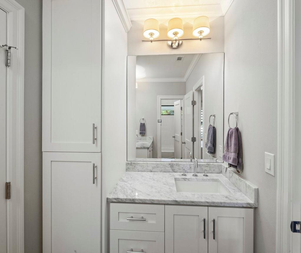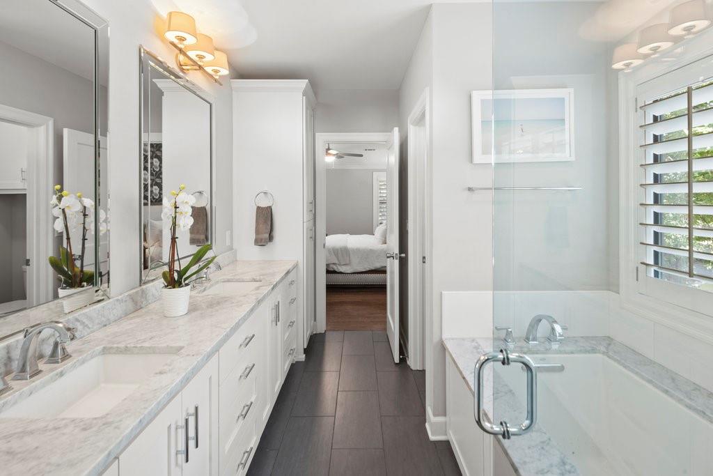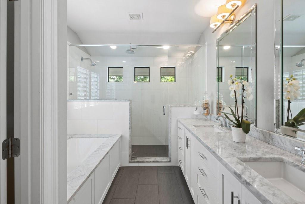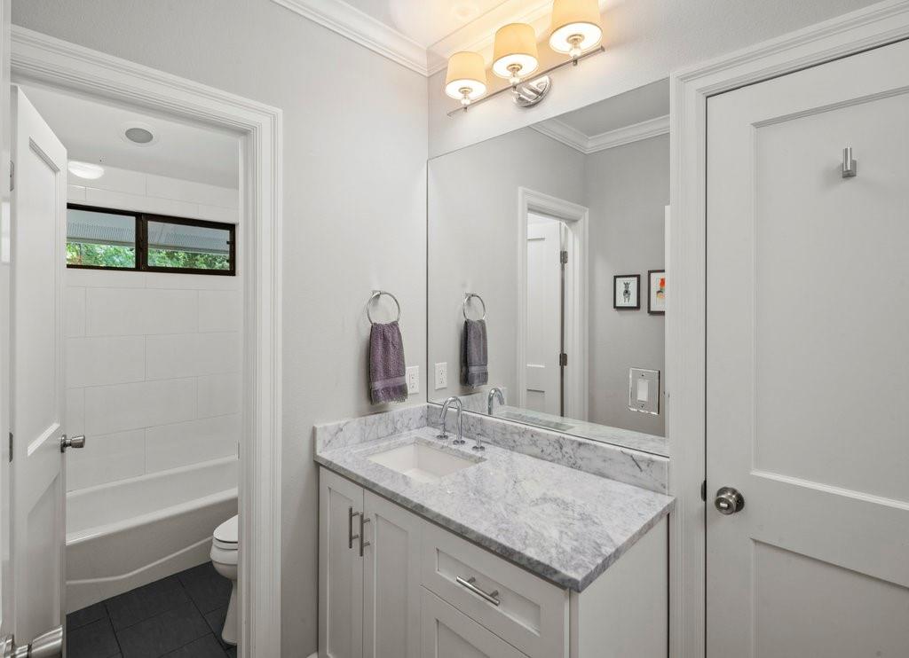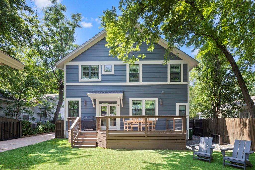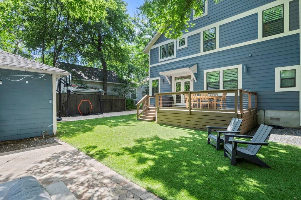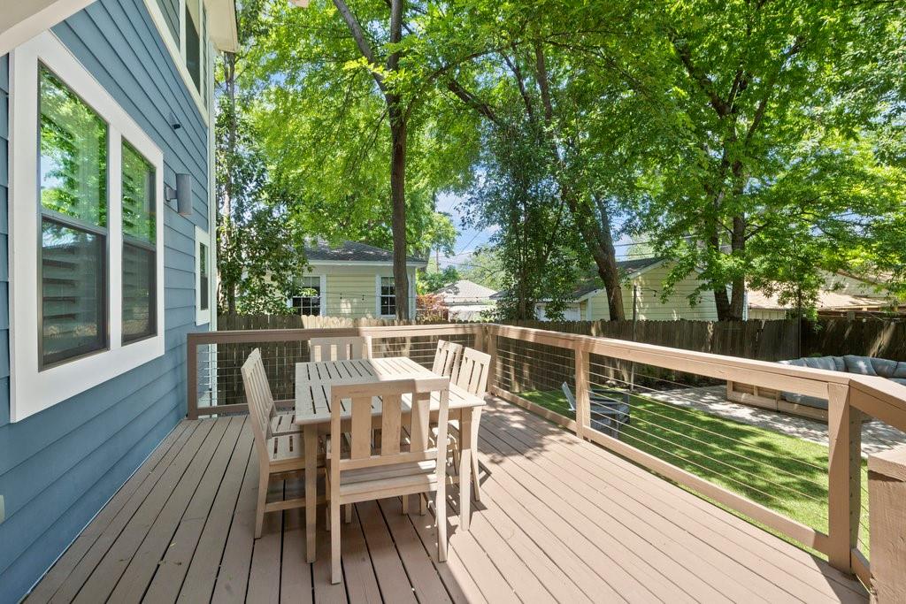 Located in the heart of Brykerwoods, the current owners remodeled and added the second story in 2013. The home has an open floorplan with the original hardwood floors throughout. The living room is open to the kitchen. This large kitchen showcases beautiful Carrara Marble counters and includes an upgraded KitchenAid appliance package including stainless commercial gas range, double ovens, refrigerator, wine or beverage cooler and a walk in pantry. The large island is perfect for a second dining area. Also on the first floor is a large dining room and the first of 4 bedrooms which has its own on-suite full bathroom. Hardwoods continue up the stairs where there are 3 additional bedrooms. The spacious Primary bath has a double vanity, bubble tub and oversized walk in shower. The primary suite has a large walk in closet and sitting area. There are 2 addition bedrooms upstairs with a shared bath. The backyard is designed for entertaining with a deck and turfed yard leading to a large outdoor living area, firepit built in grilling station with a fridge and TV. There is an irrigation system that services the frontyard and all of the landscaping. The location is prime for walking to restaurants such as Tinyboxwoods, Olive & June and Kerby Lane Cafe. Central Market is also right around the corner.