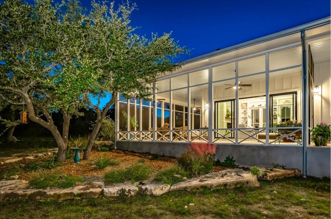 WOW!! Come see this elegant WATERFRONT estate in Wimberley, TX. This beautiful Modern Farmhouse was a 2019 Max Award Finalist! Its unique design, exceptional details, and custom craftsmanship welcome you to this serene home. This estate consists of a main house of approximately 3055 sq ft and a guest house of approximately 1439 sq ft, all on 8.45 lakefront acres on Mustang Valley Lake. Some of the highlights found in the main house include custom light fixtures, exposed beams, handmade tiles from Tabarka Studios, and a gorgeous kitchen island with a cherry wood top. The stunning screen porch will make dining al fresco a nightly pleasure! The guest house continues with the same fine materials – wood-grain tile floors, granite and quartz counters, and expansive windows. The balcony deck is a great place to enjoy the impressive lake views, birdwatch, and relax! (See attached extensive feature list for more details on materials and construction) Roam around the acres, take in the serenity of nature, harvest veggies from your organic garden, and then grab a picnic down at your own gazebo lake-side! While down at the lake, throw in a line and catch a trophy bass! Enjoy Mustang Valley amenities that include a tennis court, playscape, pavilion, and walking / biking paths. Excellent opportunity for this property to become an equestrian estate with plenty of room for a barn. AG EXEMPTION in place!