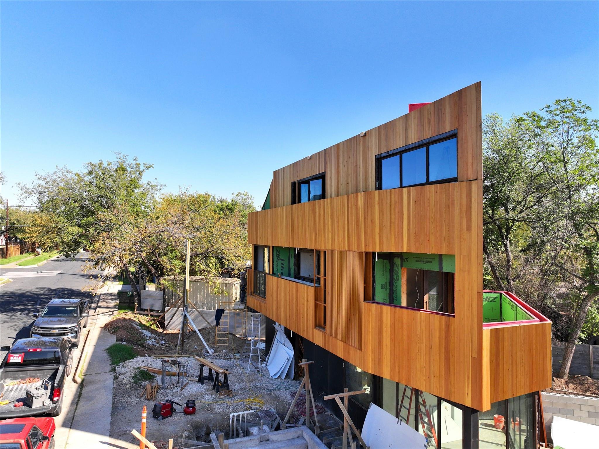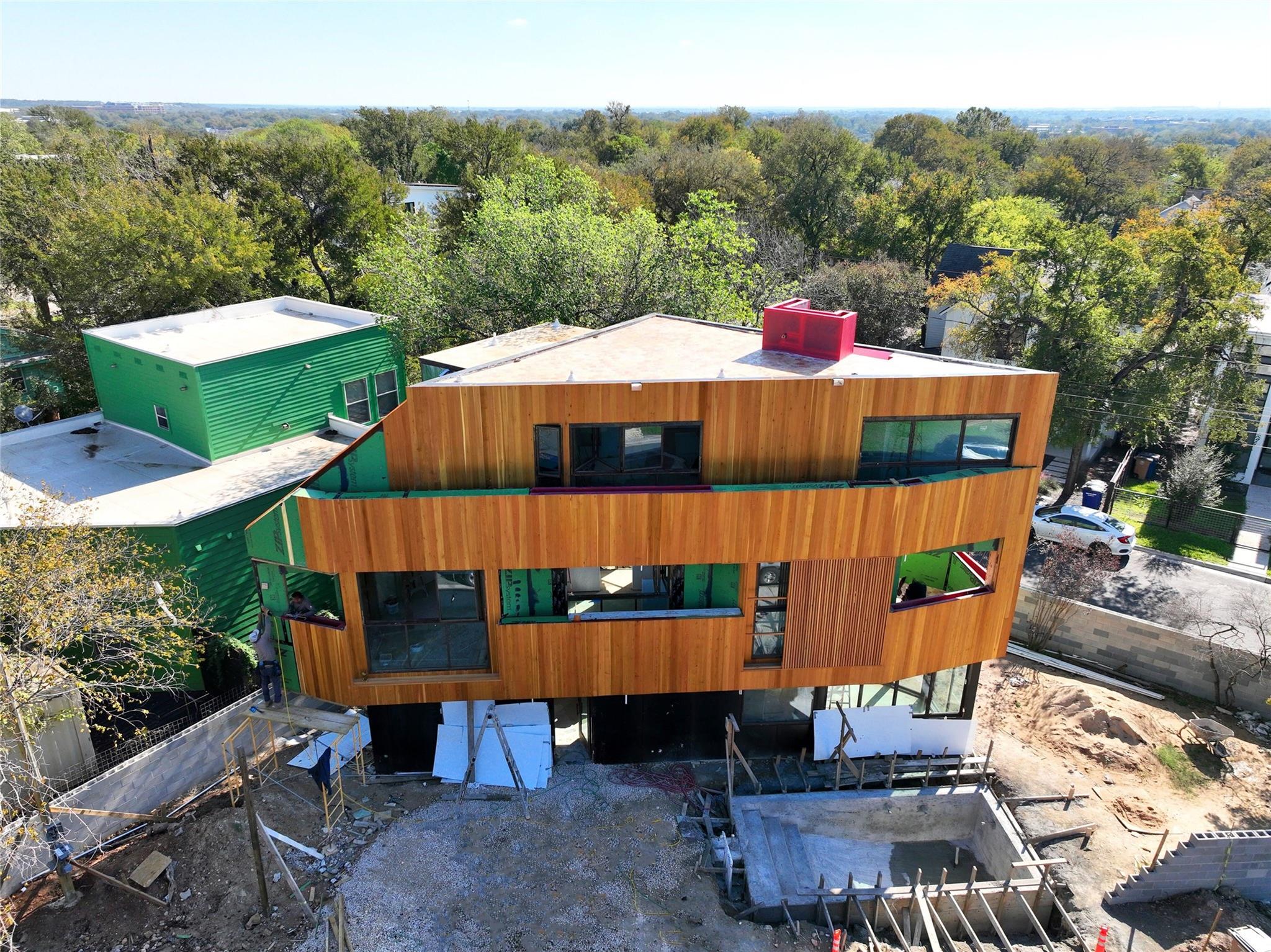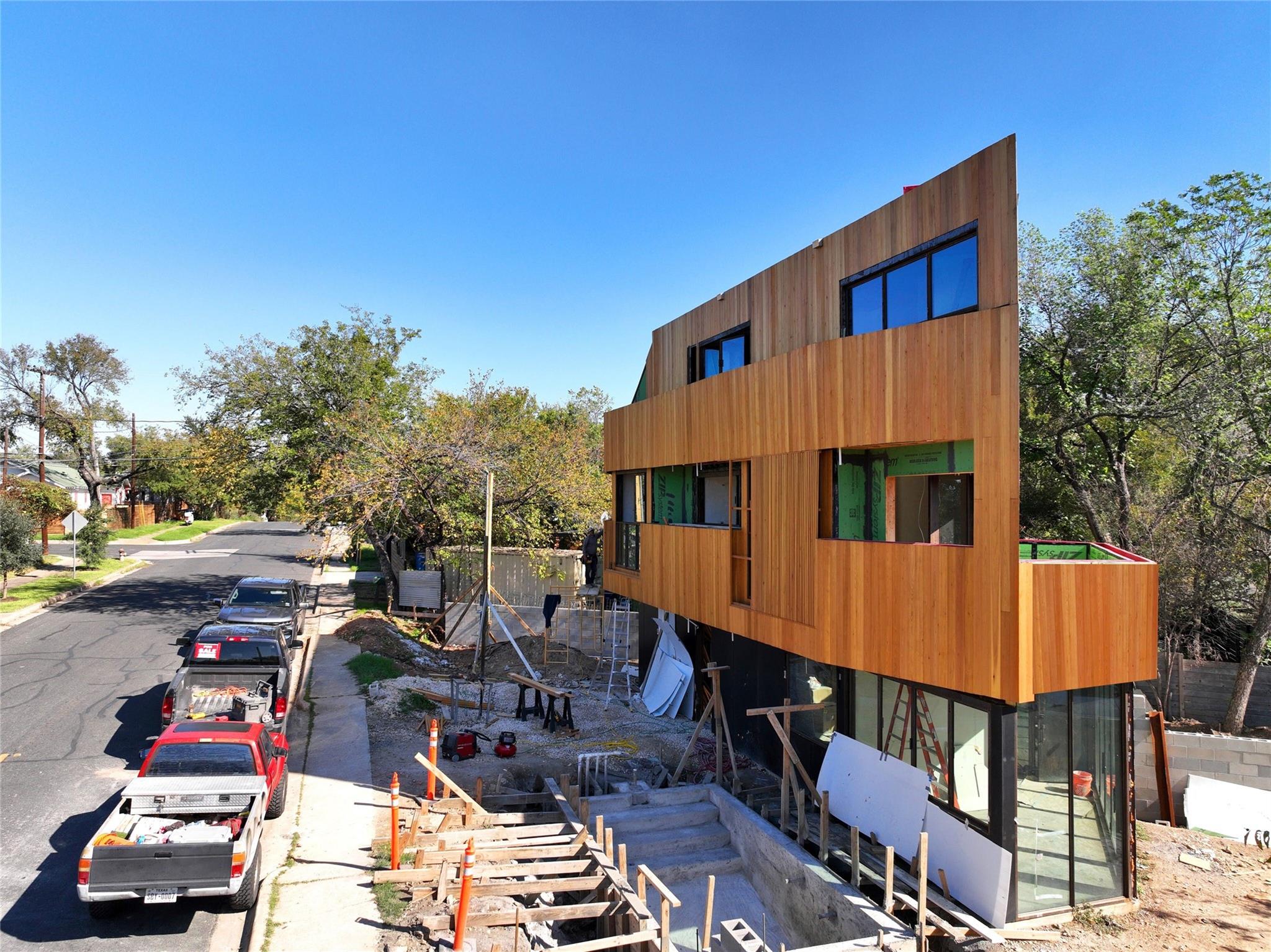 Welcome to your East Austin Tulum-inspired masterpiece, where innovation meets tranquility in vibrant 78702. This 3-level gem spans 2,400 sqft, topped with a rooftop terrace boasting city skyline views. Ideal for thinkers, doers, and influencers seeking style and substance, this rare 3-bed, 2.5-bath residence offers a curated blend of materials, from polished concrete to cedar wood. The kitchen features an Italian gas cooktop, and the primary bedroom includes a 6-foot concrete soaker tub. This home blends design innovation with technological marvels, boasting expansive windows, a custom steel staircase, Alexa-powered lighting, and a simpli safe security system. Outside, hot-rolled steel panels, clear coat western cedar, and a cinderblock fence harmonize with the lushly landscaped yard featuring a plunge pool.