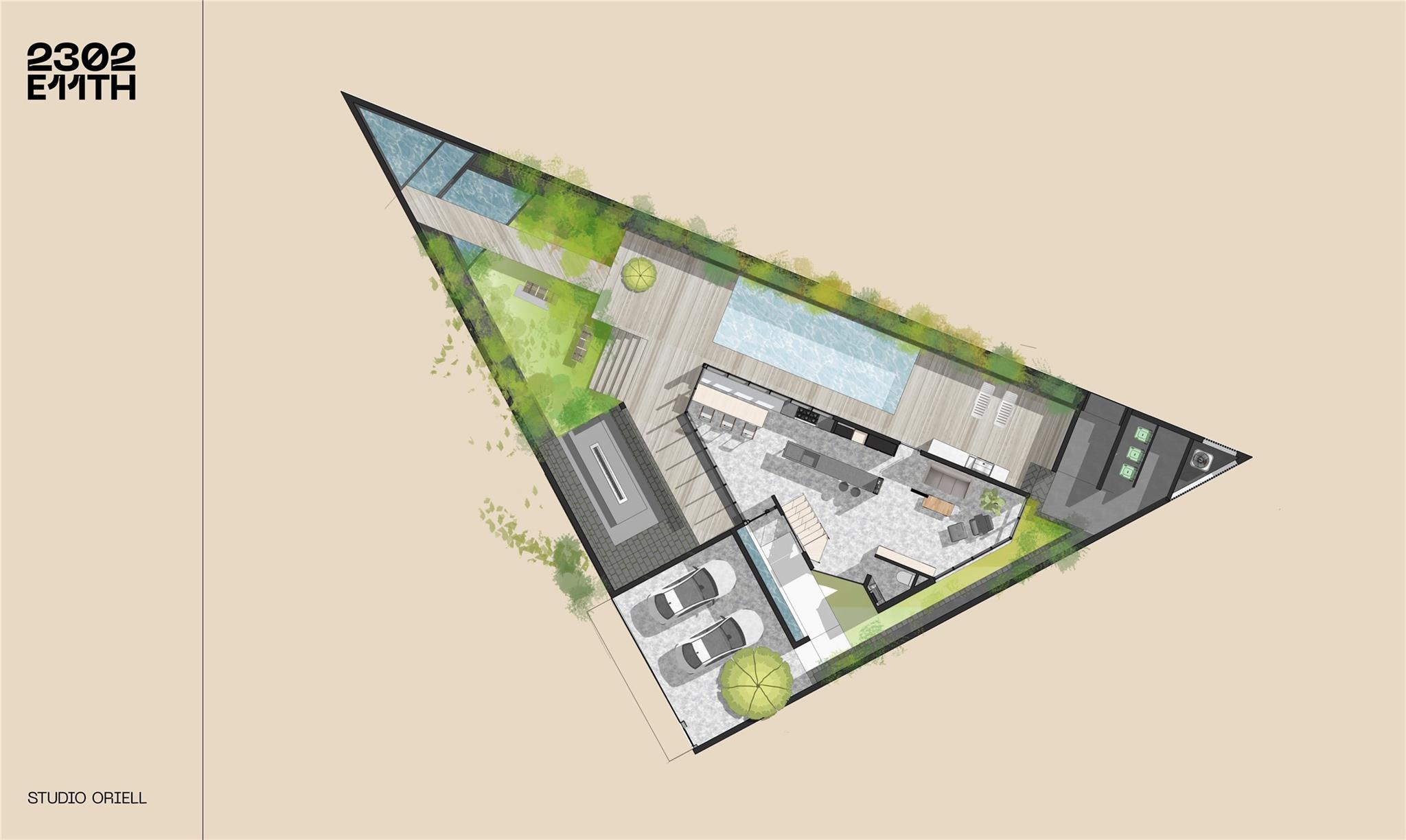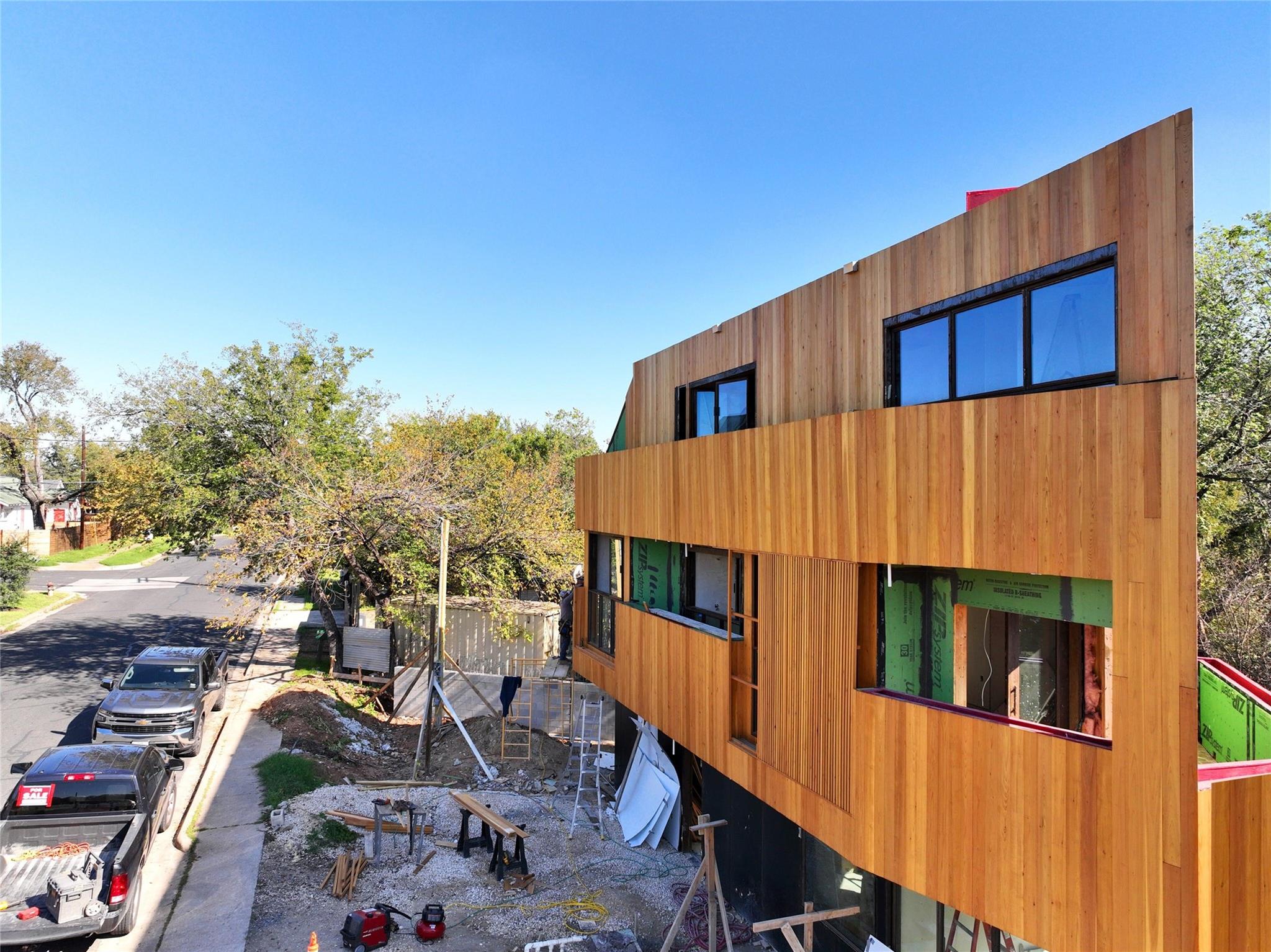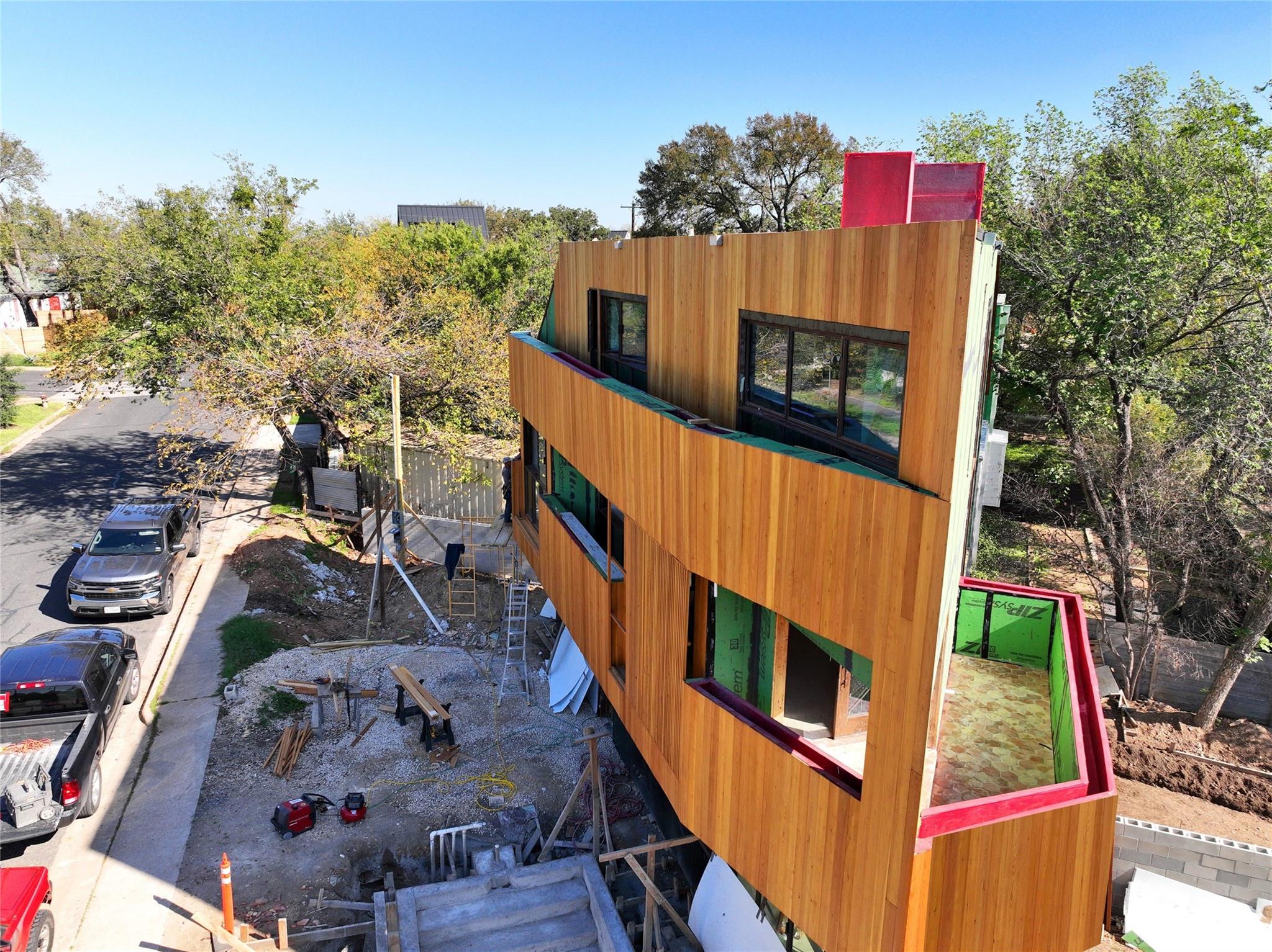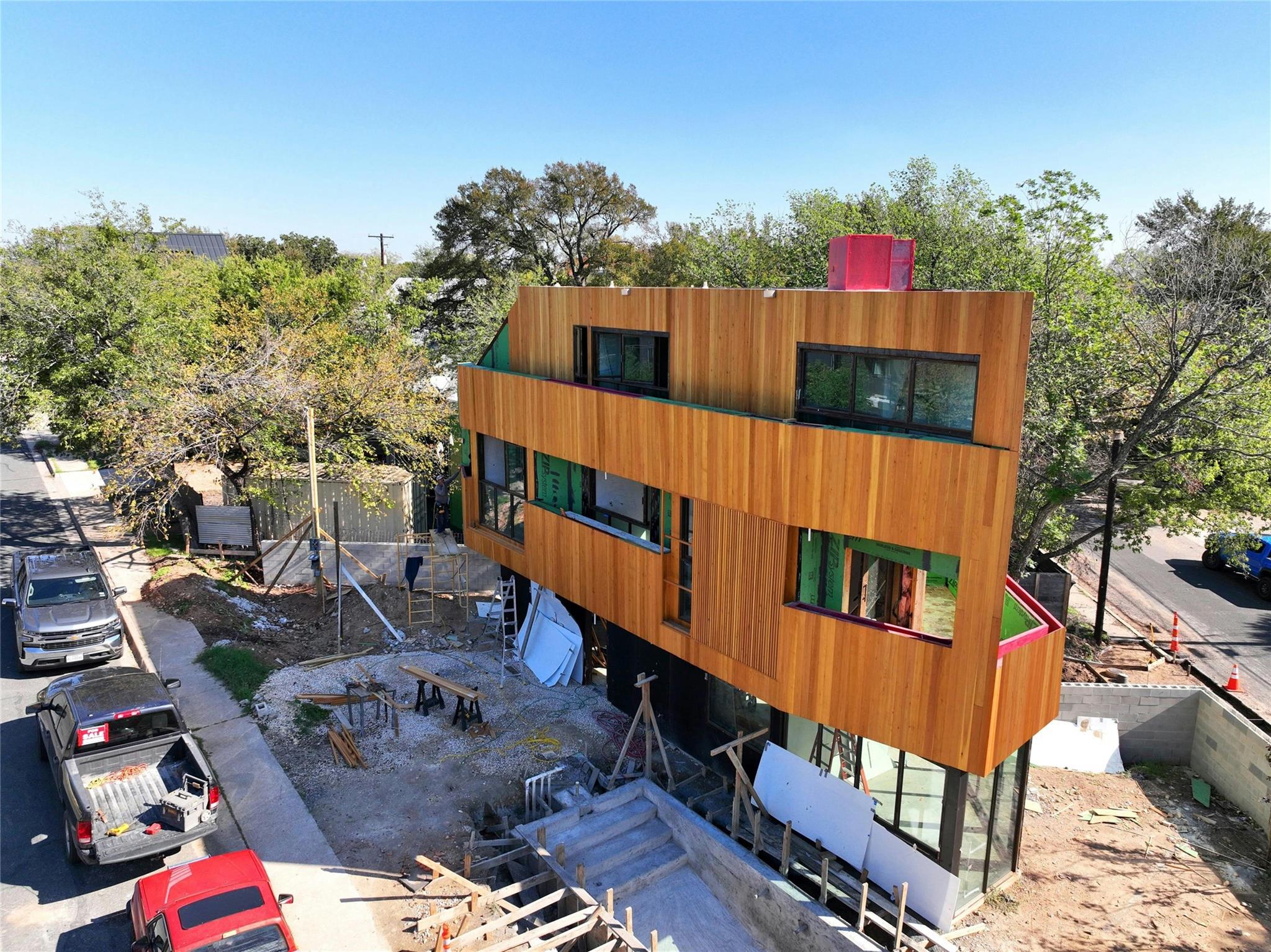 Welcome to your East Austin Tulum-inspired masterpiece, where innovation meets tranquility in vibrant 78702. This 3-level gem spans 2,400 sqft, topped with a rooftop terrace boasting city skyline views. Ideal for thinkers, doers, and influencers seeking style and substance, this rare 3-bed, 2.5-bath residence offers a curated blend of materials, from polished concrete to cedar wood. The kitchen features an Italian gas cooktop, and the primary bedroom includes a 6-foot concrete soaker tub. This home blends design innovation with technological marvels, boasting expansive windows, a custom steel staircase, Alexa-powered lighting, and a simpli safe security system. Outside, hot-rolled steel panels, clear coat western cedar, and a cinderblock fence harmonize with the lushly landscaped yard featuring a plunge pool.