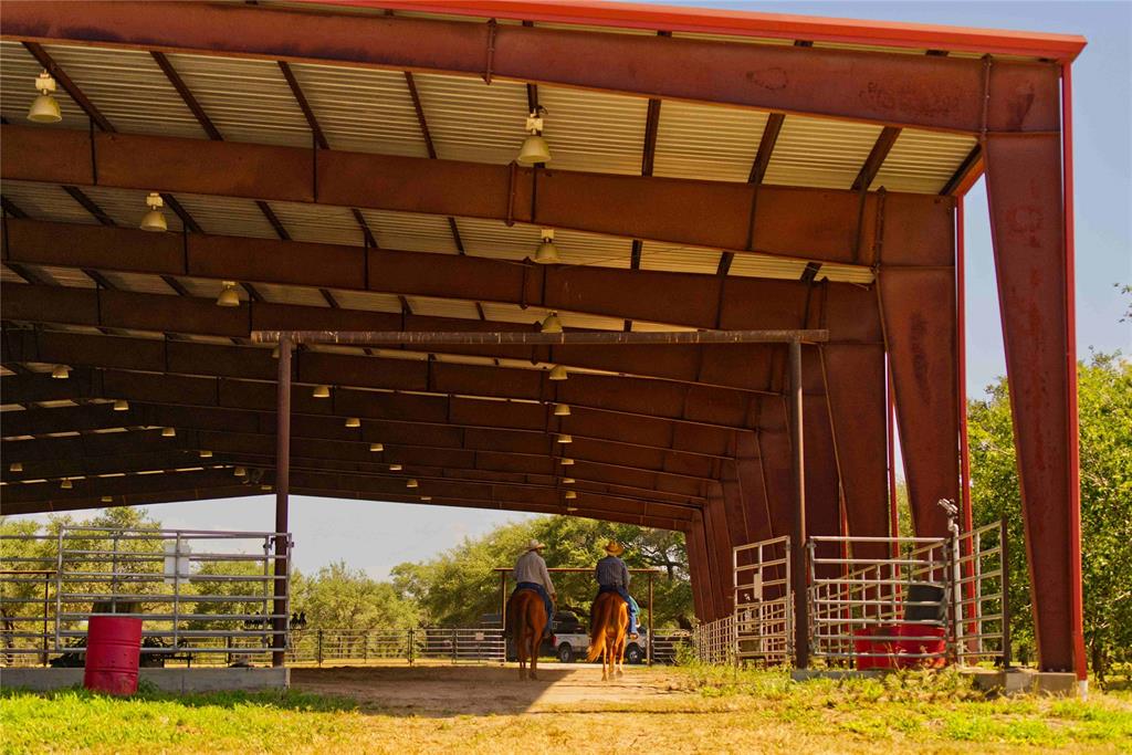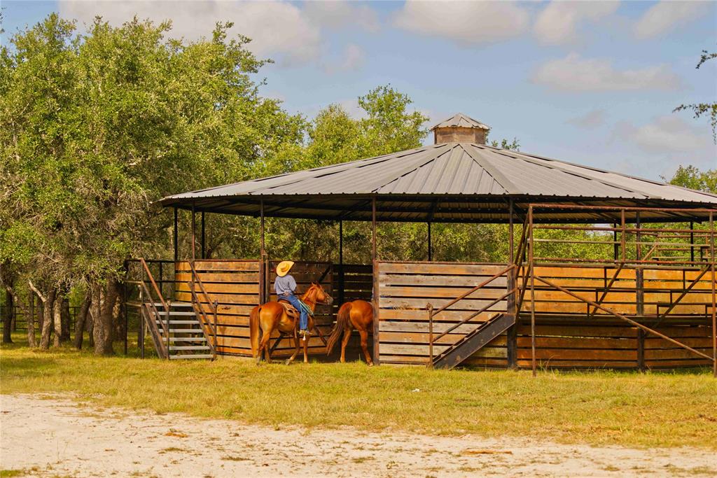 The covered riding arena consists of a 250 by 150 space and even has a concert style stage and sound system that would be great for concerts or private events. There are also 12 horse trailer/RV hook ups. The Horse Barn/Stables features 12 top of the line horse stalls, an air-conditioned tack room with a bathroom, and a hay loft. Covered round pen with stadium style seating.