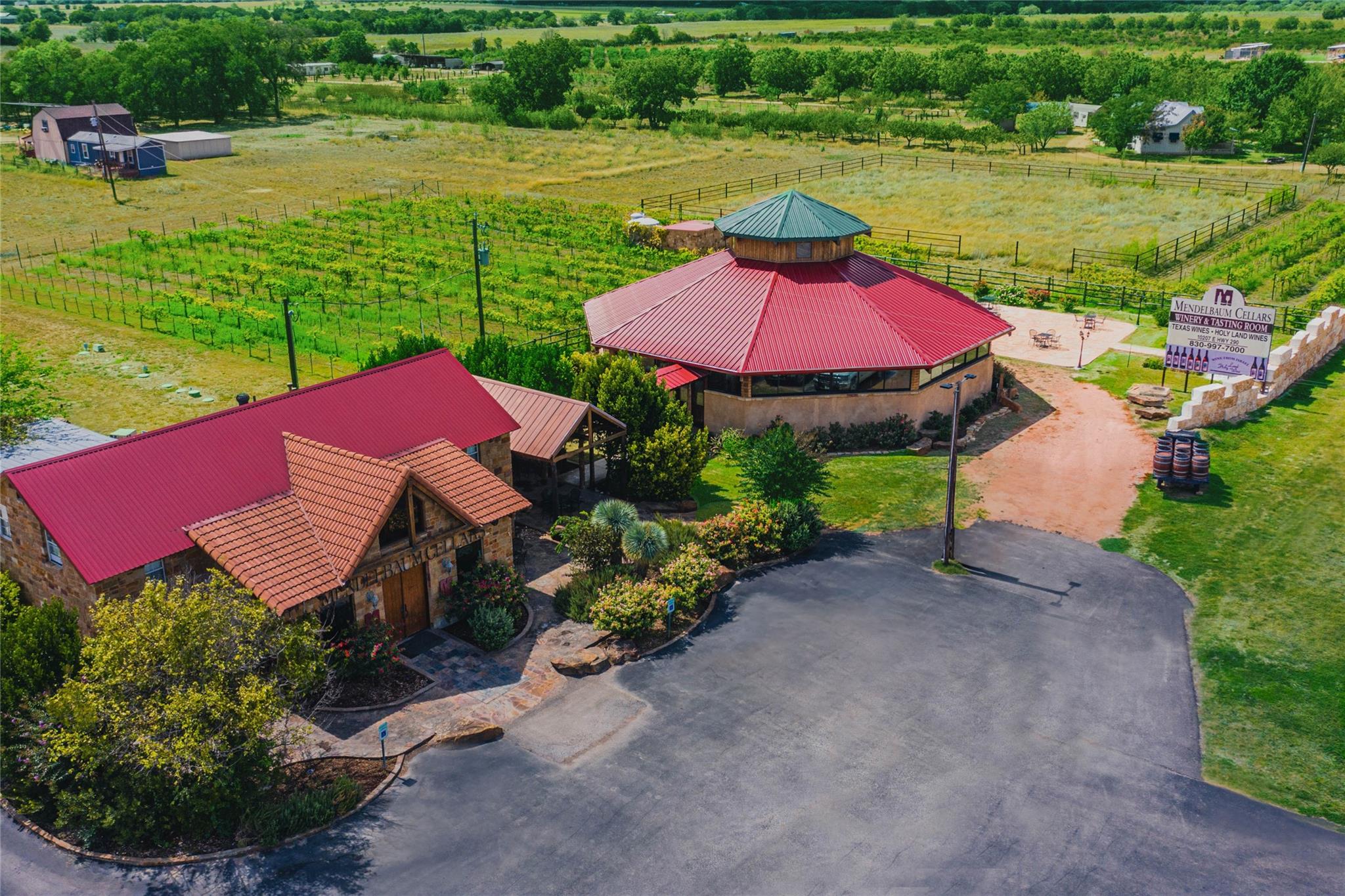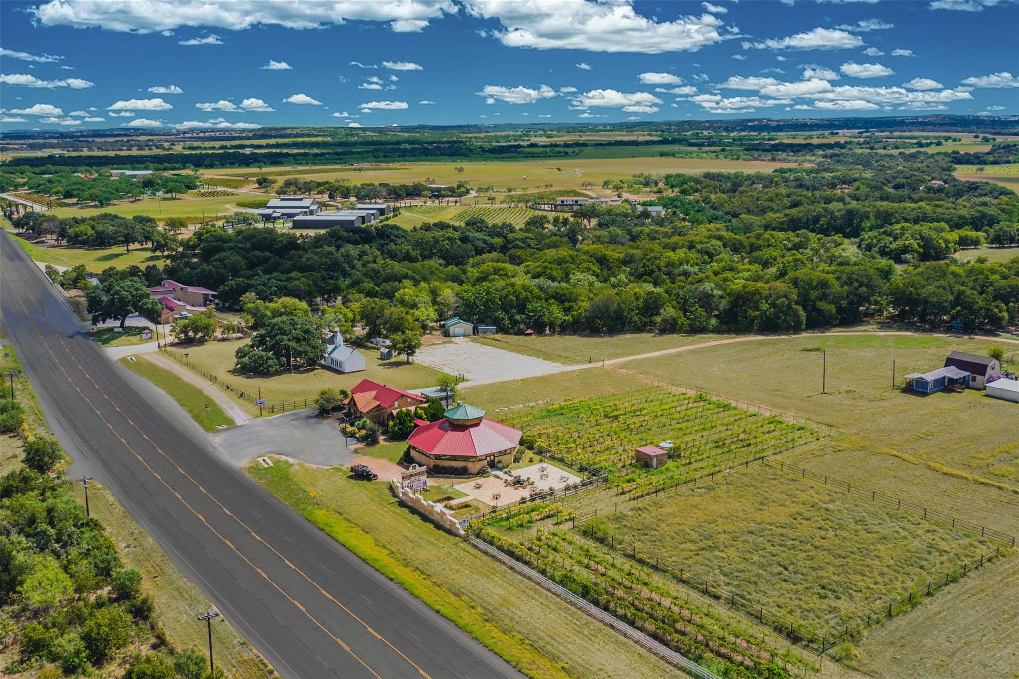 Welcome to TOSCANA CUPOLA ESTATE, the quintessential Texas jewel nestled amidst the picturesque Texas Hill Country, where nature's bounty is complemented by a touch of Tuscan elegance, lies an enigmatic 13.9±-ac estate of vineyards, winerooms, and cabinyards that transports you to the heart of the Old-World. This enchanting estate, graced with Tuscan-inspired architecture, is a living testament to the harmonious fusion of Texan terroir and Italian tradition. ESTATE OVERVIEW This prime 13.9-acre property, part of the prestigious Texas Hill Country Wine Trail, boasts 500’± of US Hwy 290 frontage with 1-billboard on Hwy 290. Approximately 12.5± acres are suitable for agricultural use, complete with a well-designed irrigation (encompassing the entire estate) system and coveted ag-exemption. The estate offers ample parking, including space for cars and buses, while fenced pastures are available for horses and livestock. Among the estate's many features, you'll find a meticulously crafted 2400-sf tasting room and a 3196-sf luxury venue, currently leased to the esteemed Mendelbaum Cellars. Two charming short-term rental apartments and a restored 2149-sf two-story historical dressmaking shop add to the estate's allure. Storage facilities and outbuildings provide practical utility. The property is well-equipped with a 200 GPM well, a stock tank, and two septic systems (one conventional and one state-licensed commercial system). Located catty-adjacent to Jellystone Park Camping Resort, adjoins Sereno Ruscello Estate, and in close proximity to Grape Creek Vineyards, this estate offers unparalleled growth potential. This estate embodies the epitome of Texas wine country living. Ag-exemption in place, additional acreage, winery and cabins available. NOTE: OFFERING FOR LAND & IMPROVEMENTS ONLY-BUSINESS NOT FOR SALE.