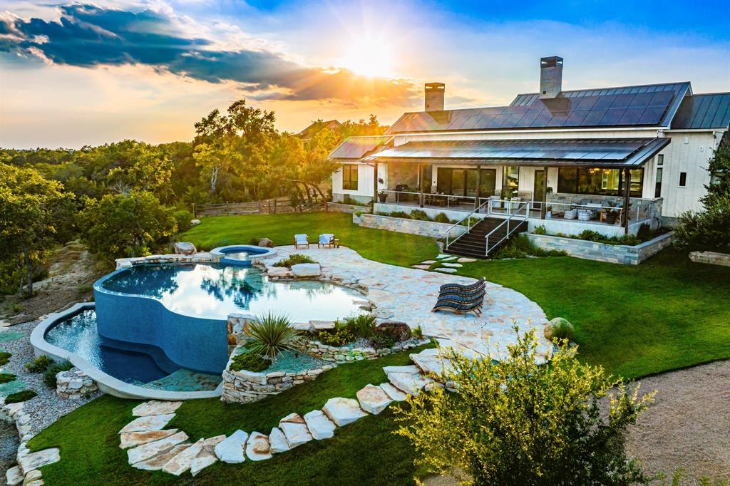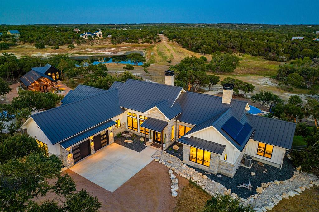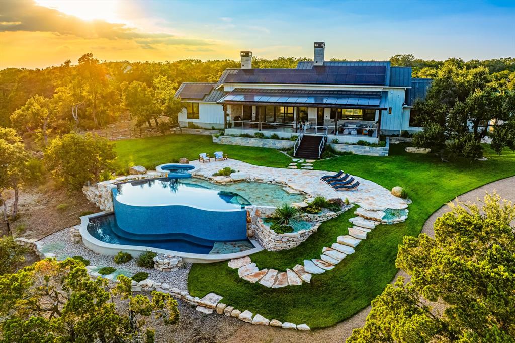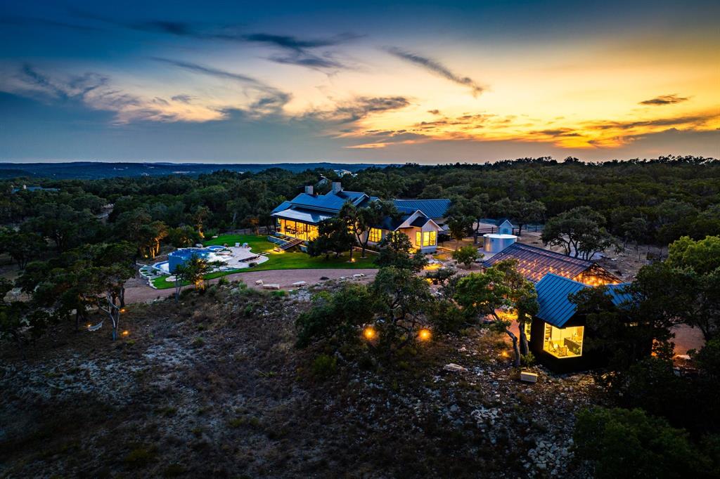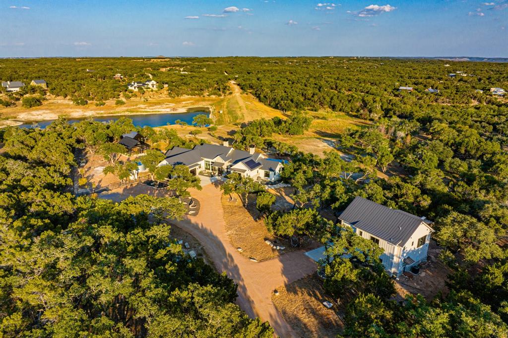 This property is the epitome of luxury living in the heart of the Texas Hill Country. The property offers the best of both worlds with a total combined 4,540 sqft of living pace, and 5 bedrooms 7 baths between the immaculate hill-top home, guest home, and a 375 sqft detached office, all with an expansive view of the private lake. The property also boasts a custom designed two-level infinity edge pool and hot-tub inspired by the flowing springs at Jacob’s Well, custom greenhouse, large off-grid solar system, and rainwater collection, on 15+ sprawling acres surrounded by nature, wildlife, and the serenity that comes with country living. No expense was spared on the improvements added to this property. The level of detail, craftsmanship, placement & attention to detail in the design is truly impressive.