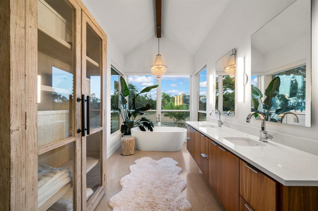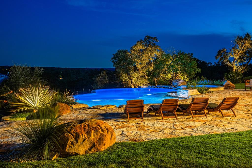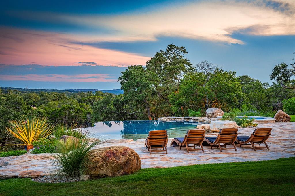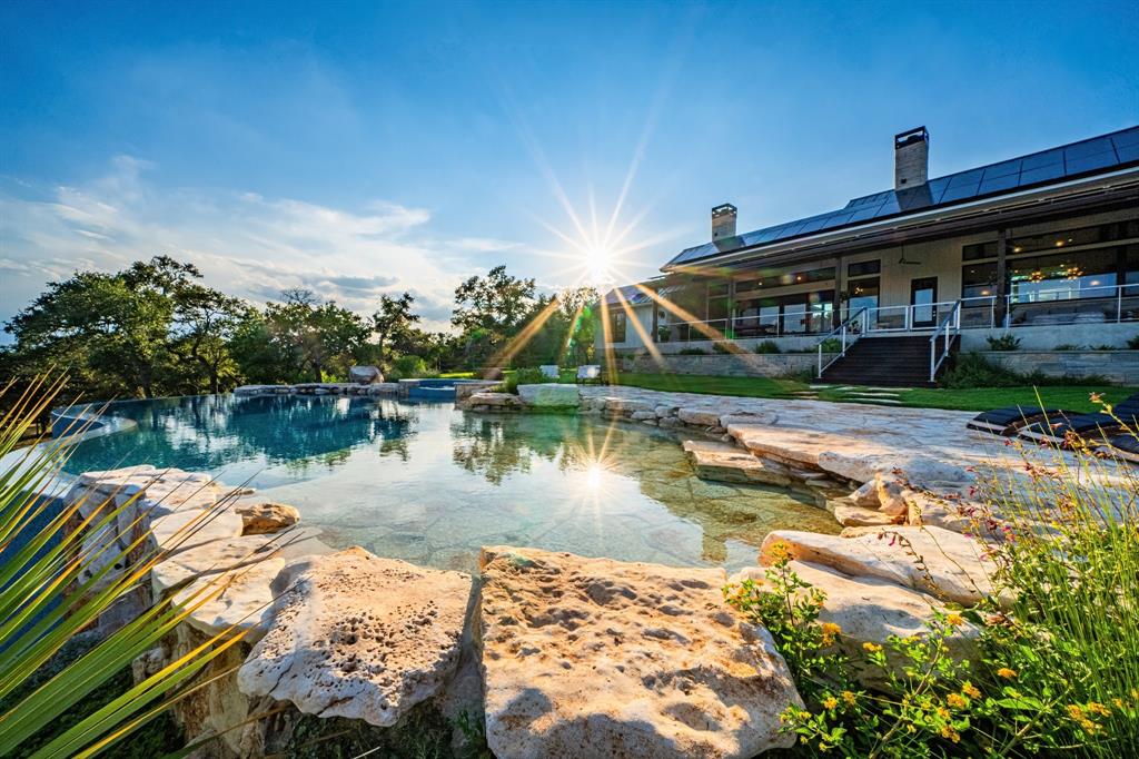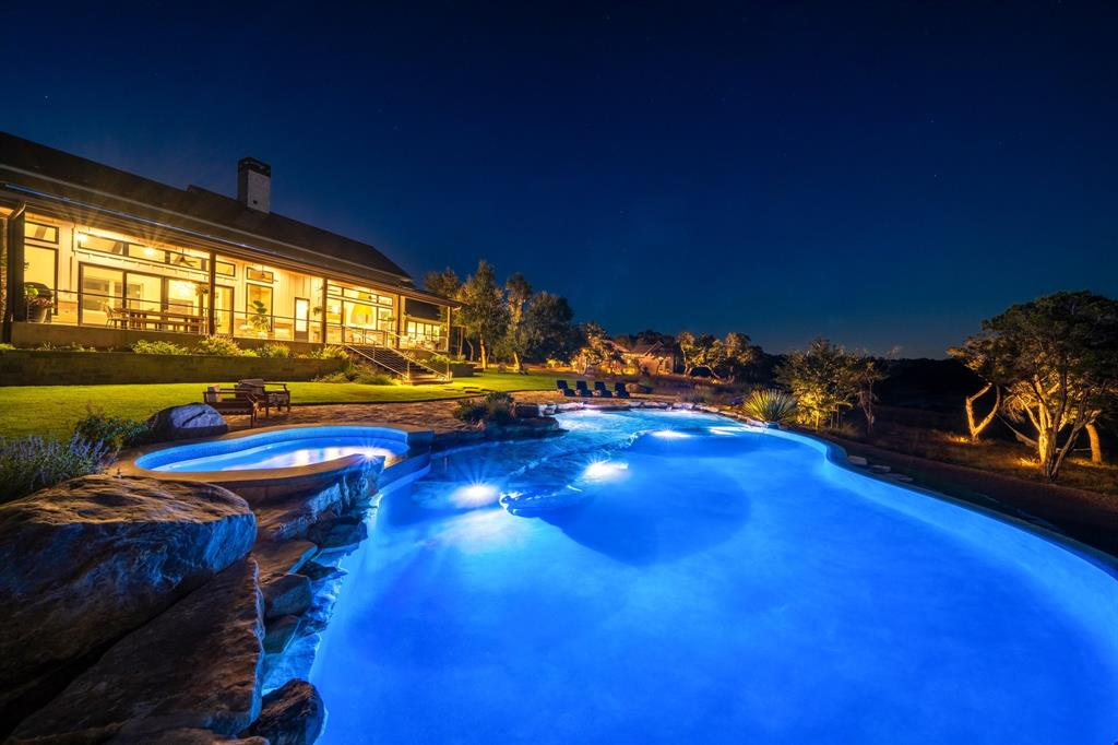 This property is the epitome of luxury living in the heart of the Texas Hill Country. The property offers the best of both worlds with a total combined 4,540 sqft of living pace, and 5 bedrooms 7 baths between the immaculate hill-top home, guest home, and a 375 sqft detached office, all with an expansive view of the private lake. The property also boasts a custom designed two-level infinity edge pool and hot-tub inspired by the flowing springs at Jacob’s Well, custom greenhouse, large off-grid solar system, and rainwater collection, on 15+ sprawling acres surrounded by nature, wildlife, and the serenity that comes with country living. No expense was spared on the improvements added to this property. The level of detail, craftsmanship, placement & attention to detail in the design is truly impressive.