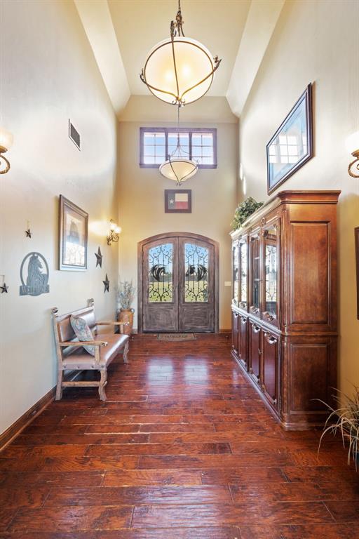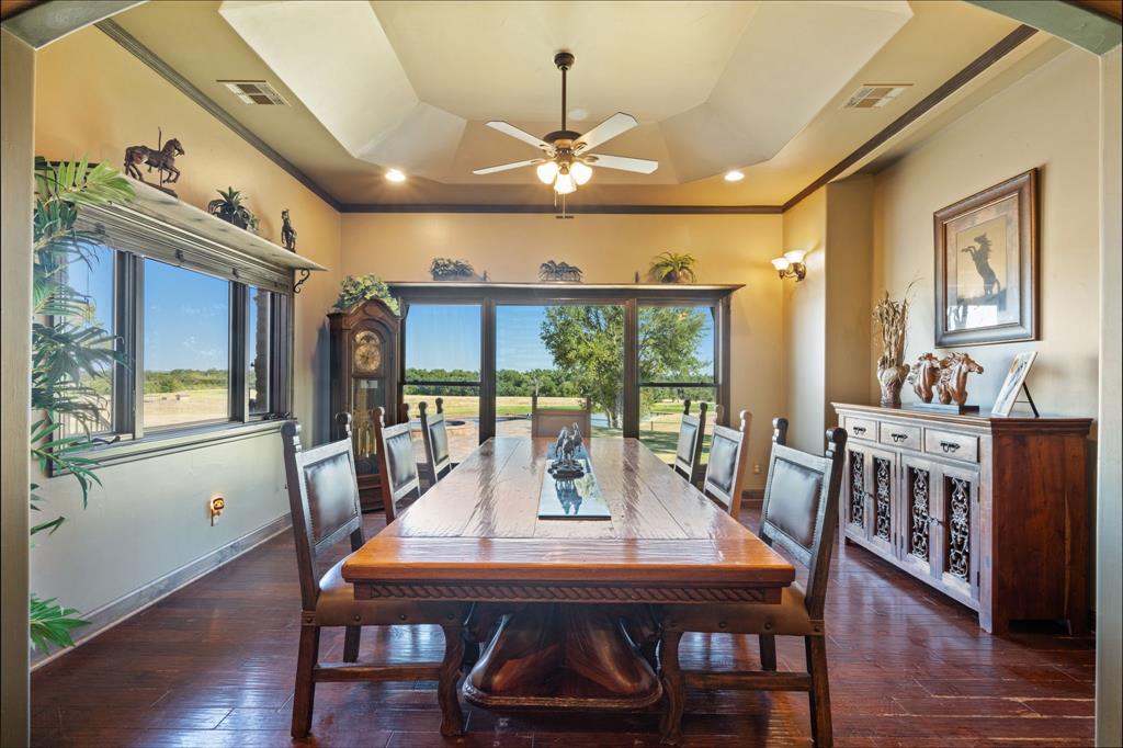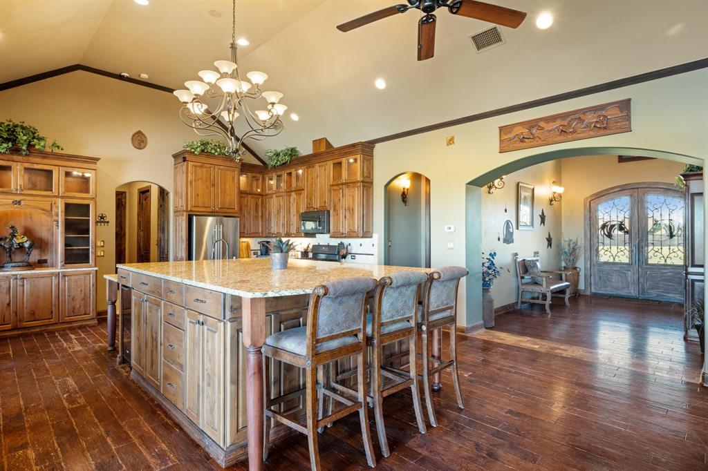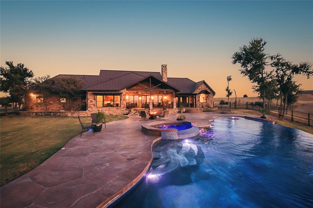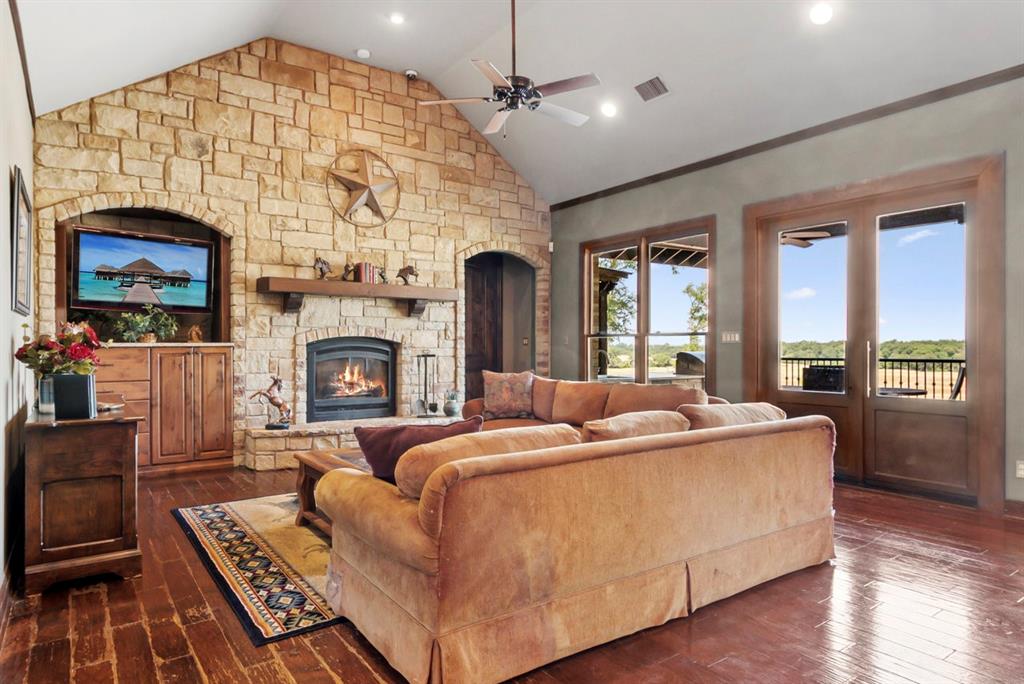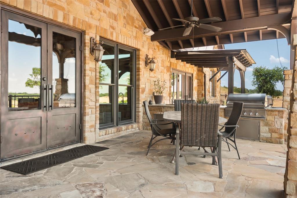 Welcome to the Long Road Ranch, where natural beauty and refined living meet providing ample opportunity as a full-time residence, recreational or equestrian property, or event venue. As you enter the property stone pillars and wrought iron gates welcome you in along a mile long winding driveway that transitions from hayfields along the HWY 29 frontage to the pecan-studded river bottom along the serene San Gabriel River. As you cross the bridge over the river and approach the hilltop improvements, the one word that perfectly captures the essence of the Long Road Ranch is "Grand”. With an impressive elevation change of over 100’, the hilltop vistas of the San Gabriel River valley from the infinity pool at the Owner's retreat is nothing short of spectacular. This ranch is a true equestrian paradise, embodying all the qualities of the quintessential equestrian/recreational ranch. Near the Owner's quarters, you'll find a brand-new steel barn thoughtfully designed to accommodate horse stalls, provide ample storage space for equipment storage, or to host events. There is a full trap and skeet range located at the bottom of the ranch which includes skeet towers, multiple covered spaces, as well as a built-in wood grill creating a fantastic location for social and competition events. The single-story roughly 2,930 square foot home was built in 2008 and offers a blend of elegance and comfort. The centerpiece of the home is its open-concept kitchen with sizeable island, which not only serves as a versatile space for cooking, dining, and entertaining but also provides picturesque views of the expansive outdoor entertaining areas and countryside. High ceilings throughout the home contribute to a sense of spaciousness and airiness. The outdoor entertaining area that boasts a built-in grill for seamless outdoor cooking and dining experiences. A spacious patio beckons residents and guests to enjoy the beautiful outdoor surroundings.