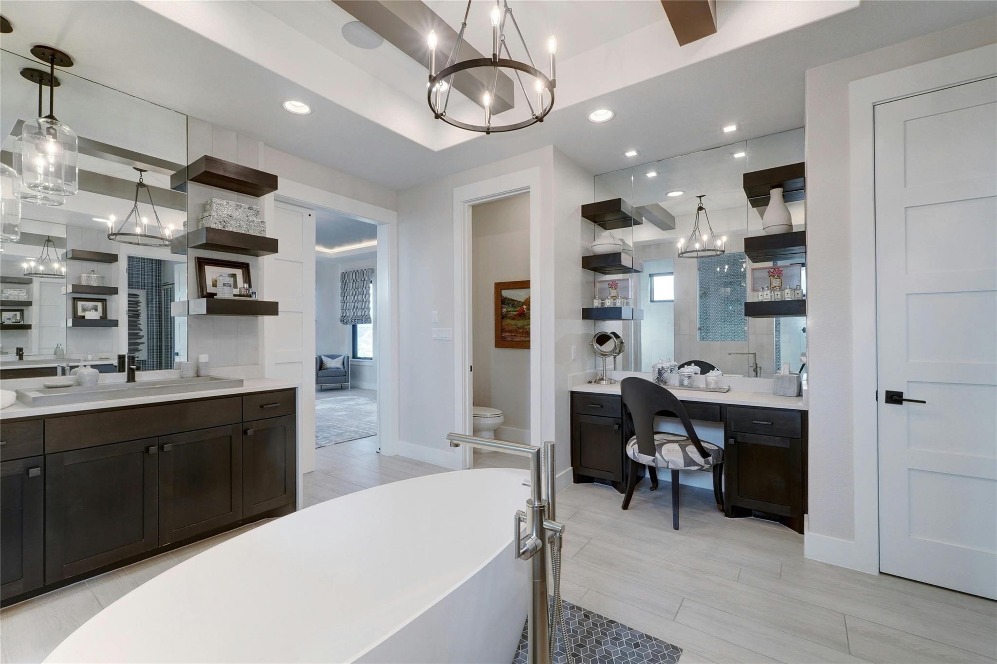 | Interior Features | Bookcases, Built-in Features, Ceiling Fan(s), High Ceilings, Tray Ceiling(s), Chandelier, Quartz Counters, Electric Dryer Hookup, Gas Dryer Hookup, In-Law Floorplan, Kitchen Island, Multiple Dining Areas, Multiple Living Areas, Open Floorplan, Pantry, Primary Bedroom on Main, Recessed Lighting, Smart Thermostat, Soaking Tub, Sound System, Walk-In Closet(s), Washer Hookup | |