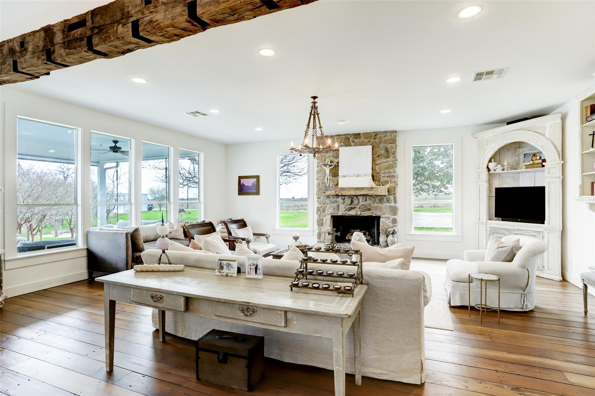 You'll fall in love with this 19 acre property! The White House on the Hill is an compound especially designed for a discerning and adventurous family. The 2/2 main home is exquisitely detailed with hand hewn beams, vintage wide plank wooden flooring and accented with stained glass windows & doors. An amazing 1/1 guest house overlooking the lake will surprise & delight your guests and the 4/2 timber-framed barn is perfect for entertaining larger groups. It includes a catering kitchen and you can spend evenings at the firepit watching amazing sunsets. The metal barn w/3 roll-up doors has been an artist haven, antique tool museum & used for RV storage. The icing on the cake is the 400-vine vineyard. The vines have been manicured awaiting the warm days of summer and in September you'll be calling your friends and family for the annual grape picking. For several years the owners have run a successful wedding/event/lodging business. Financials are available. Only 15 minutes from Round Top, it's a short drive from Houston and Austin. Live your dream and join us in the country!