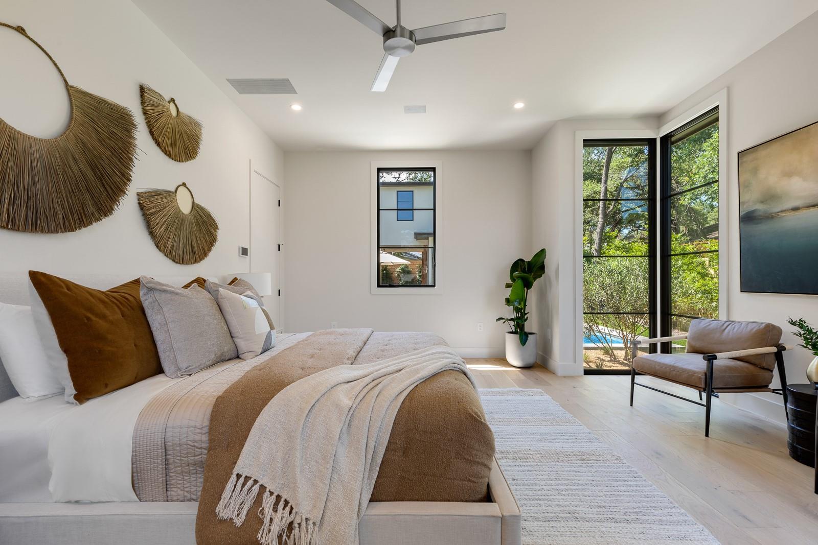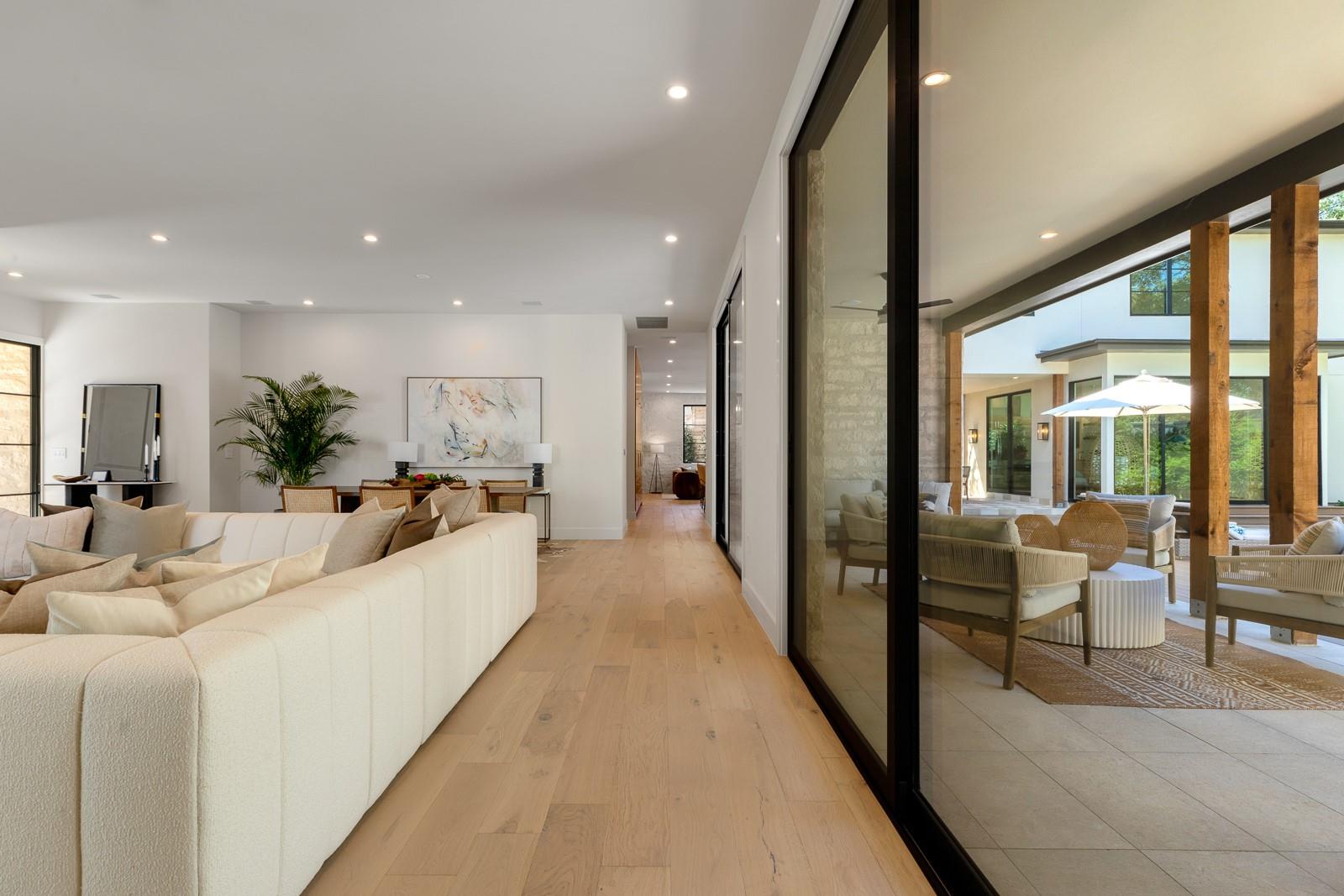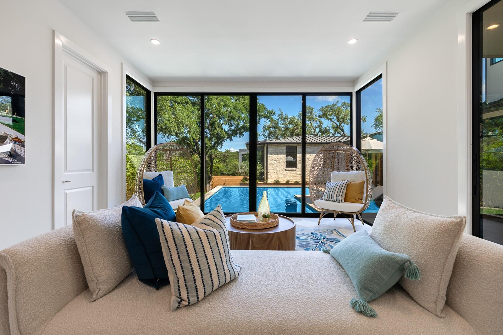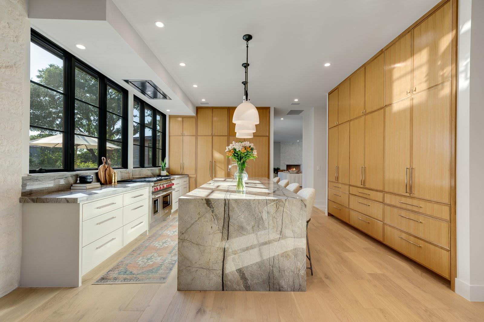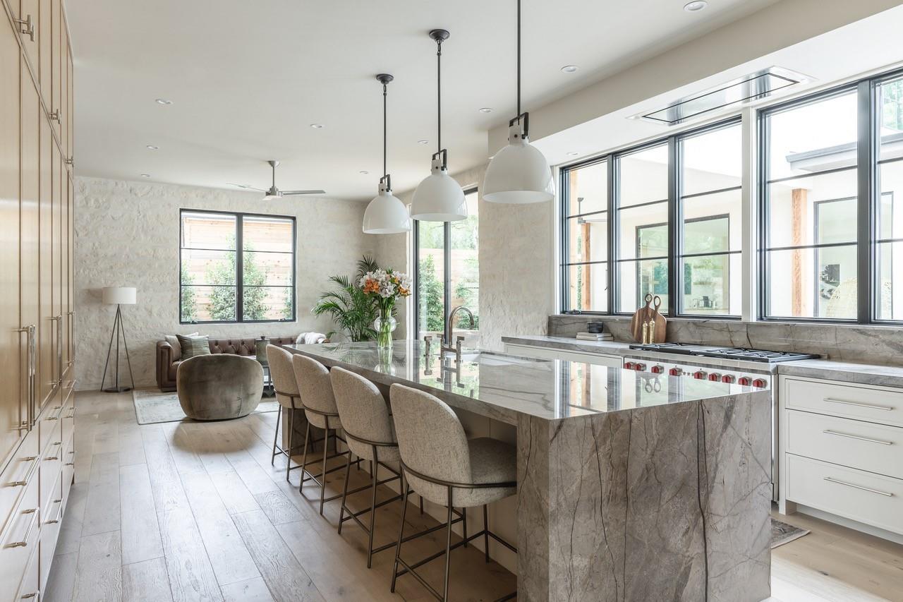 Come experience this luxurious, modern new-build in Barton Hills. Situated on almost a third acre and steps from Barton Hills Elementary, the gorgeous Barton Creek Greenbelt, Zilker Park, Barton Springs, restaurants/shops on S. Lamar and Barton Springs Rd, Lady Bird Lake and surrounding hike and bike trails and much more! The house has 5 bedrooms, 5.5 bathrooms and is 4531sf as per architect including separate poolhouse with kitchenette,full bath and walk-in closet. Design by FAB Architecture, built by Cobb Development, prepare to be be amazed at all of the exquisite features and finishes. Built like a custom home, no detail was overlooked. You will love the grand living and dining areas with custom stone fireplace, installed Frame TV and picturesque window seating overlooking lush backyard pool area through wall-to-wall Western sliders. Cook’s dream kitchen with stone walls, panel Wolf/Sub-Zero appliances, custom cabinets, beautiful stone countertops and an additional living area for lounging while cooking and entertaining.Rohl plumbing fixtures and designer lighting throughout.Walking down a library-like hallway you’ll arrive at the Owners Suite. This well-appointed and comfortable space feels so private while looking out to the backyard pool. Gorgeous primary bath has dual vanities and a dream closet with custom built-in cabinets and shelving.Adjacent to the Owners Suite is a private Executive Office.Upstairs you’ll find an additional living room/den at the top of the stairs and three secondary bedrooms,all with large en-suite bathrooms and walk-in closets.Finally, the backyard oasis includes ample covered and uncovered entertainment space and a large pool.There is also a separate pool house with kitchenette consisting of full-sized refrigerator,dishwasher,sink and an installed Frame TV, full bath and walk-in closet.This space could easily double as home gym,nanny quarters or overflow guest space.Large utility room and 2-car garage equipped with EV hookups.