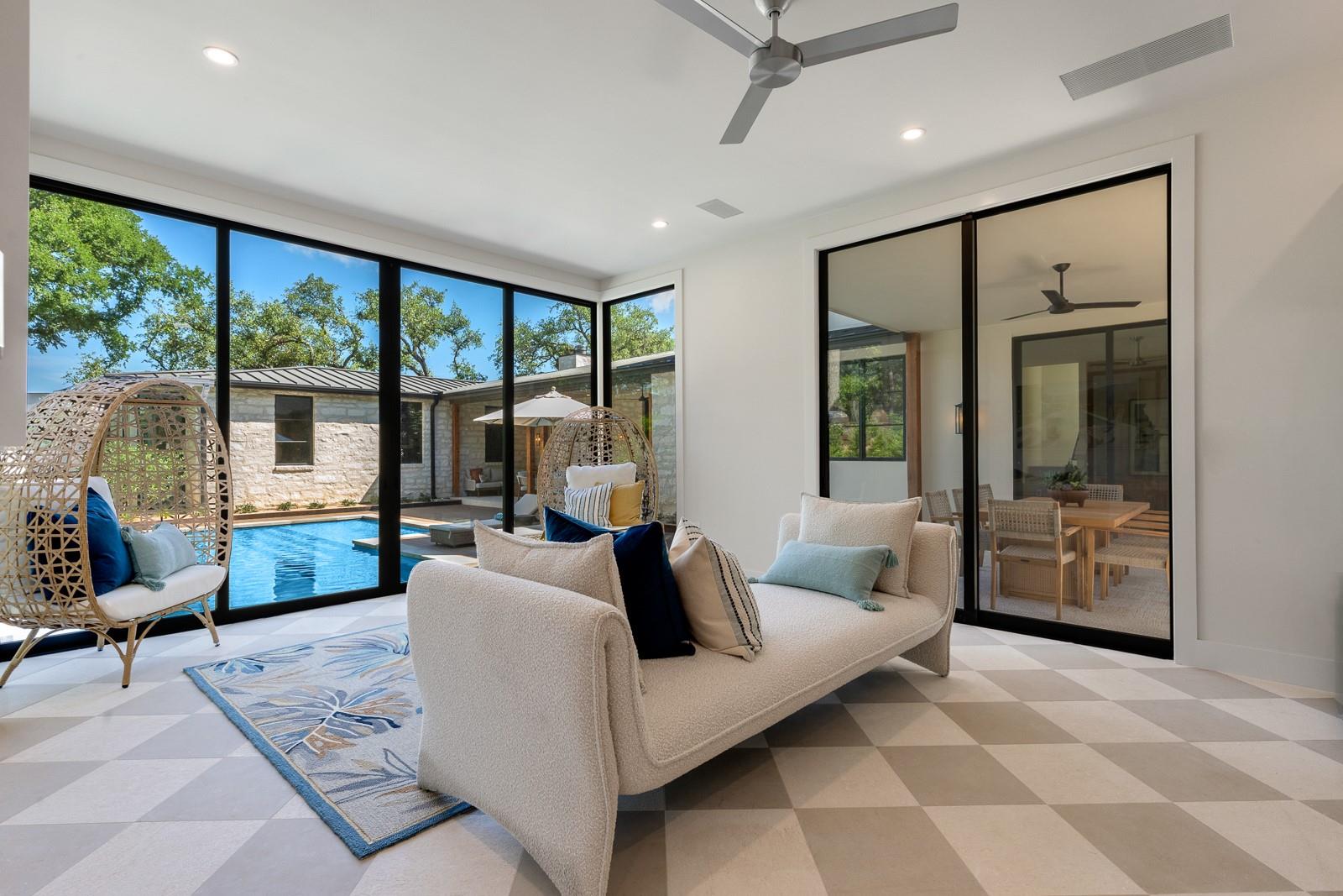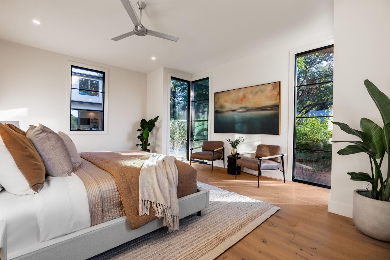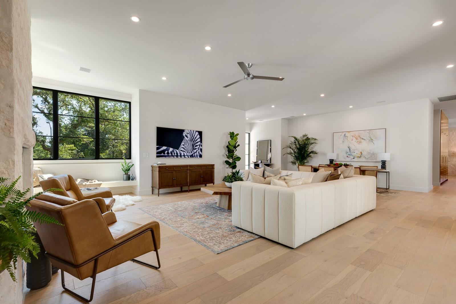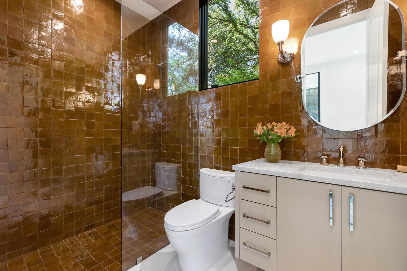 Come experience this luxurious, modern new-build in Barton Hills. Situated on almost a third acre and steps from Barton Hills Elementary, the gorgeous Barton Creek Greenbelt, Zilker Park, Barton Springs, restaurants/shops on S. Lamar and Barton Springs Rd, Lady Bird Lake and surrounding hike and bike trails and much more! The house has 5 bedrooms, 5.5 bathrooms and is 4531sf as per architect including separate poolhouse with kitchenette,full bath and walk-in closet. Design by FAB Architecture, built by Cobb Development, prepare to be be amazed at all of the exquisite features and finishes. Built like a custom home, no detail was overlooked. You will love the grand living and dining areas with custom stone fireplace, installed Frame TV and picturesque window seating overlooking lush backyard pool area through wall-to-wall Western sliders. Cook’s dream kitchen with stone walls, panel Wolf/Sub-Zero appliances, custom cabinets, beautiful stone countertops and an additional living area for lounging while cooking and entertaining.Rohl plumbing fixtures and designer lighting throughout.Walking down a library-like hallway you’ll arrive at the Owners Suite. This well-appointed and comfortable space feels so private while looking out to the backyard pool. Gorgeous primary bath has dual vanities and a dream closet with custom built-in cabinets and shelving.Adjacent to the Owners Suite is a private Executive Office.Upstairs you’ll find an additional living room/den at the top of the stairs and three secondary bedrooms,all with large en-suite bathrooms and walk-in closets.Finally, the backyard oasis includes ample covered and uncovered entertainment space and a large pool.There is also a separate pool house with kitchenette consisting of full-sized refrigerator,dishwasher,sink and an installed Frame TV, full bath and walk-in closet.This space could easily double as home gym,nanny quarters or overflow guest space.Large utility room and 2-car garage equipped with EV hookups.