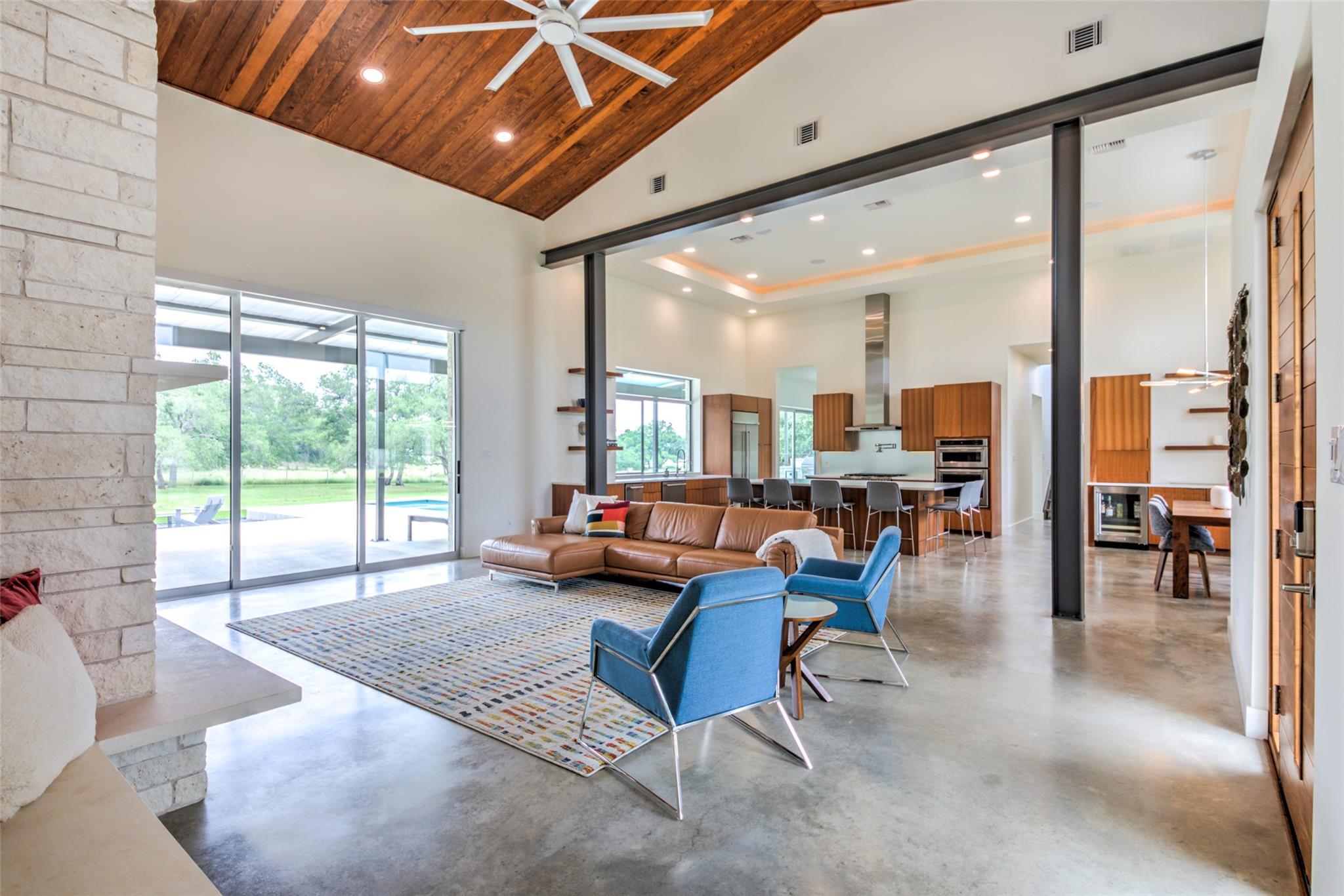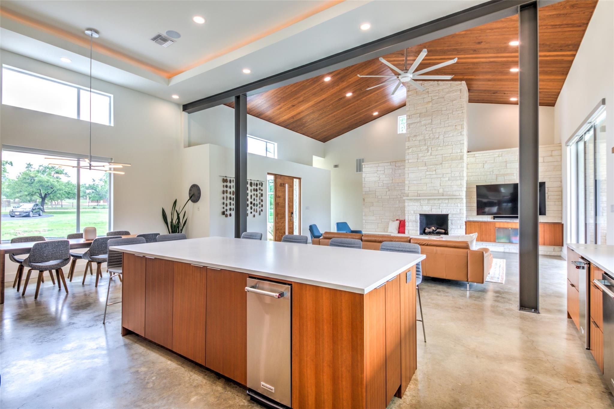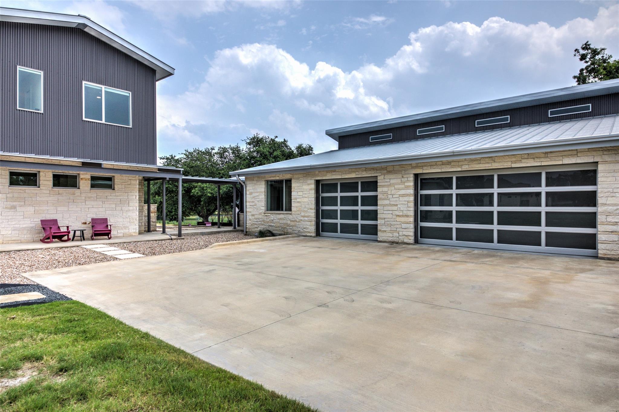 Step into this stunning contemporary home on a serene 2-ac lot in the highly sought-after Dripping Springs ISD. Just 35 min from downtown Austin and 40 min to ABIA, this property blends luxury, convenience, and modern design. Built in 2018 with structural steel and 2x6 framing, this home exudes quality and durability. Energy efficiency is at its core, with full spray foam insulation, 6' exterior walls, and sound insulation in interior walls ensuring maximum comfort and savings. The home includes two sets of washer/dryer connections—one in the utility room and one in the master closet. The garage features washer, dryer, and RV hookups, along with Spectrum internet, supported by a whole-property wireless system.