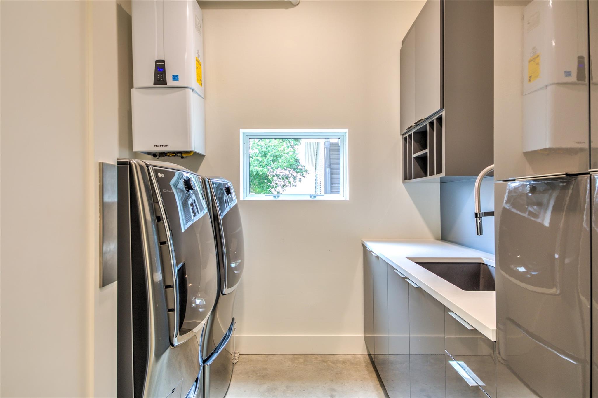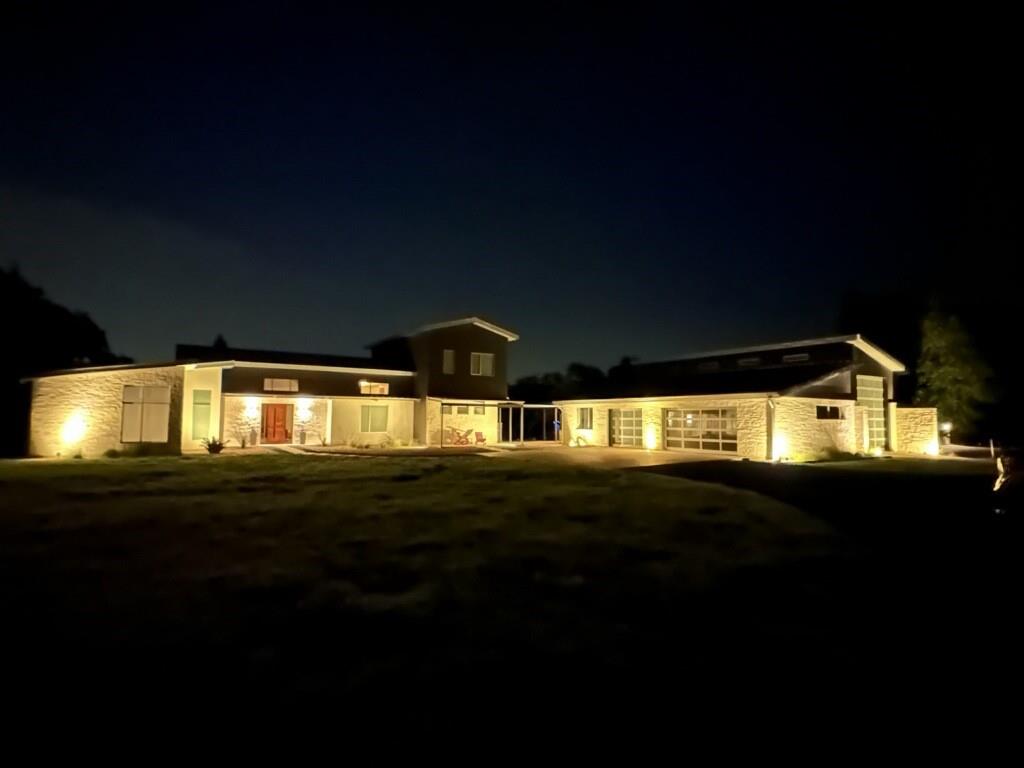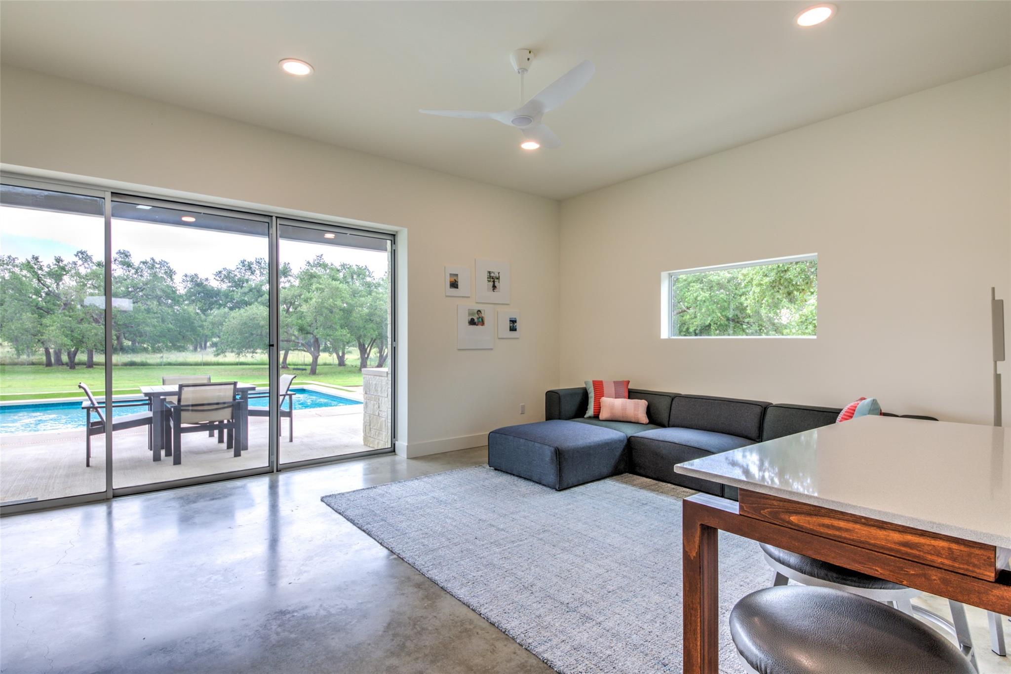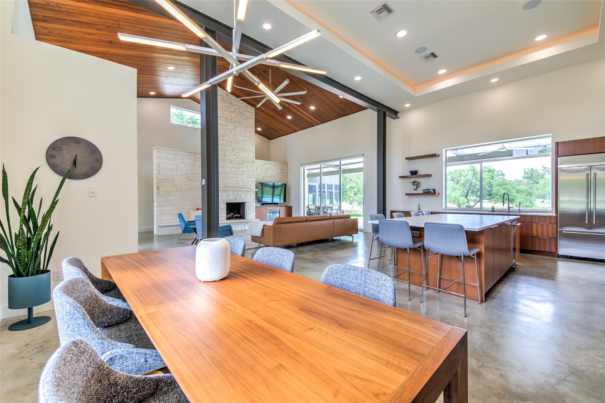 Step into this stunning contemporary home on a serene 2-ac lot in the highly sought-after Dripping Springs ISD. Just 35 min from downtown Austin and 40 min to ABIA, this property blends luxury, convenience, and modern design. Built in 2018 with structural steel and 2x6 framing, this home exudes quality and durability. Energy efficiency is at its core, with full spray foam insulation, 6' exterior walls, and sound insulation in interior walls ensuring maximum comfort and savings. The home includes two sets of washer/dryer connections—one in the utility room and one in the master closet. The garage features washer, dryer, and RV hookups, along with Spectrum internet, supported by a whole-property wireless system.