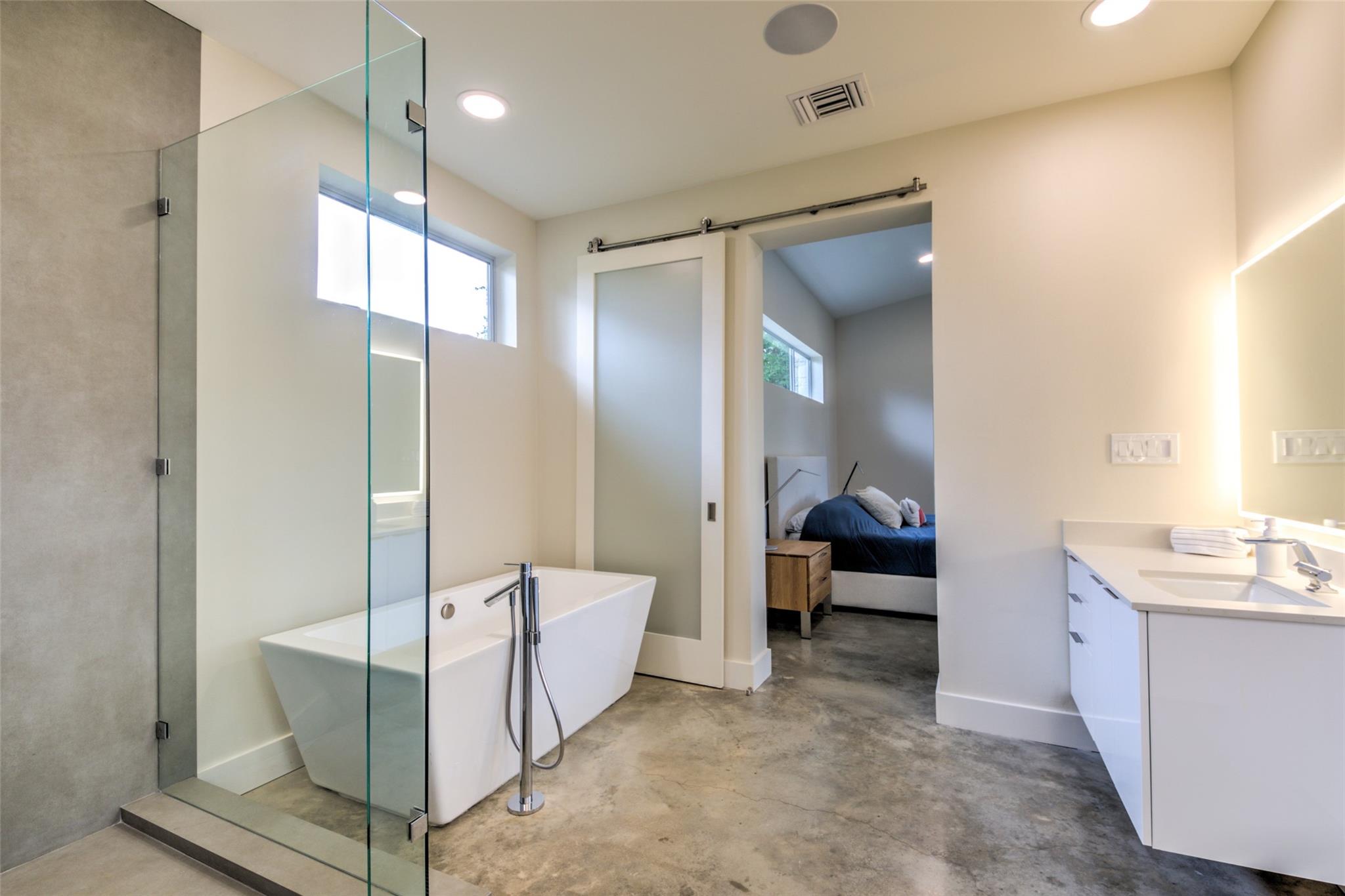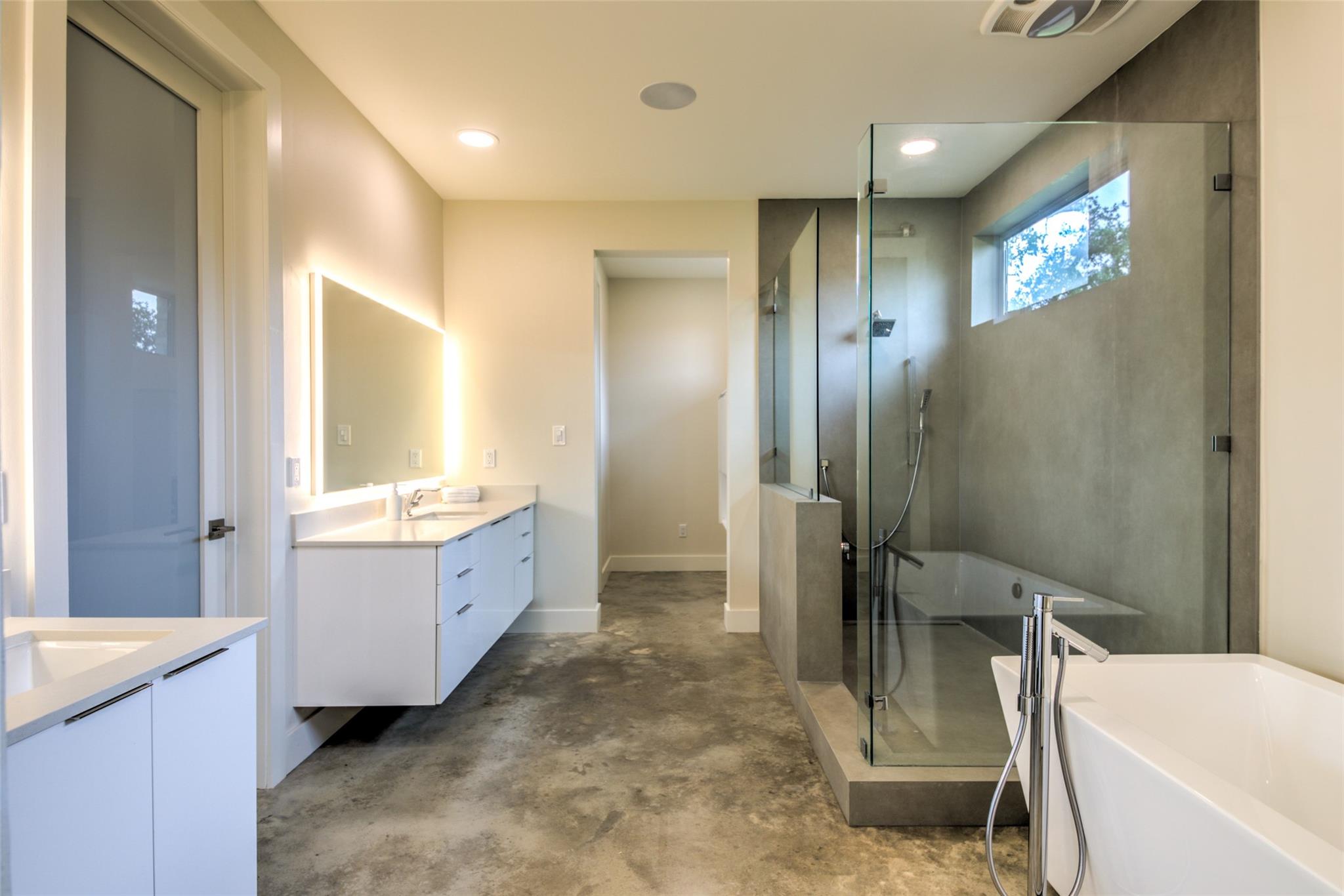 Tech and utility features include 400 amp electric service with full 200 amp service in the garage, new epoxy garage floors, and a standing seam roof. The eco-friendly xeriscaped landscaping ensures low maintenance and water use. The property also includes a 3-car garage for trucks and a fourth bay with a 14-foot door, large enough for boats or a 45-foot RV. This home is ideal for luxury buyers seeking a contemporary lifestyle in a peaceful, yet accessible location.