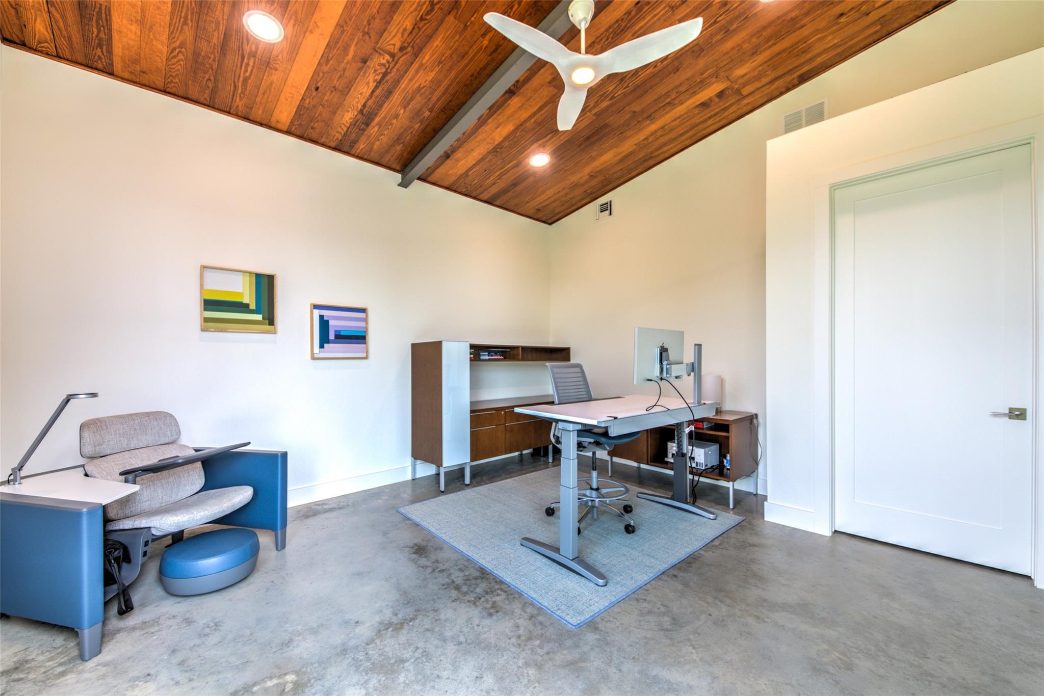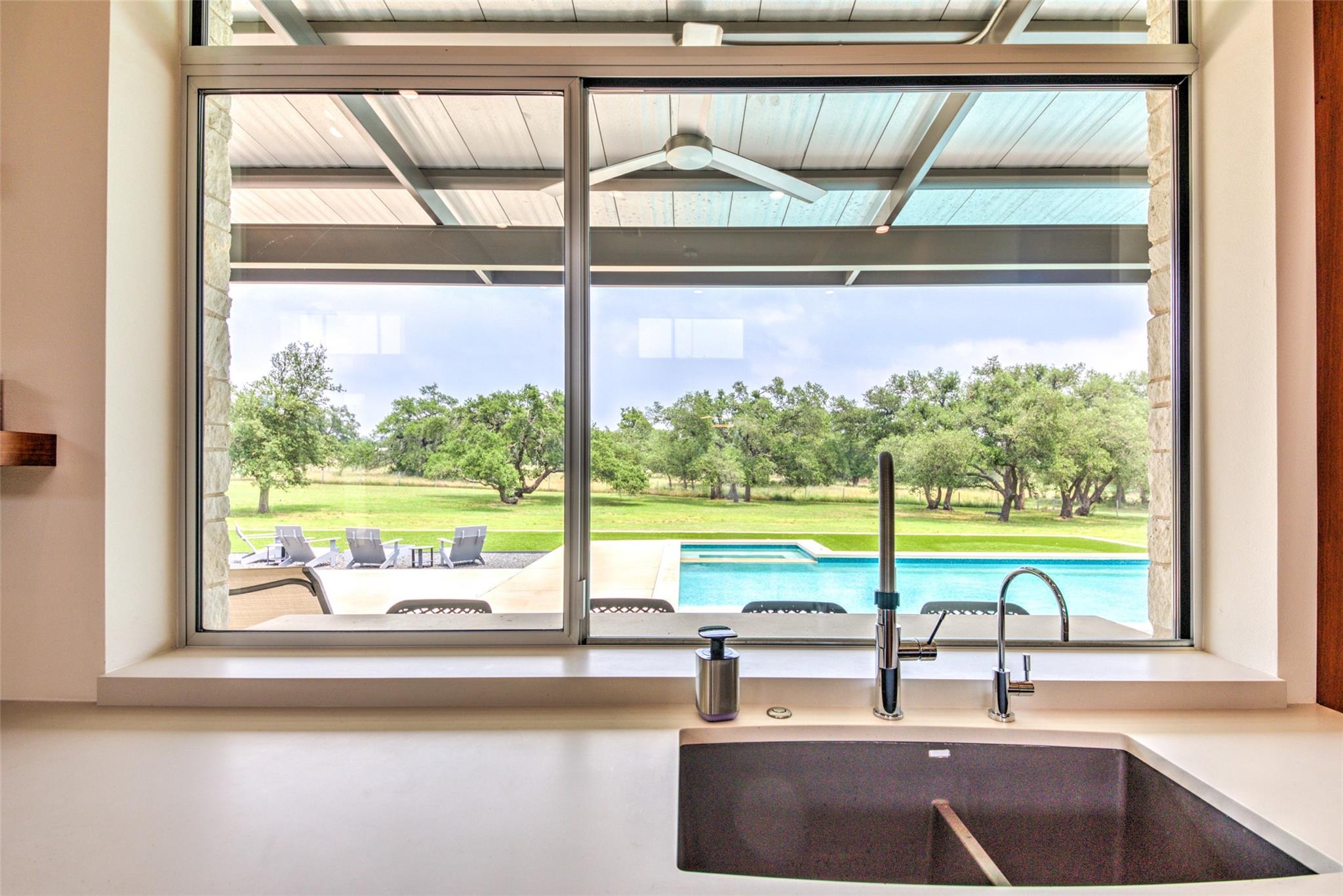 A 7000-gal rainwater collection system includes full home filtration, with reverse osmosis in the kitchen, casita sink, ice maker, and pot filler. Heating and cooling are managed with a high-efficiency Daikin system, two propane tankless water heaters, a 1000-gallon buried propane tank, and "Big Ass" Fans in every room and under the covered patio. High-quality thermally broken windows ensure excellent energy efficiency.