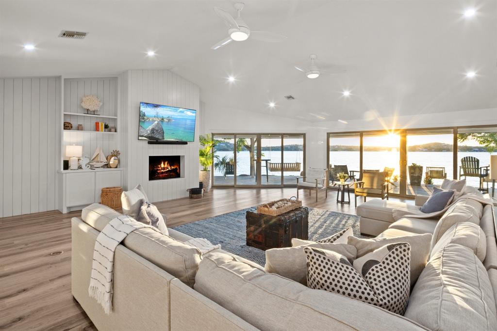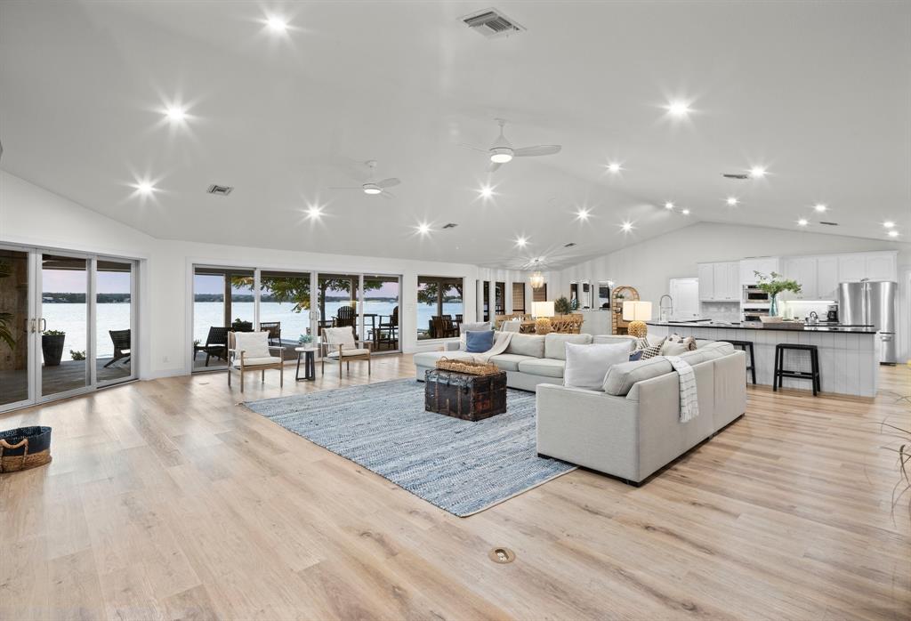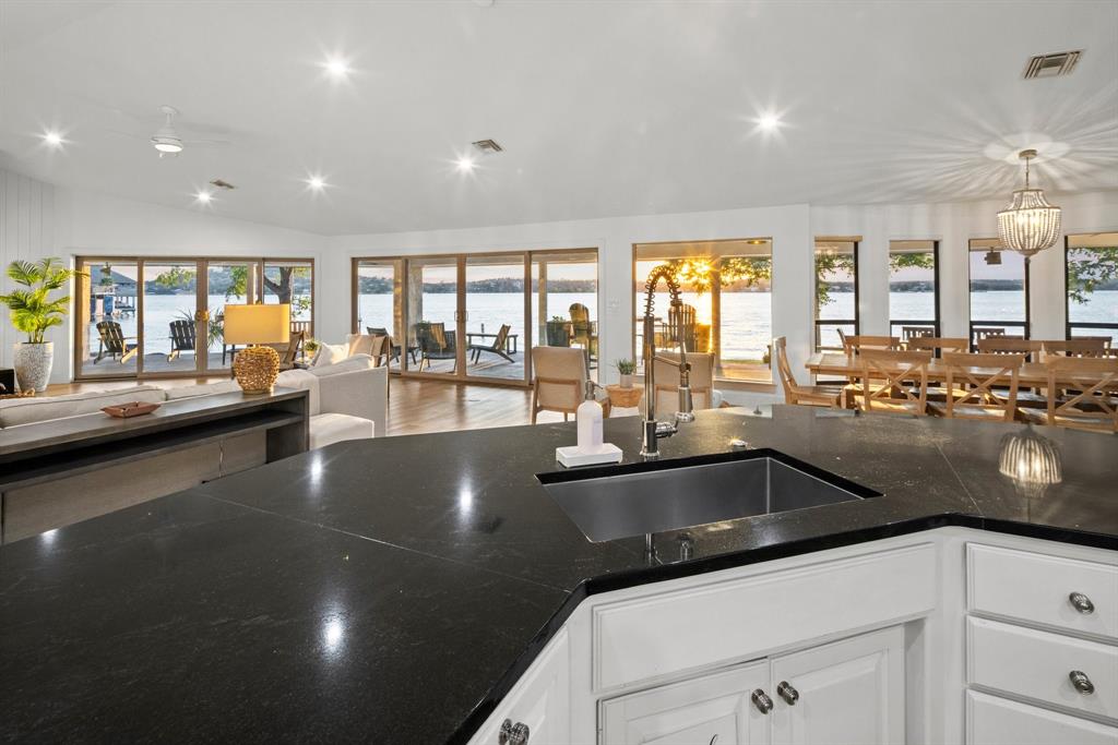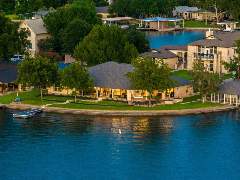Open-concept living like I have never before seen on Lake LBJ. Brand New Roof! Check this incredible waterfront property we have for sale in Granite Shoals, Texas. Single-story living throughout with awesome and open kitchen, living and dining with tall vaulted ceilings and LBJ views for days. 4 bedrooms, 3 full baths, all impeccably updated with great design choices for a light and bright LBJ escape. Beautiful porches wrap around the home and the two stall boat dock is perfect for your toys. 3 car garage for additional parking. The luxurious furnishings found throughout this home are negotiable for the opportunity to purchase a turn-key home on Lake LBJ. This Blue Chip Lake LBJ Getaway is one of the BEST you will find. Prime Real Estate right here!