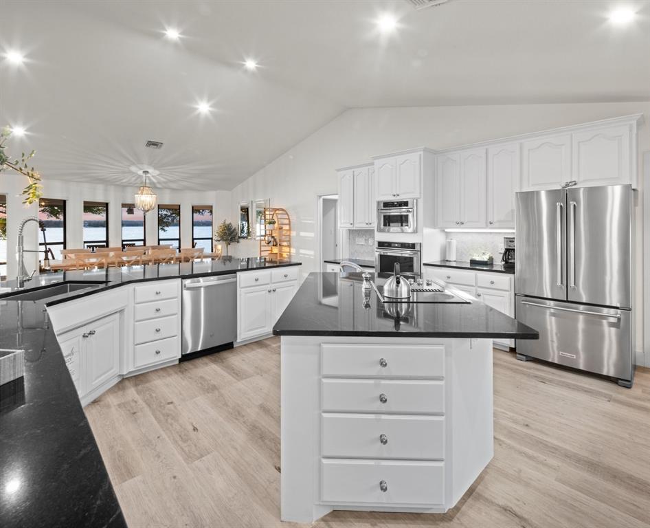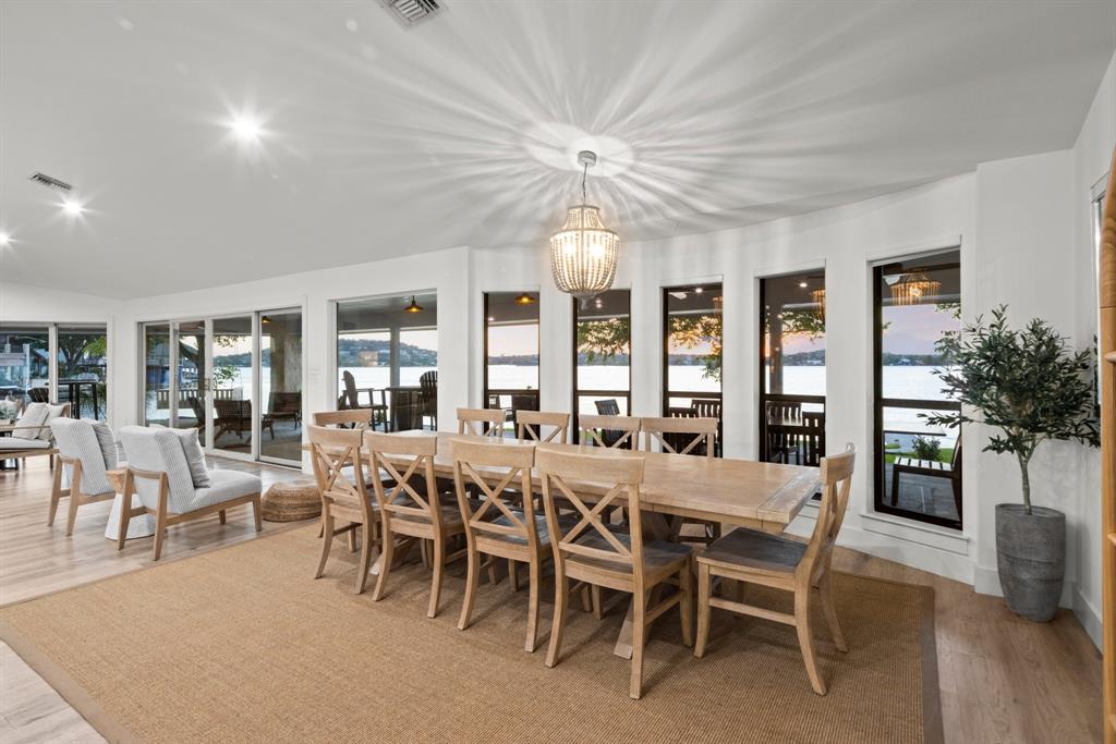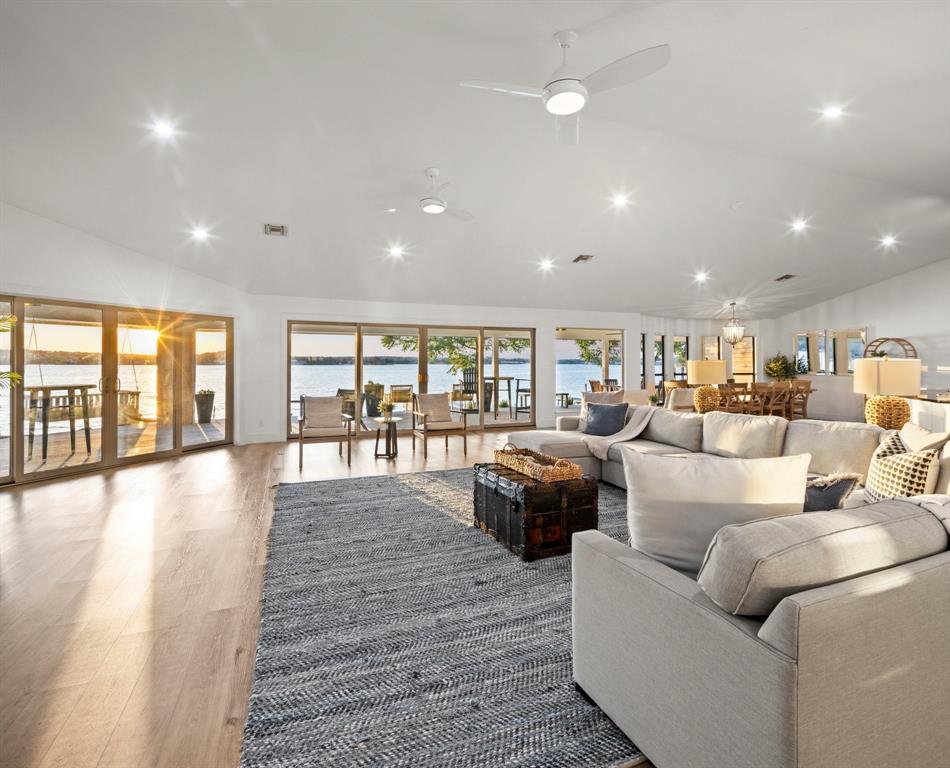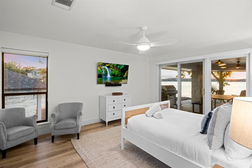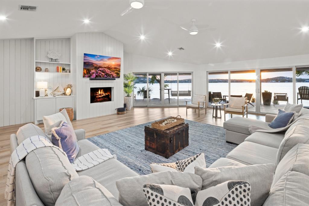 Open-concept living like I have never before seen on Lake LBJ. Brand New Roof! Check this incredible waterfront property we have for sale in Granite Shoals, Texas. Single-story living throughout with awesome and open kitchen, living and dining with tall vaulted ceilings and LBJ views for days. 4 bedrooms, 3 full baths, all impeccably updated with great design choices for a light and bright LBJ escape. Beautiful porches wrap around the home and the two stall boat dock is perfect for your toys. 3 car garage for additional parking. The luxurious furnishings found throughout this home are negotiable for the opportunity to purchase a turn-key home on Lake LBJ. This Blue Chip Lake LBJ Getaway is one of the BEST you will find. Prime Real Estate right here!