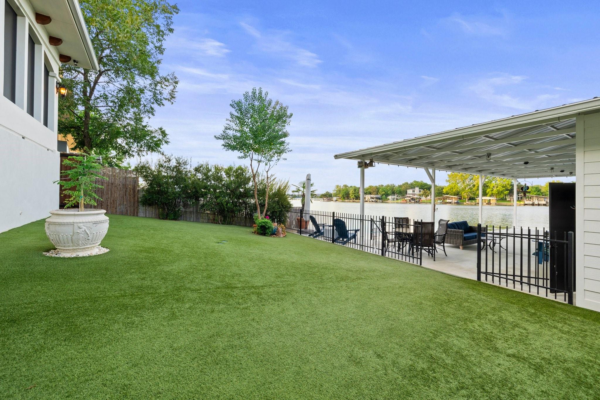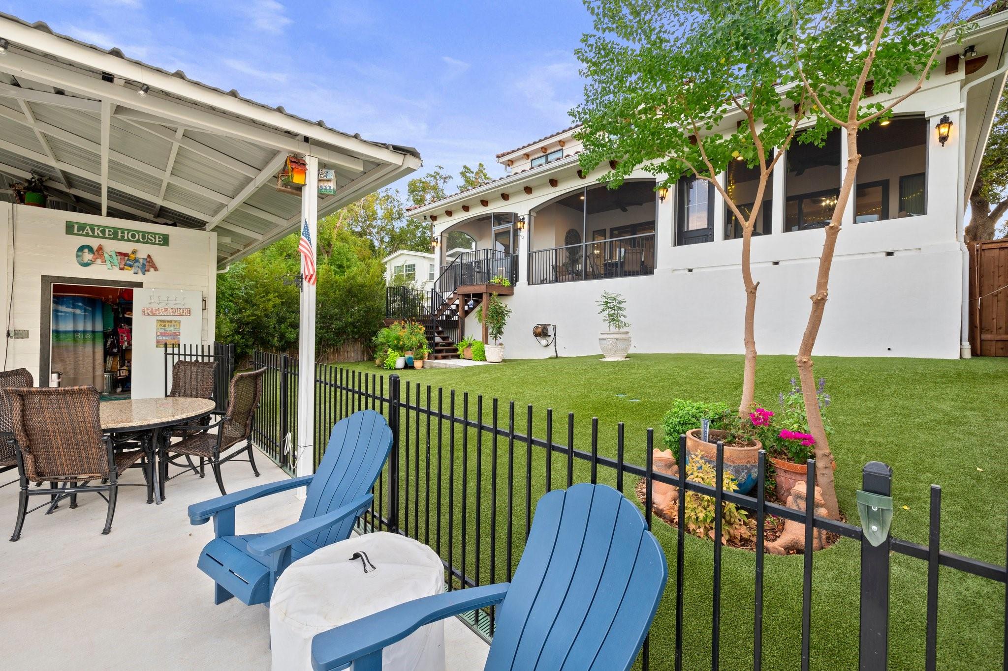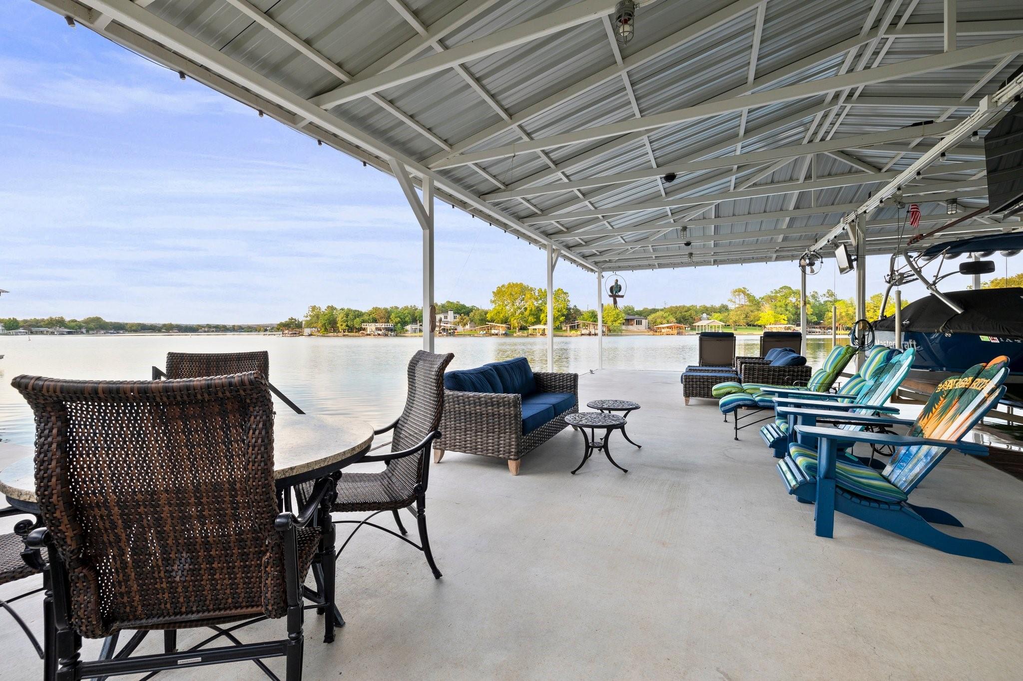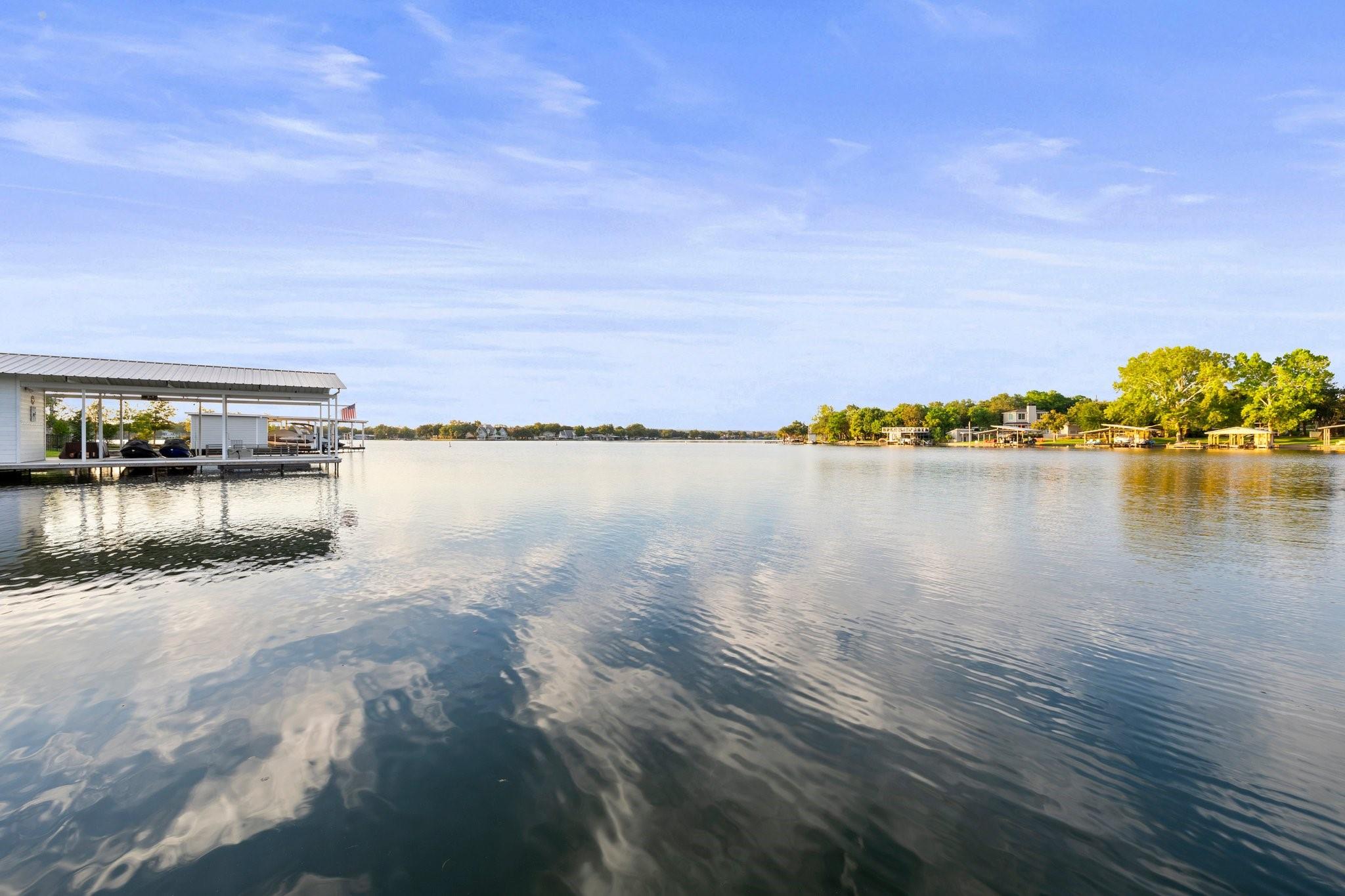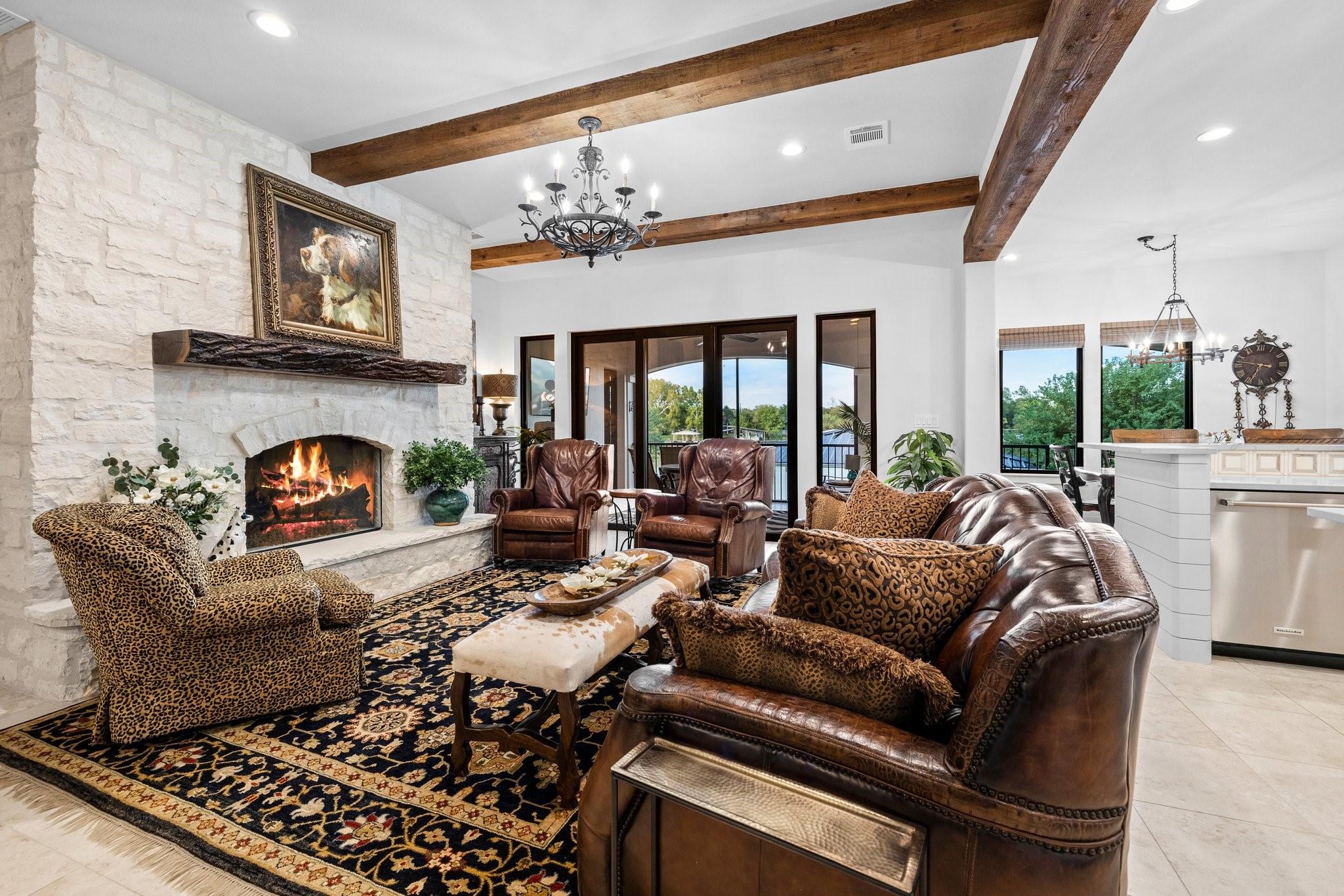 WOW! 2019 built, one-owner home on the shores of Lake LBJ in Granite Shoals, Texas! Welcome to this Santa Barbara inspired, mediterranean masterpiece with 4 bedrooms, 4.5 baths, white and bright ready for its new owner. Beautiful and luxurious kitchen with wolf gas range and built-in, Sub-Zero fridge, white cabinets, white countertops and walk-in pantry with lots of built in shelving and drawers. Dining area has a custom wet bar with mini-fridge and overlooks the gorgeous water. Custom beams offer the perfect amount of texture to this well built home and fireplaces in the living and master bedroom really set the mood. Large master suite opens up the back patio and has an en suite bathroom with tub and walk-in shower plus large walk-in closet. There is an additional guest bedroom on the main floor with en suite bathroom making the home accessible to most anyone. Upstairs you will arrive in the secondary living space, currently outfitted with built-in bunks for additional guests plus there are 2 spacious bedrooms and two freshly designed bathrooms to ensure your family and friends are more than comfortable at the lake. The entire back porch is screened and offers additional outdoor living space to enjoy the Lake Life with wall mounted TV and beautiful Lake views. Astroturf in the back yard limits maintenance and offers a beautiful green space to spread out and play that's easy on the feet. Steel-constructed boat dock was built to entertain with walk-up bar and the boat slip was sized for most any boat you will find on Lake LBJ. This waterfront home faces East which means the hot Texas sun sets at your back and the large cove-protected waterfront provides a safe place for swimming without having to worry about the heavy boat traffic found on the open water. This one-of-a-kind custom home has so much to offer and was built to enjoy Lake Life. Qualified buyers come see what the hype is about. This special property won't last long!