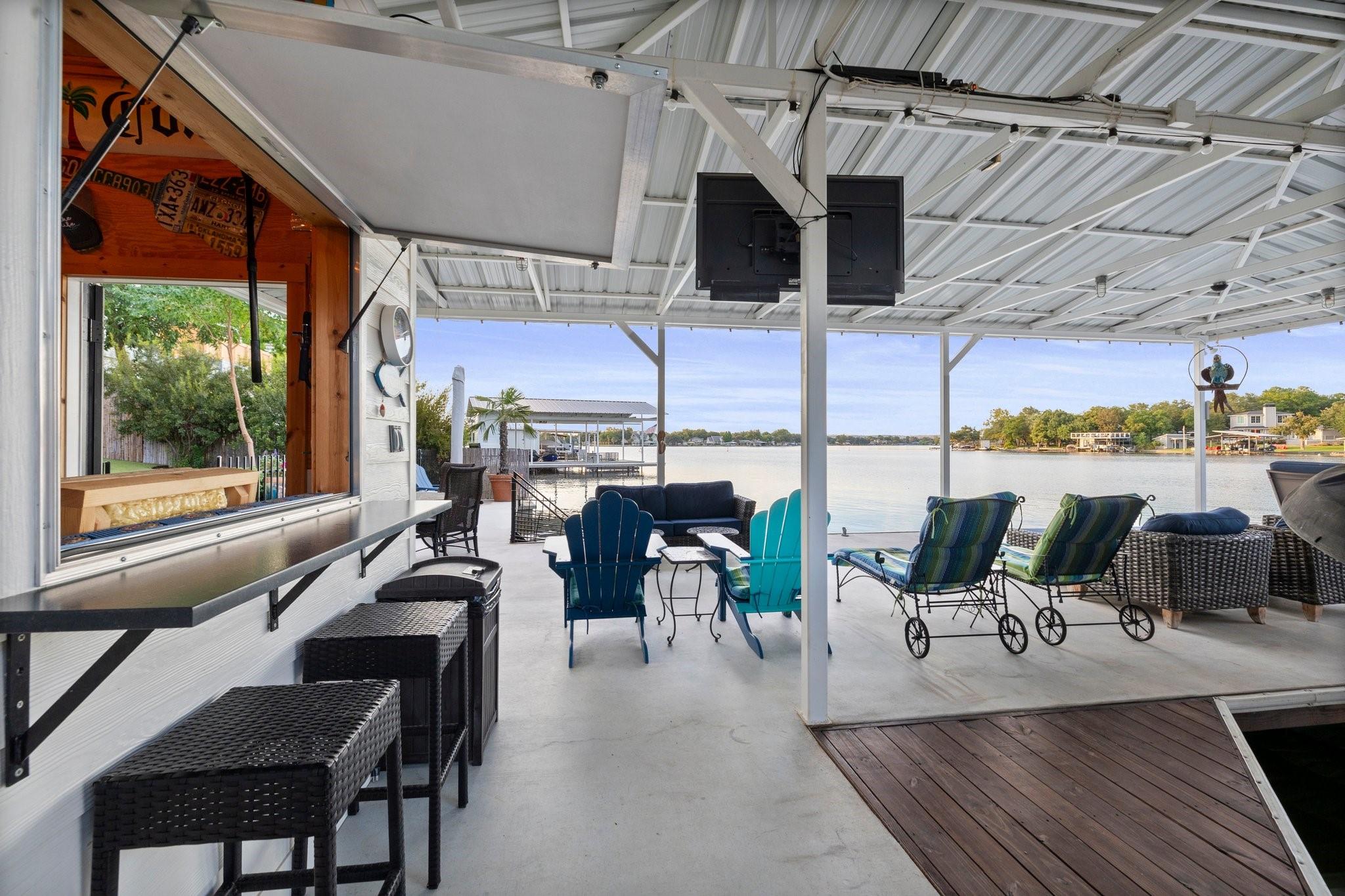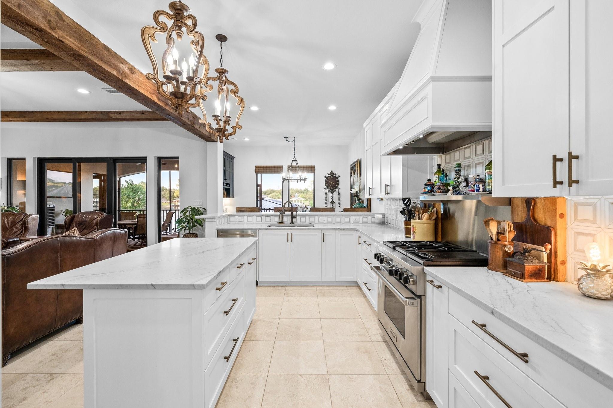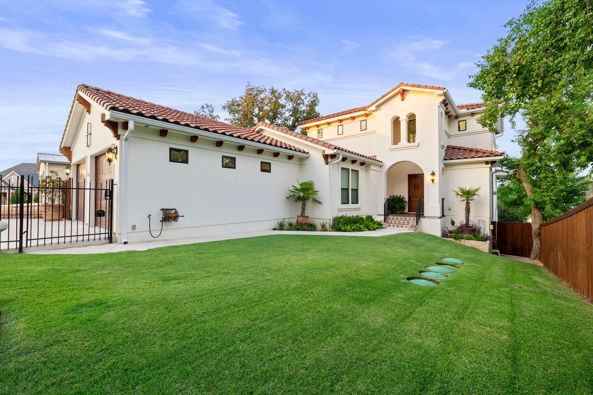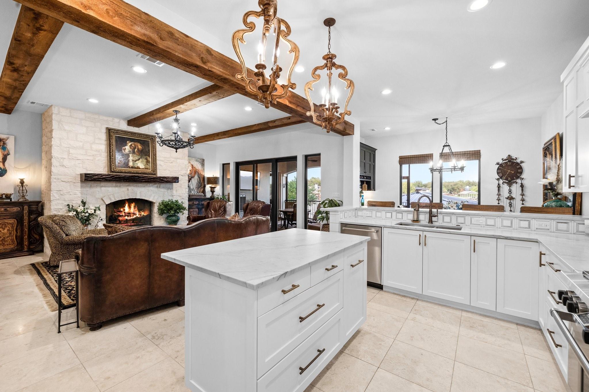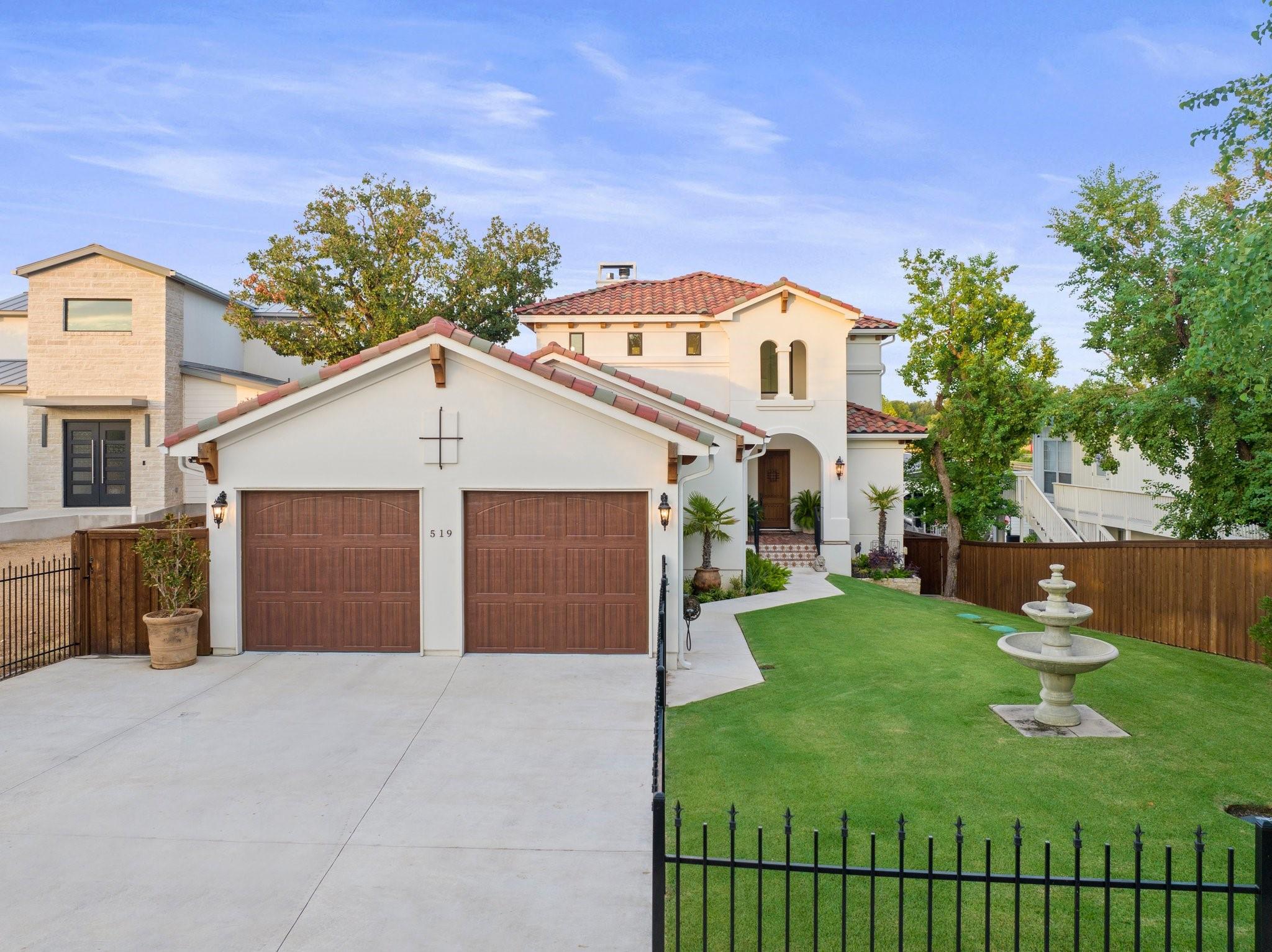 WOW! 2019 built, one-owner home on the shores of Lake LBJ in Granite Shoals, Texas! Welcome to this Santa Barbara inspired, mediterranean masterpiece with 4 bedrooms, 4.5 baths, white and bright ready for its new owner. Beautiful and luxurious kitchen with wolf gas range and built-in, Sub-Zero fridge, white cabinets, white countertops and walk-in pantry with lots of built in shelving and drawers. Dining area has a custom wet bar with mini-fridge and overlooks the gorgeous water. Custom beams offer the perfect amount of texture to this well built home and fireplaces in the living and master bedroom really set the mood. Large master suite opens up the back patio and has an en suite bathroom with tub and walk-in shower plus large walk-in closet. There is an additional guest bedroom on the main floor with en suite bathroom making the home accessible to most anyone. Upstairs you will arrive in the secondary living space, currently outfitted with built-in bunks for additional guests plus there are 2 spacious bedrooms and two freshly designed bathrooms to ensure your family and friends are more than comfortable at the lake. The entire back porch is screened and offers additional outdoor living space to enjoy the Lake Life with wall mounted TV and beautiful Lake views. Astroturf in the back yard limits maintenance and offers a beautiful green space to spread out and play that's easy on the feet. Steel-constructed boat dock was built to entertain with walk-up bar and the boat slip was sized for most any boat you will find on Lake LBJ. This waterfront home faces East which means the hot Texas sun sets at your back and the large cove-protected waterfront provides a safe place for swimming without having to worry about the heavy boat traffic found on the open water. This one-of-a-kind custom home has so much to offer and was built to enjoy Lake Life. Qualified buyers come see what the hype is about. This special property won't last long!