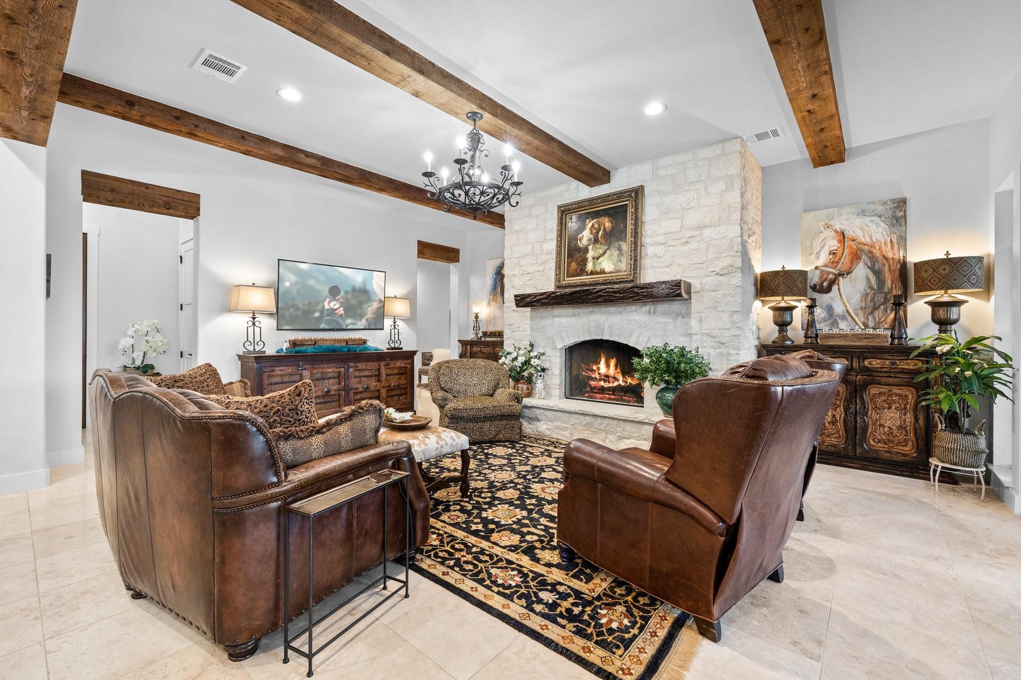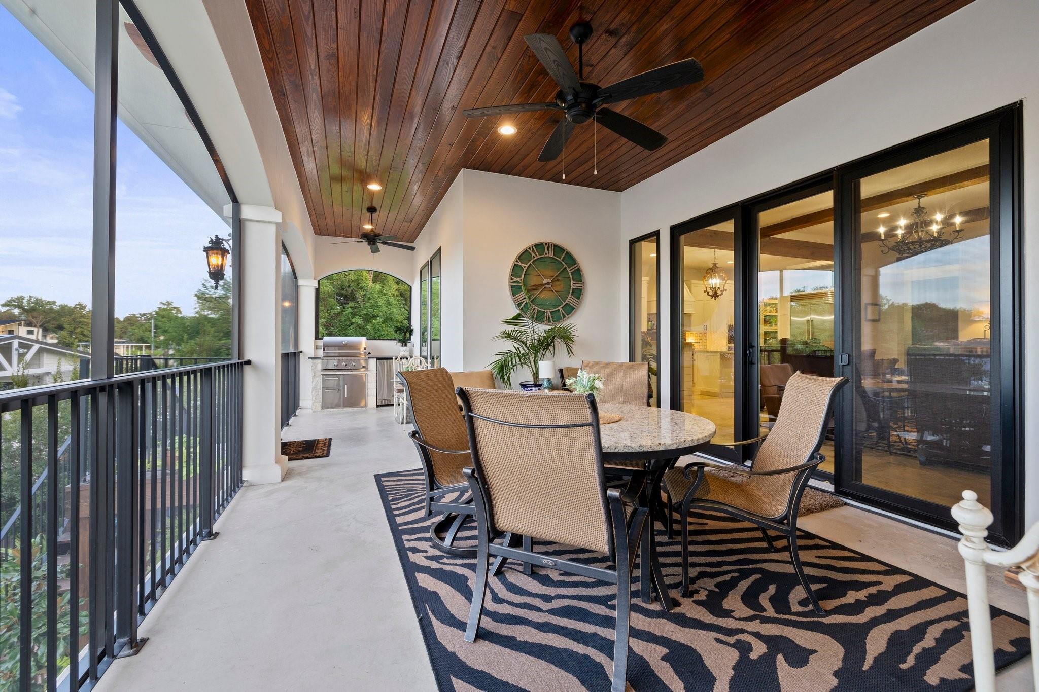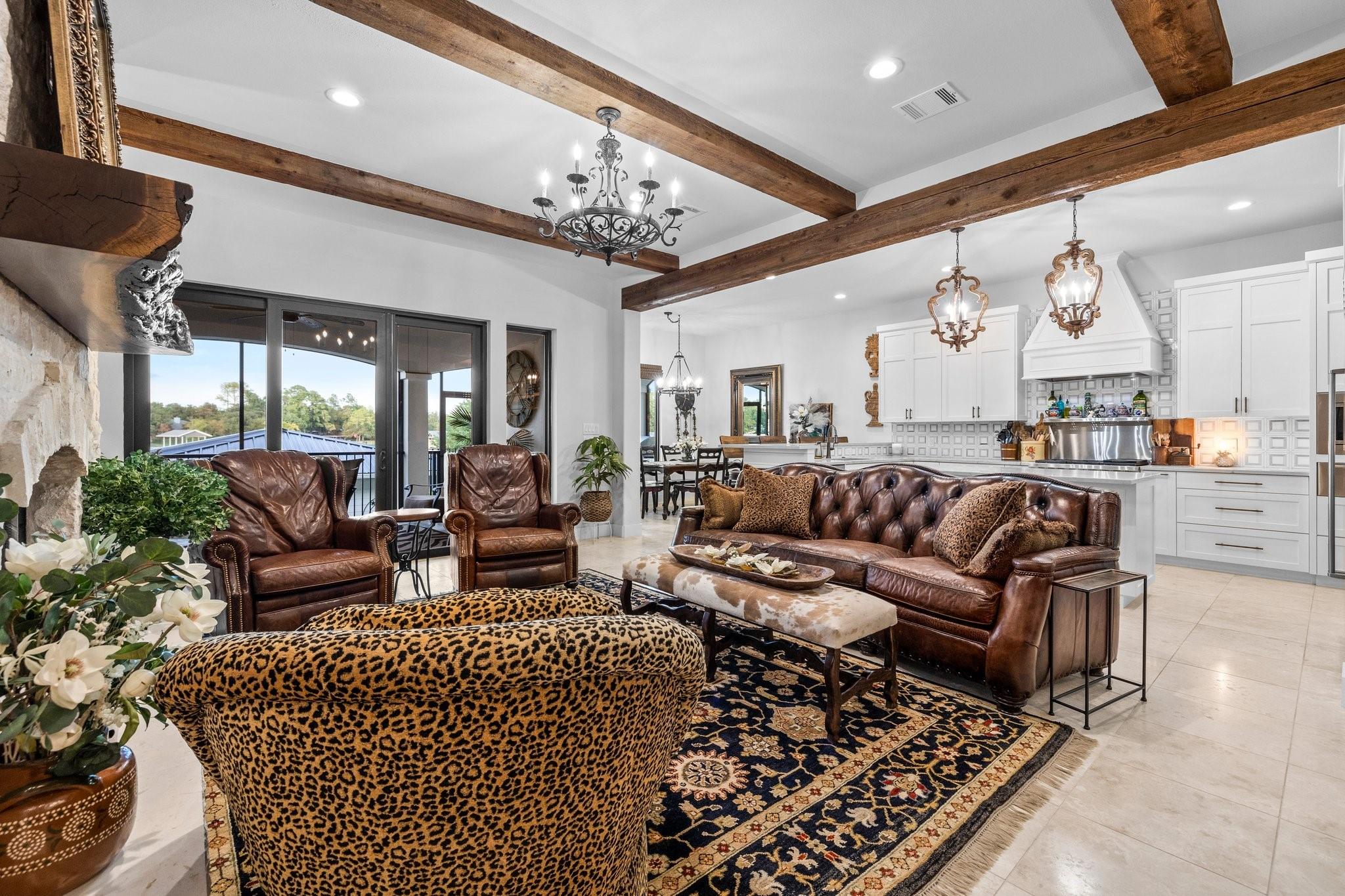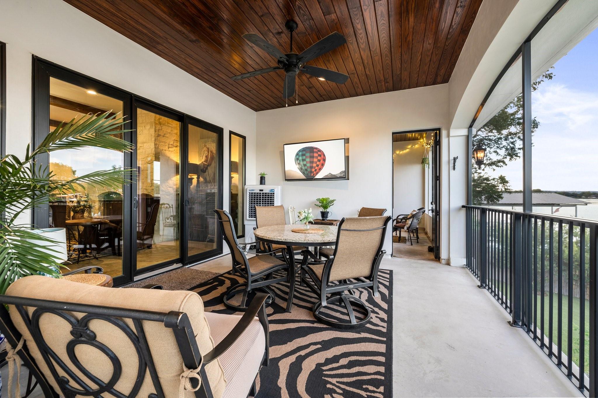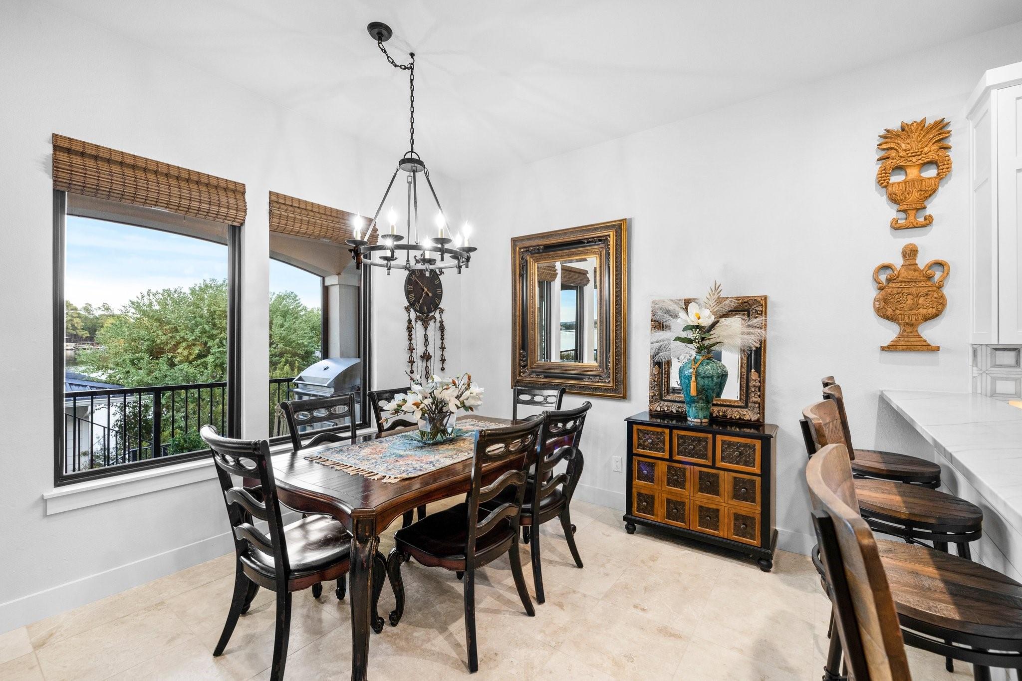 WOW! 2019 built, one-owner home on the shores of Lake LBJ in Granite Shoals, Texas! Welcome to this Santa Barbara inspired, mediterranean masterpiece with 4 bedrooms, 4.5 baths, white and bright ready for its new owner. Beautiful and luxurious kitchen with wolf gas range and built-in, Sub-Zero fridge, white cabinets, white countertops and walk-in pantry with lots of built in shelving and drawers. Dining area has a custom wet bar with mini-fridge and overlooks the gorgeous water. Custom beams offer the perfect amount of texture to this well built home and fireplaces in the living and master bedroom really set the mood. Large master suite opens up the back patio and has an en suite bathroom with tub and walk-in shower plus large walk-in closet. There is an additional guest bedroom on the main floor with en suite bathroom making the home accessible to most anyone. Upstairs you will arrive in the secondary living space, currently outfitted with built-in bunks for additional guests plus there are 2 spacious bedrooms and two freshly designed bathrooms to ensure your family and friends are more than comfortable at the lake. The entire back porch is screened and offers additional outdoor living space to enjoy the Lake Life with wall mounted TV and beautiful Lake views. Astroturf in the back yard limits maintenance and offers a beautiful green space to spread out and play that's easy on the feet. Steel-constructed boat dock was built to entertain with walk-up bar and the boat slip was sized for most any boat you will find on Lake LBJ. This waterfront home faces East which means the hot Texas sun sets at your back and the large cove-protected waterfront provides a safe place for swimming without having to worry about the heavy boat traffic found on the open water. This one-of-a-kind custom home has so much to offer and was built to enjoy Lake Life. Qualified buyers come see what the hype is about. This special property won't last long!