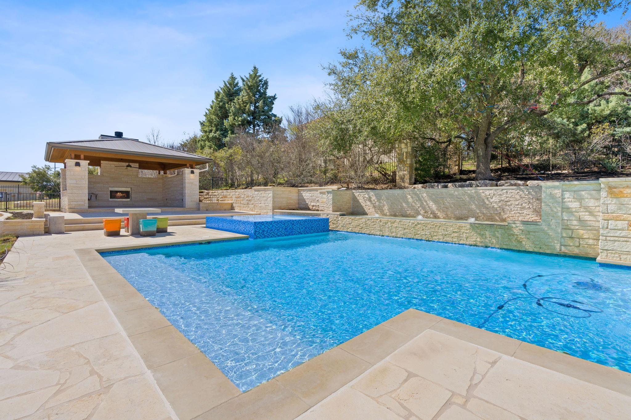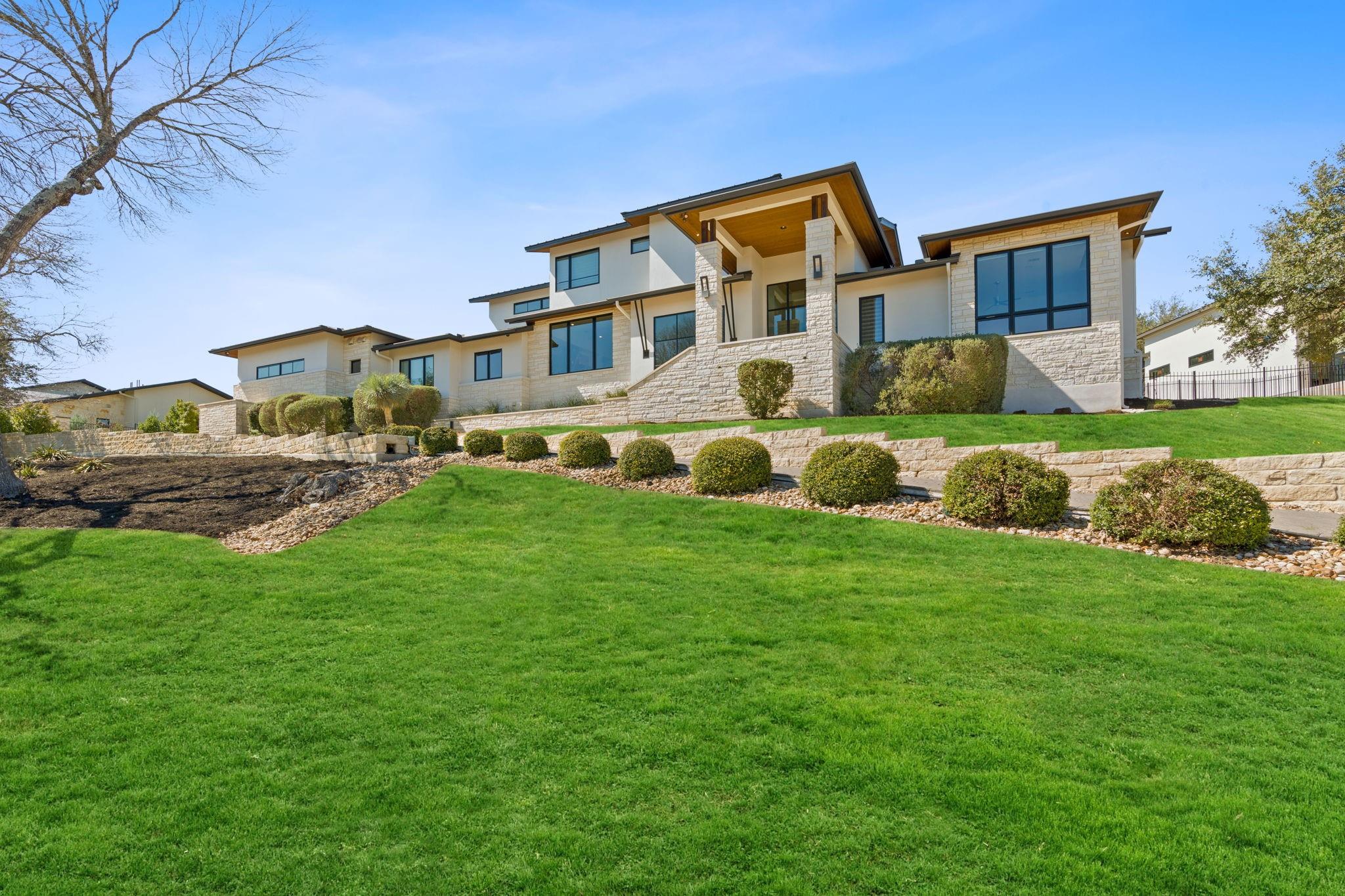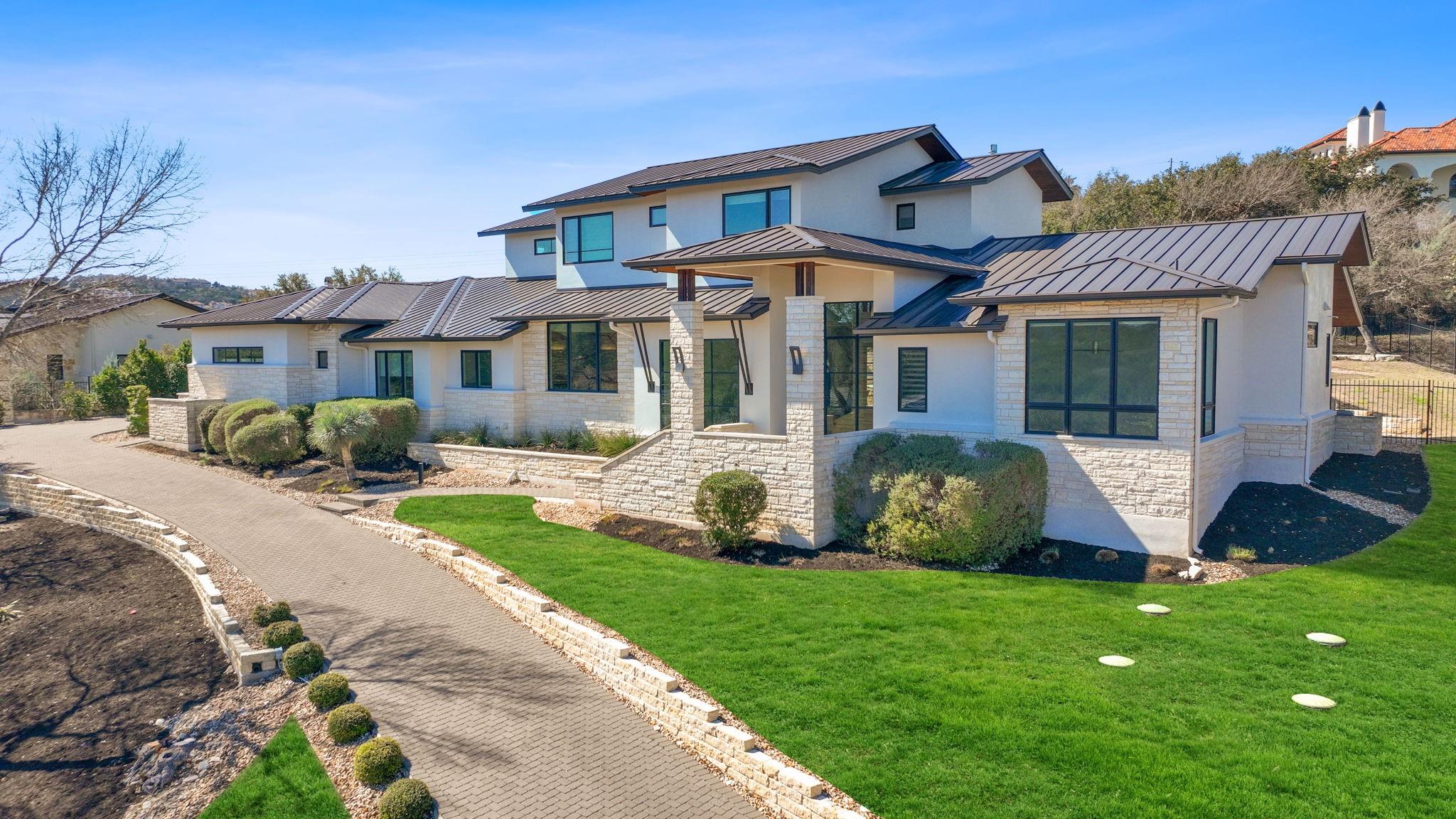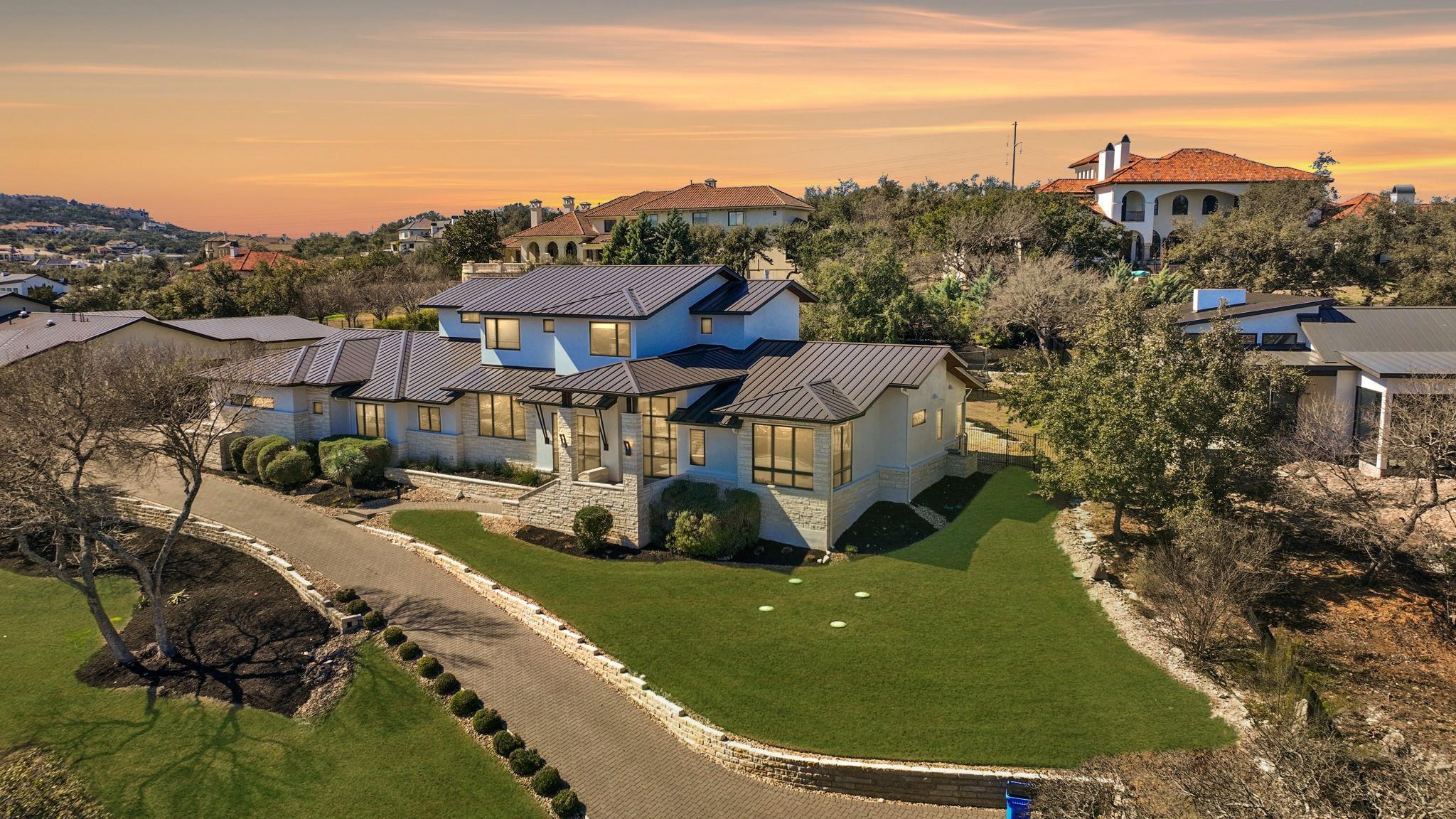 Welcome to your hilltop oasis in the heart of West Austin, where modern luxury meets serene comfort. This stunning home, nestled on a sprawling 1.2 acre estate, offers an idyllic retreat from the hustle and bustle of city life. Perched majestically atop the hill, the home boasts breathtaking views of the surrounding landscape. Complete with a cozy cabana and a crackling fireplace, perfect for unwinding with family and friends on cool evenings. The main level of the home exudes an inviting ambiance, with an open floor plan, three spacious bedrooms, a study, and a media room on the main llevel, providing ample space, and two bedrooms+ gameroom upstairs. Each bedroom features its own luxurious ensuite bath. The gourmet kitchen is a chef's dream come true. Equipped with top-of-the-line commercial-grade appliances, including a 48" Wolf Range with double oven, a Sub Zero refrigerator, built-in toaster oven, microwave, and two beverage coolers. Despite its grandeur, the home exudes a cozy charm, ensuring that every corner feels inviting and intimate. Don't miss the 4 Car Garage with ceilings high enough for a lift in all 4 bays. Located in the highly sought-after Eanes Independent School District and boasting the lowest tax rate in the city at 1.36%, this home offers both luxury and practicality in equal measure.
