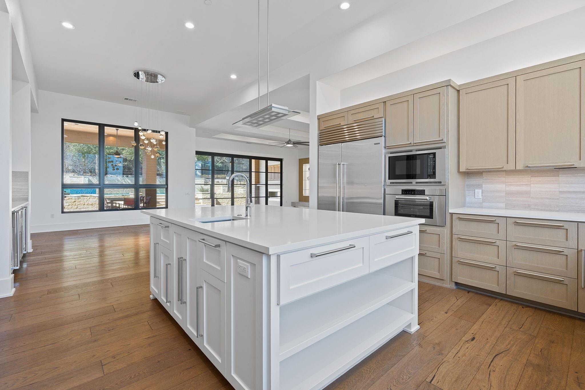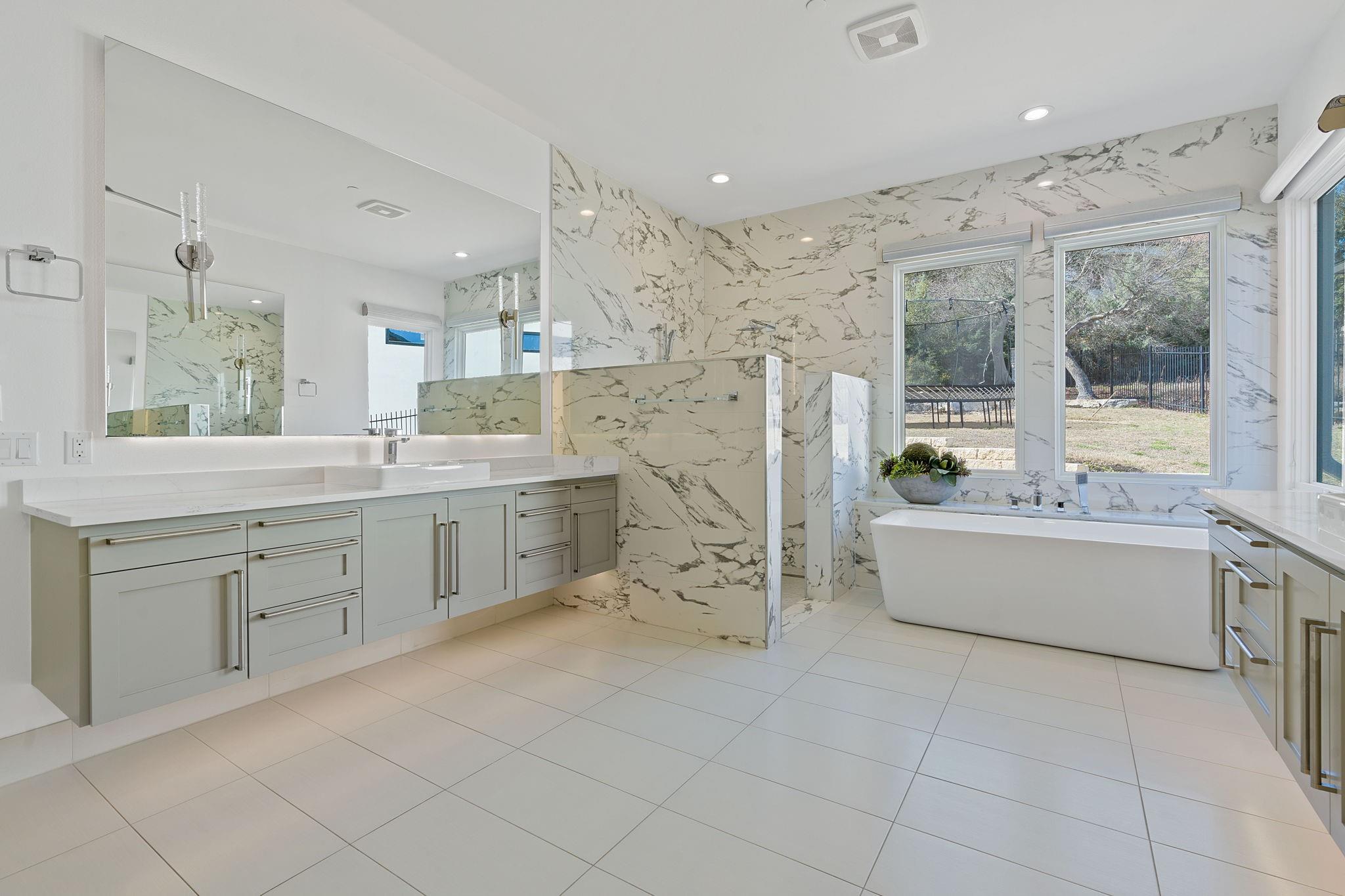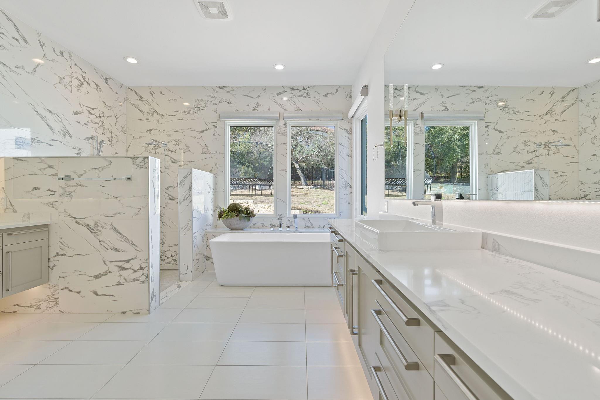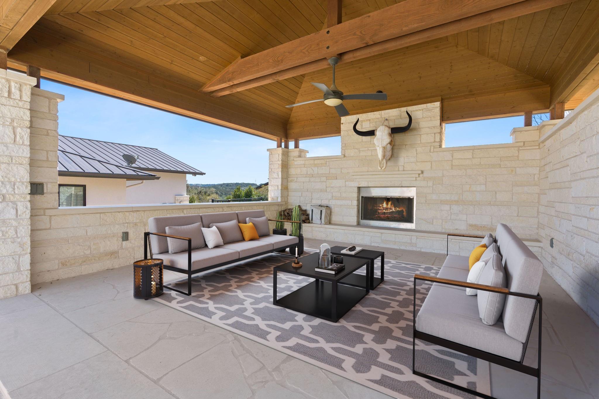 Welcome to your hilltop oasis in the heart of West Austin, where modern luxury meets serene comfort. This stunning home, nestled on a sprawling 1.2 acre estate, offers an idyllic retreat from the hustle and bustle of city life. Perched majestically atop the hill, the home boasts breathtaking views of the surrounding landscape. Complete with a cozy cabana and a crackling fireplace, perfect for unwinding with family and friends on cool evenings. The main level of the home exudes an inviting ambiance, with an open floor plan, three spacious bedrooms, a study, and a media room on the main llevel, providing ample space, and two bedrooms+ gameroom upstairs. Each bedroom features its own luxurious ensuite bath. The gourmet kitchen is a chef's dream come true. Equipped with top-of-the-line commercial-grade appliances, including a 48" Wolf Range with double oven, a Sub Zero refrigerator, built-in toaster oven, microwave, and two beverage coolers. Despite its grandeur, the home exudes a cozy charm, ensuring that every corner feels inviting and intimate. Don't miss the 4 Car Garage with ceilings high enough for a lift in all 4 bays. Located in the highly sought-after Eanes Independent School District and boasting the lowest tax rate in the city at 1.36%, this home offers both luxury and practicality in equal measure.